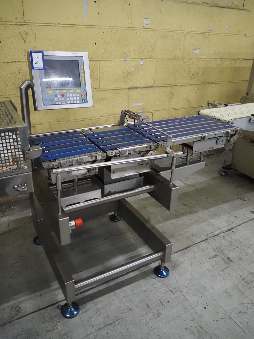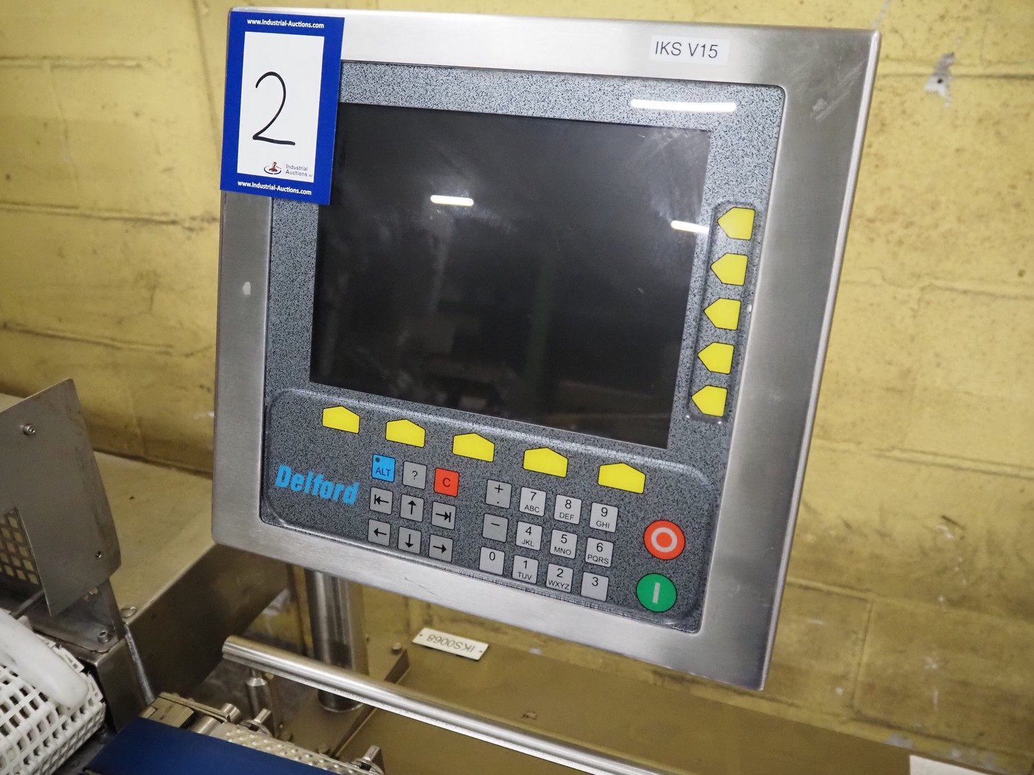 AEW Delford checkweigher, type: G2200, machine number: 93426, year of construction: 2015, plastic belt, belt width: 360 mm, total dimensions: 1200 mm x 920 mm x 1310 mm.