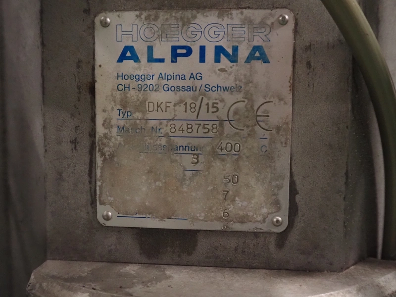 Hoegger Alpina AG clipper, type: DKF 18/15, machine number: 848758, 400 V, 50 Hz, dimensions: 1500 mm x 1100 mm x 1800 mm.