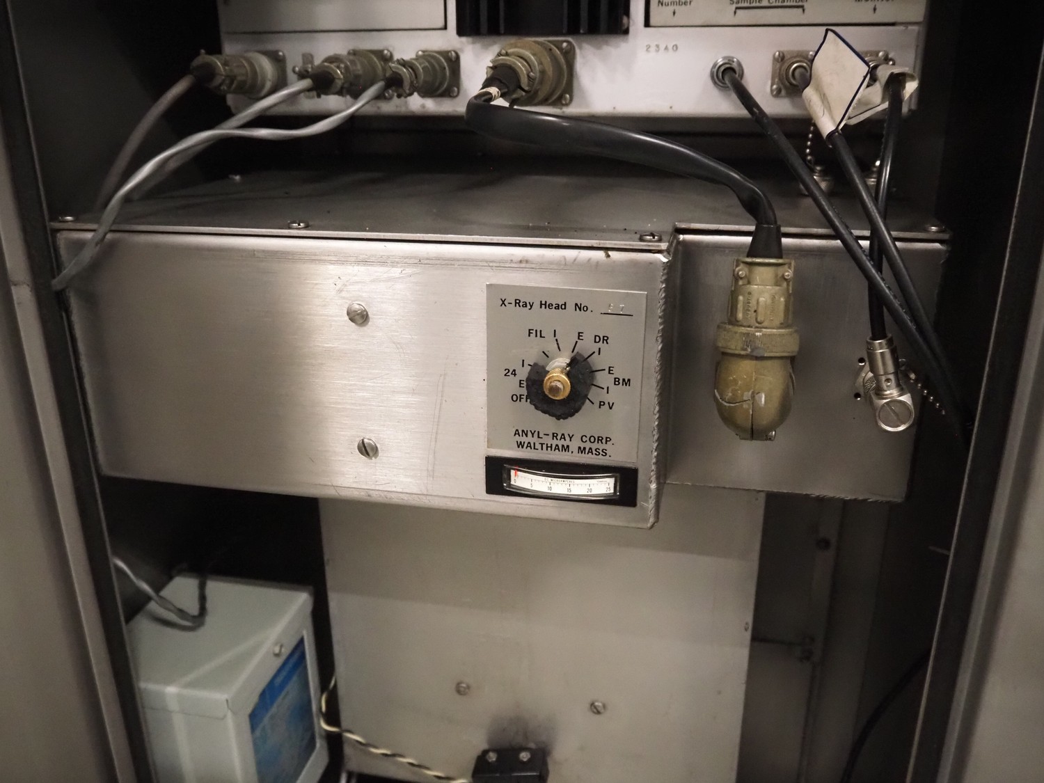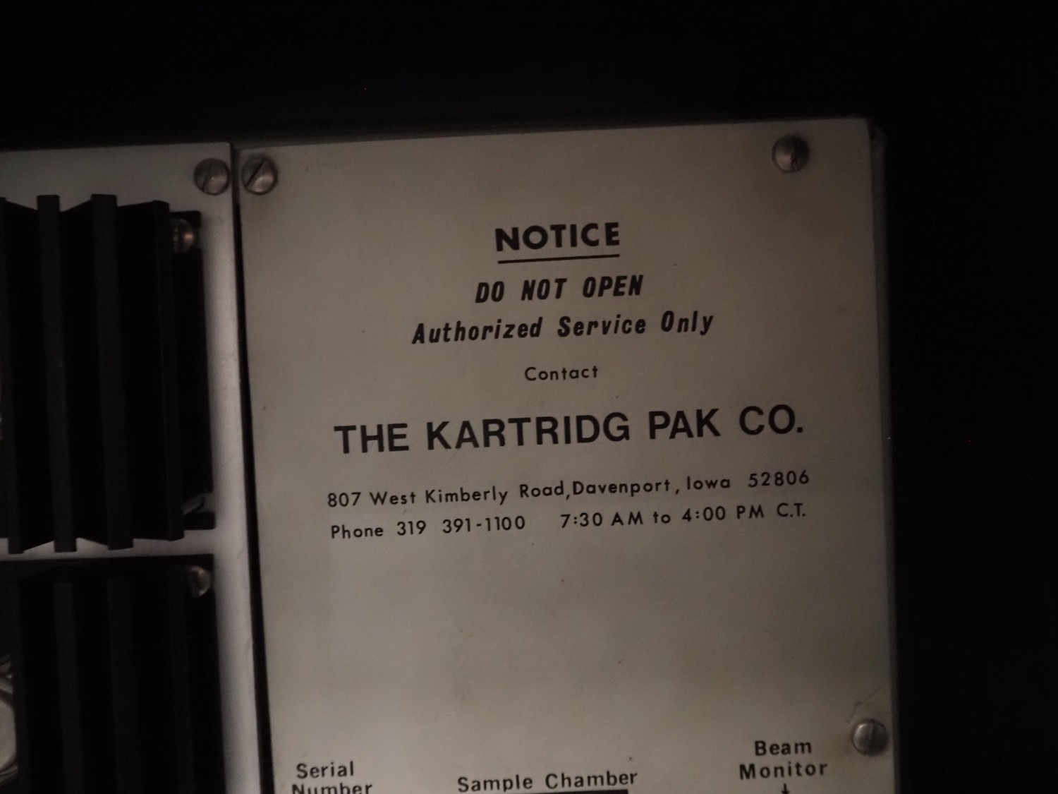 Katridg Pak Co. Anyl-ray mobile fat analyser, model: M201-4, serial number: F-8, year of construction: 08-1987, 220 V, 50 Hz, 1 Ph, 1.0 A, 1000 Amps max, dimensions pipe: 200 mm x 200 mm x 230 mm, total dimensions: 670 mm x 500 mm x 1720 mm.
