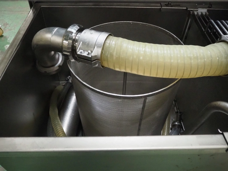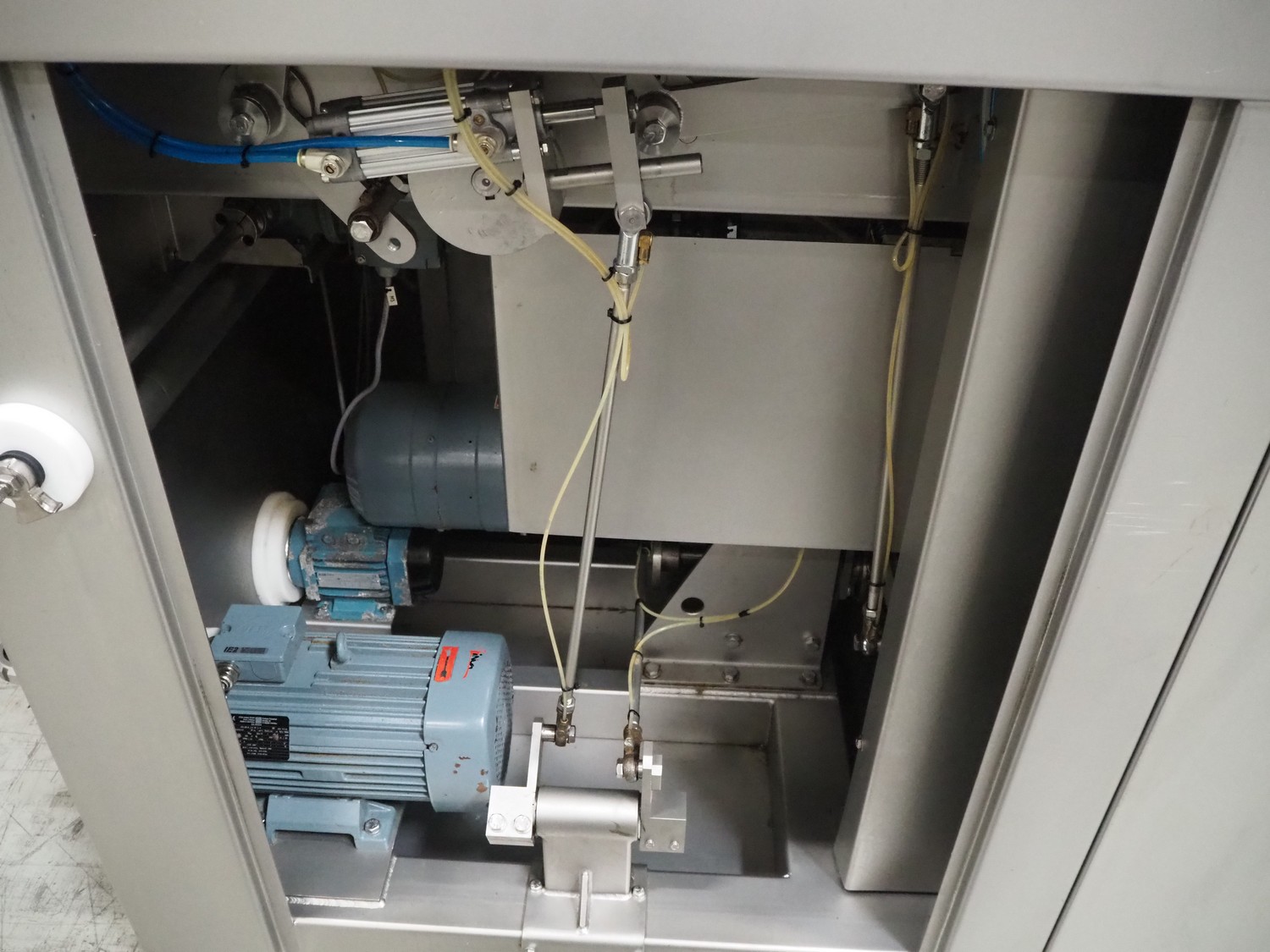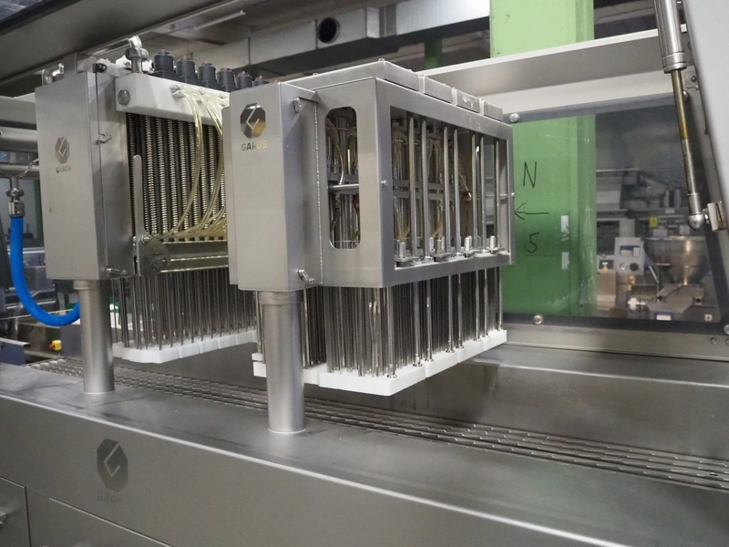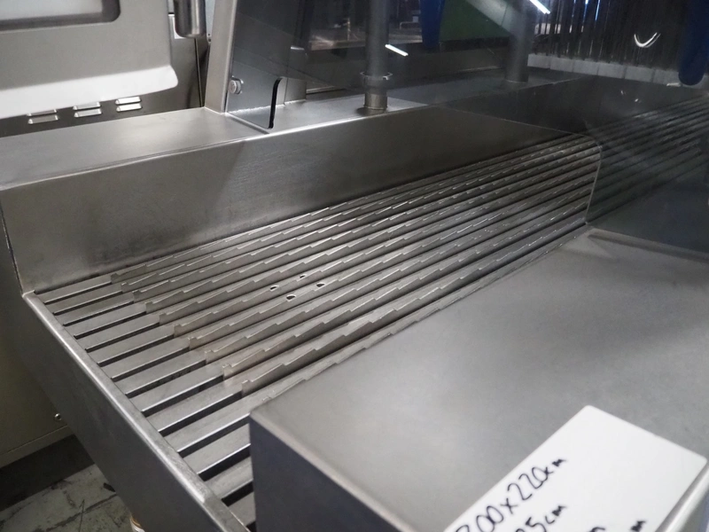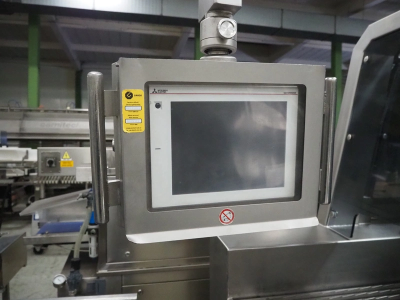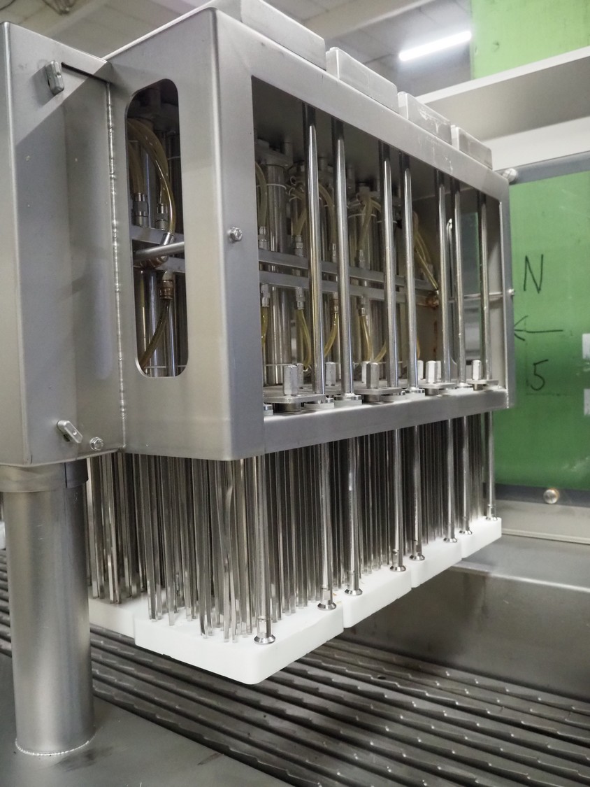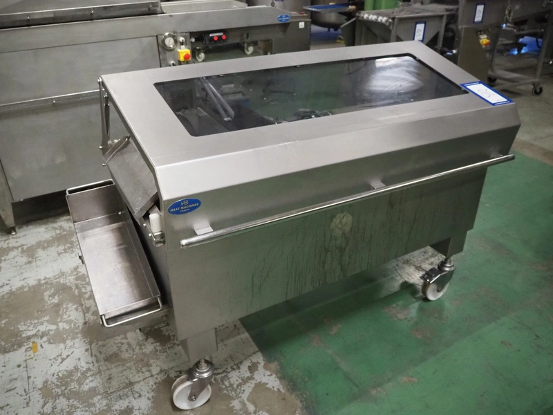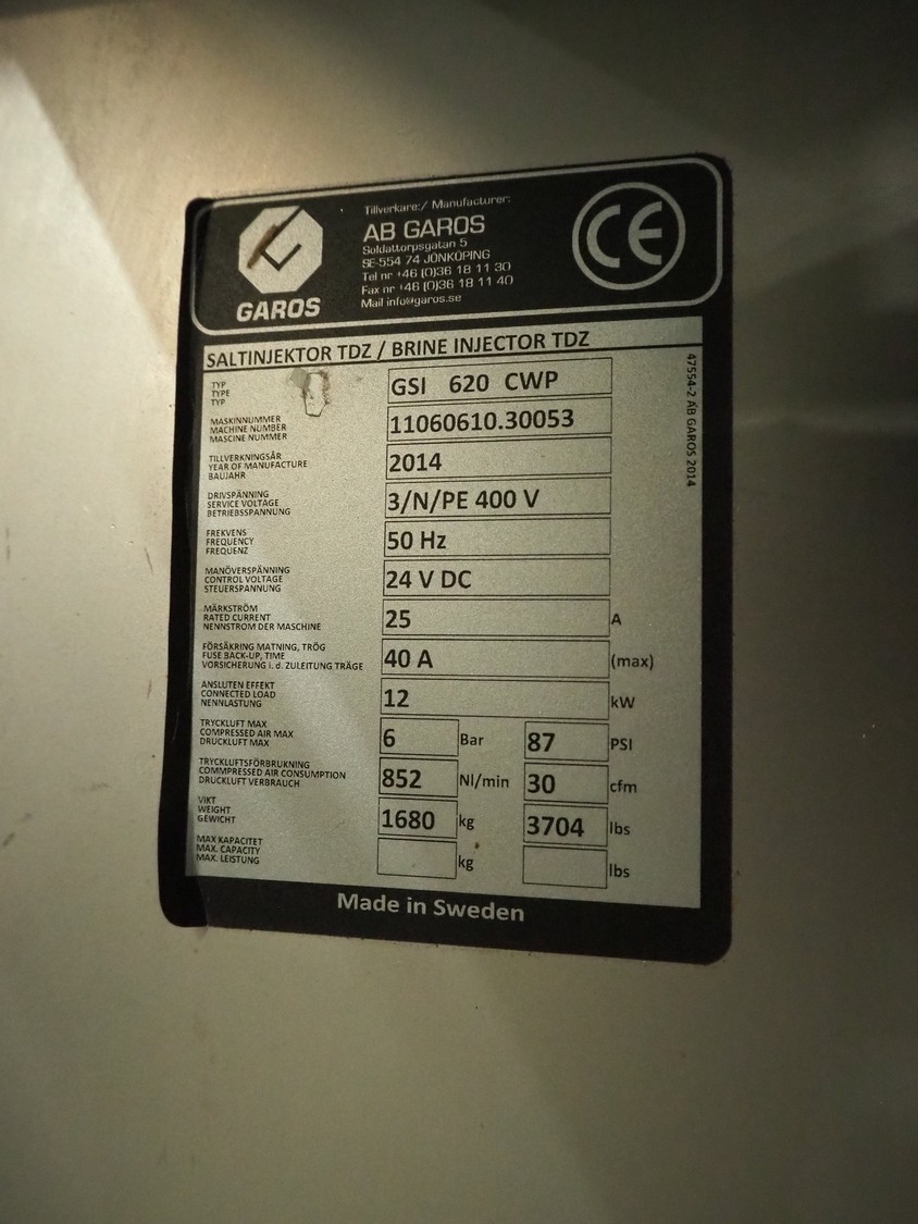 AB Garos injector/tenderiser, type: GSI 620 CWP, serial number: 11060610.30053, year of construction: 2014, 400 V, 3 Ph, 50 Hz, 25 A, 12 kW, machine weight: 1680 kg, s/s walking beam, walking beam width: 620 mm, clearance: 620 mm x 280 mm, 144 needles, diameter needles: 5 mm, total dimensions: 3100 mm x 1250 mm x 2250 mm. Including s/s mobile filter tub, dimensions filter tub: 1800 mm x 860 mm x 1220 mm.