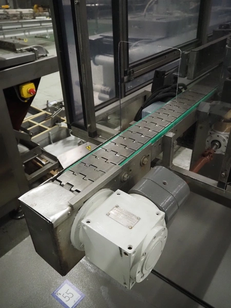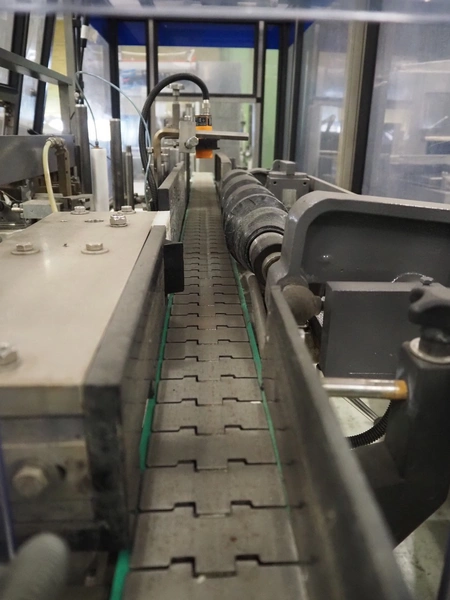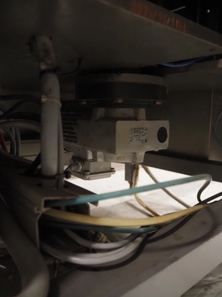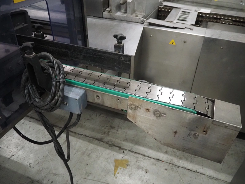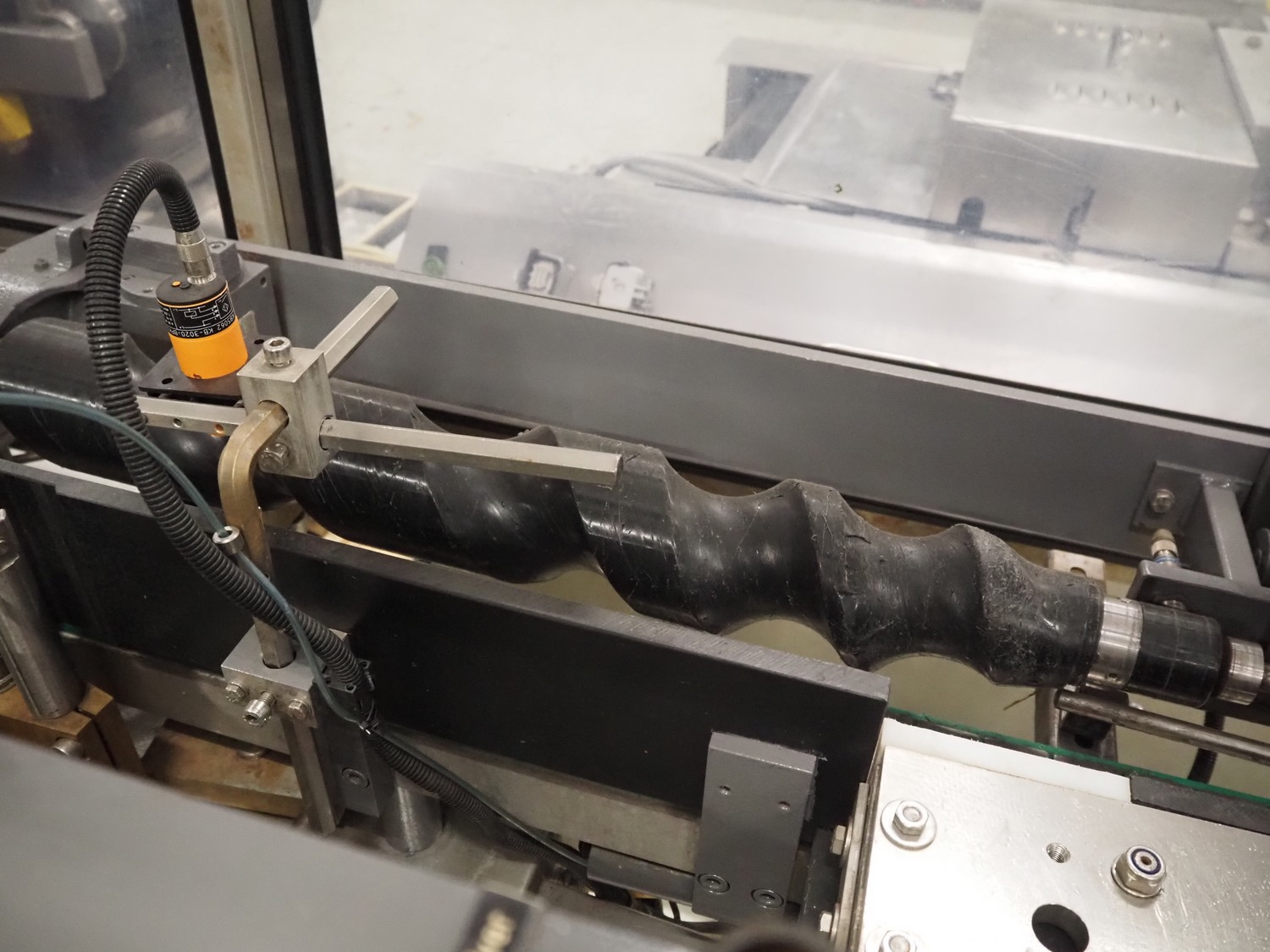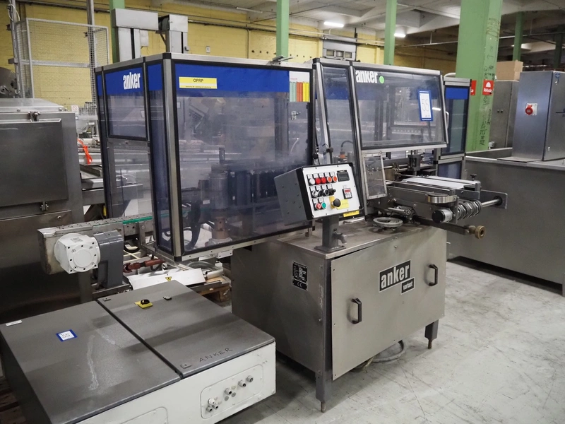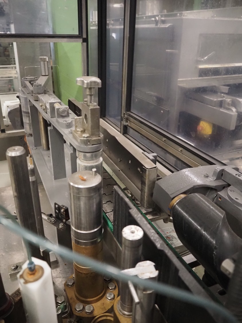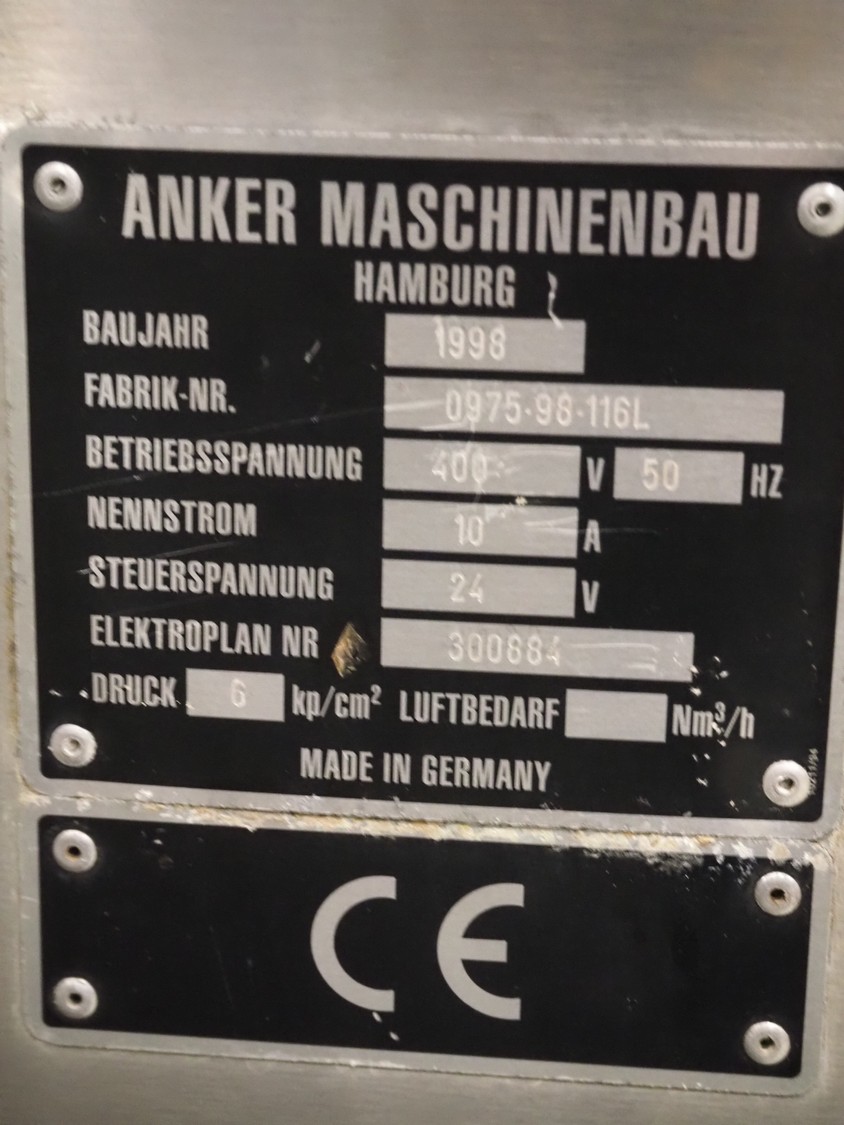 Anker Maschinenbau bottle/jar labelling machine, fabrication number: 0095-98-116L, year of construction: 1998, 400 V, 50 Hz, 10 A, s/s belt, belt width: 80 mm, total dimensions: 3500 mm x 1350 mm x 1750 mm. Including switch cabinet
