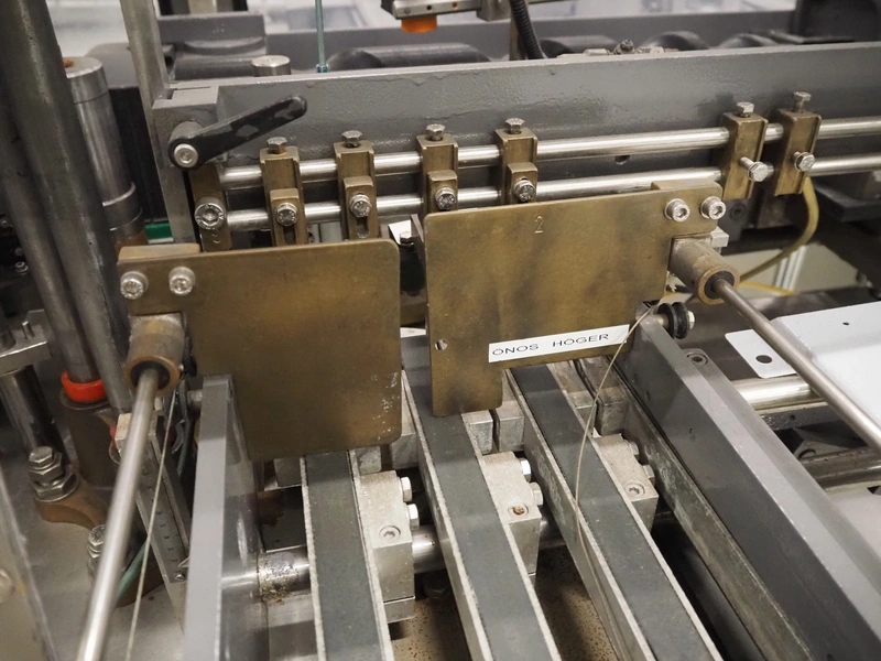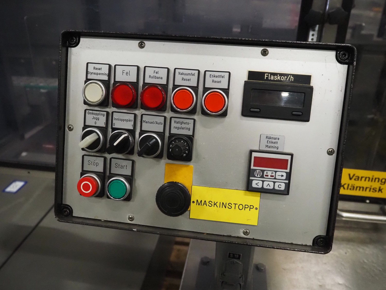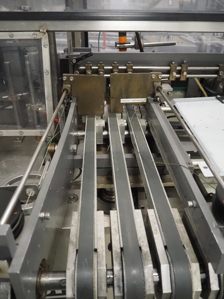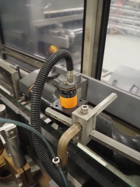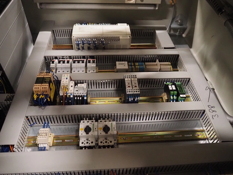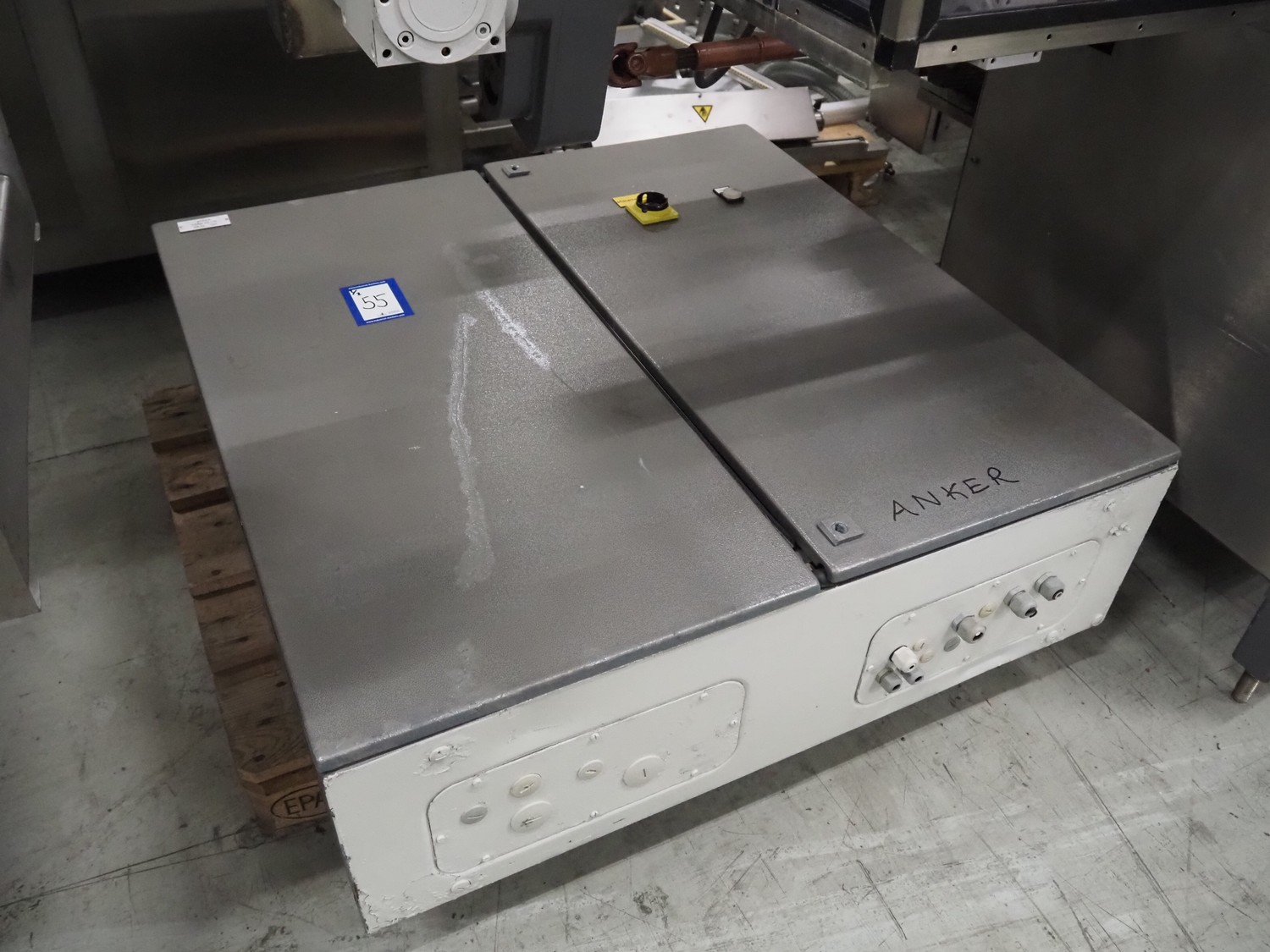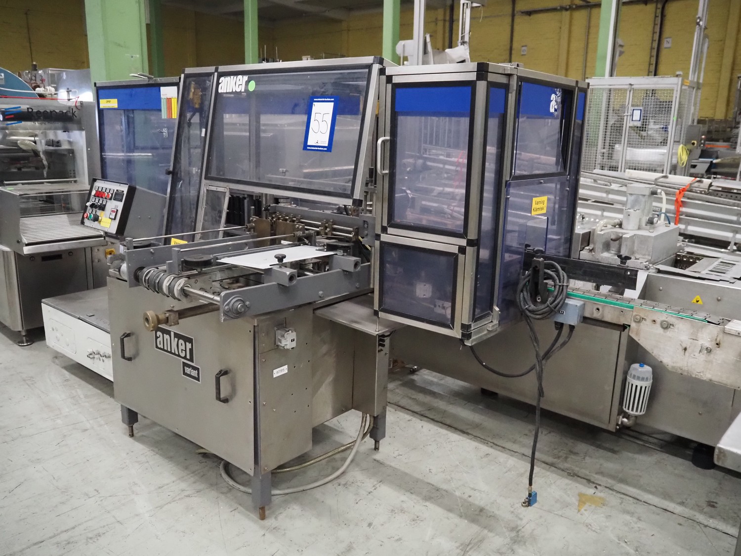 Anker Maschinenbau bottle/jar labelling machine, fabrication number: 0095-98-116L, year of construction: 1998, 400 V, 50 Hz, 10 A, s/s belt, belt width: 80 mm, total dimensions: 3500 mm x 1350 mm x 1750 mm. Including switch cabinet