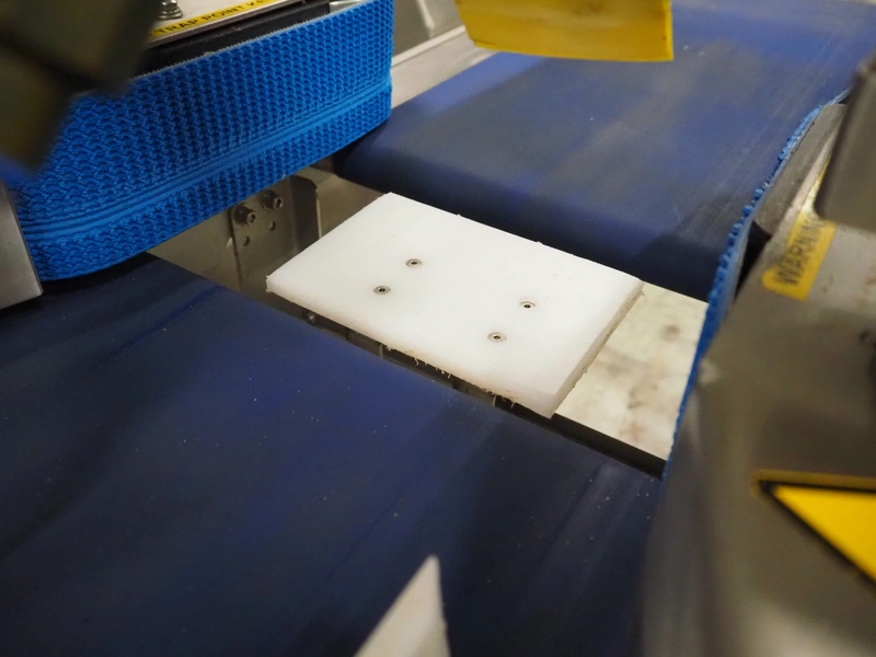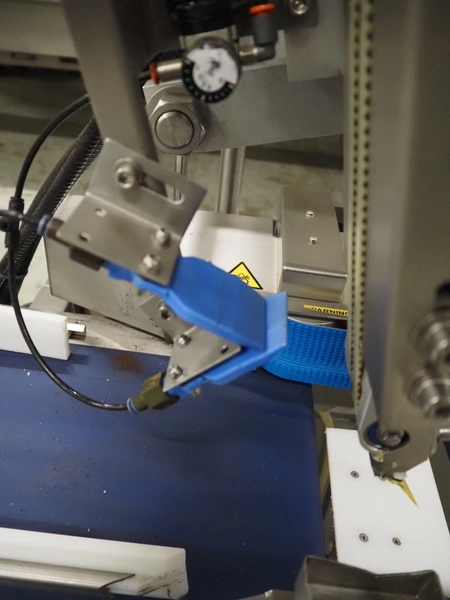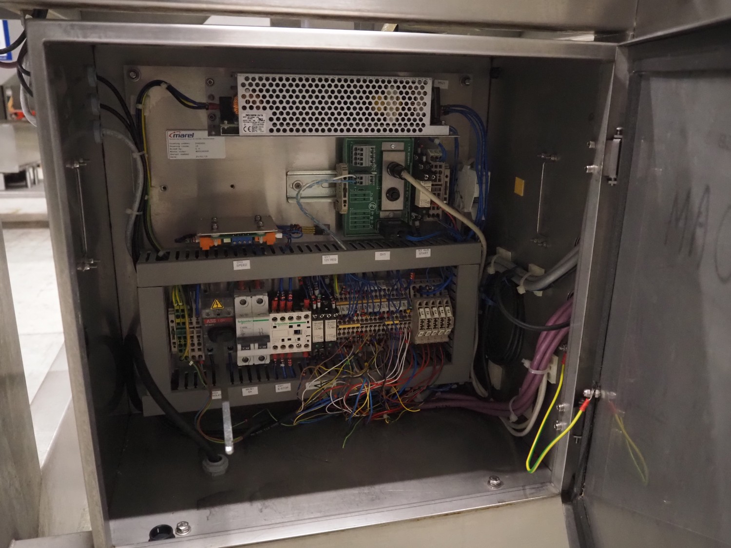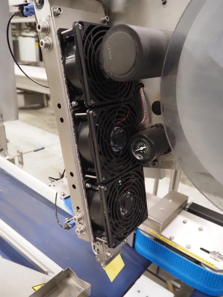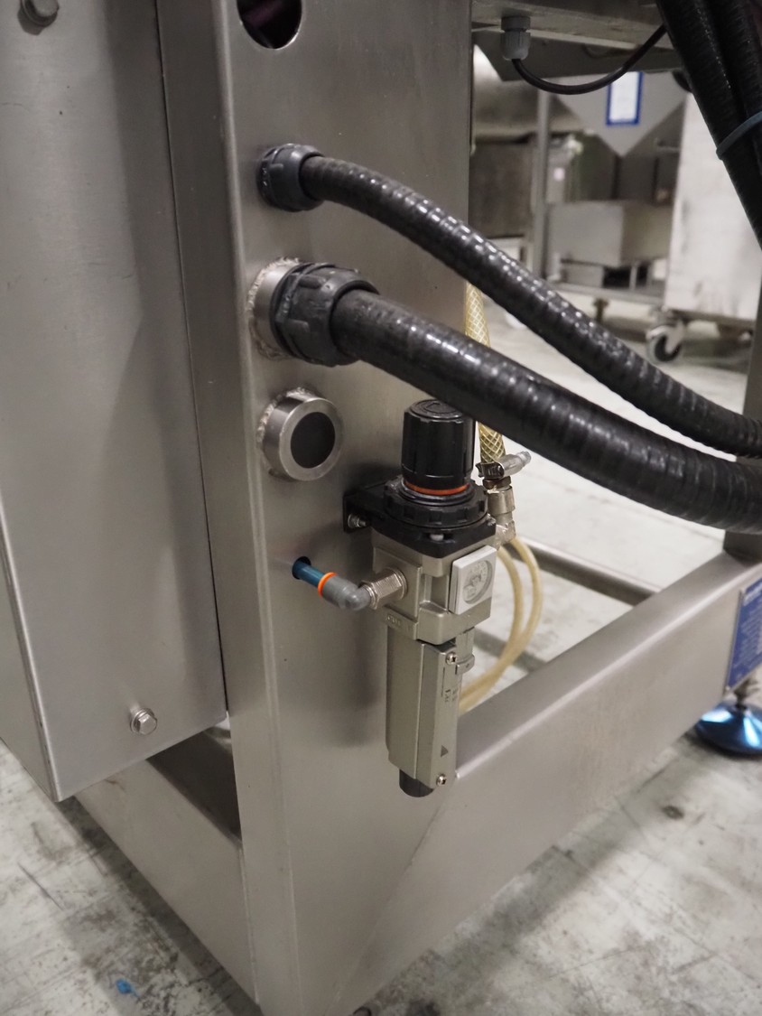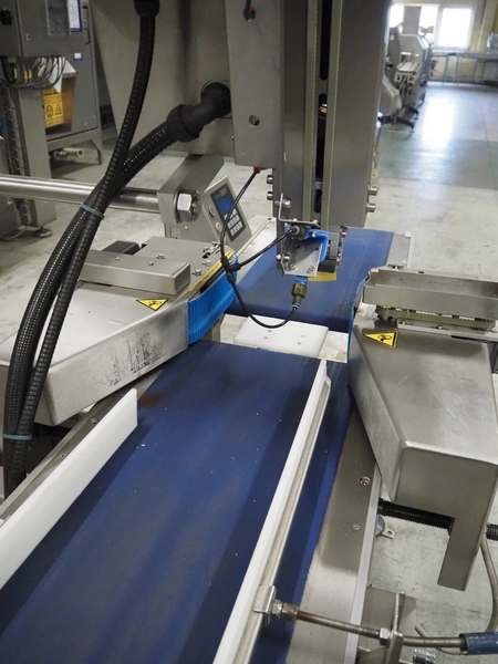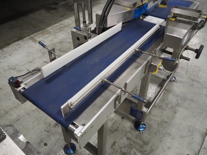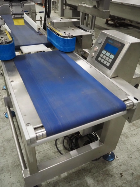 Delford labelling machine, type: MPL80, machine number: MA0012, year of construction: 2015, 230 V, 50/60 Hz, 3/5 A, weight: 256 kg, plastic belt, belt width: 285 mm, total dimensions: 1800 mm x 1150 mm x 1750 mm.
