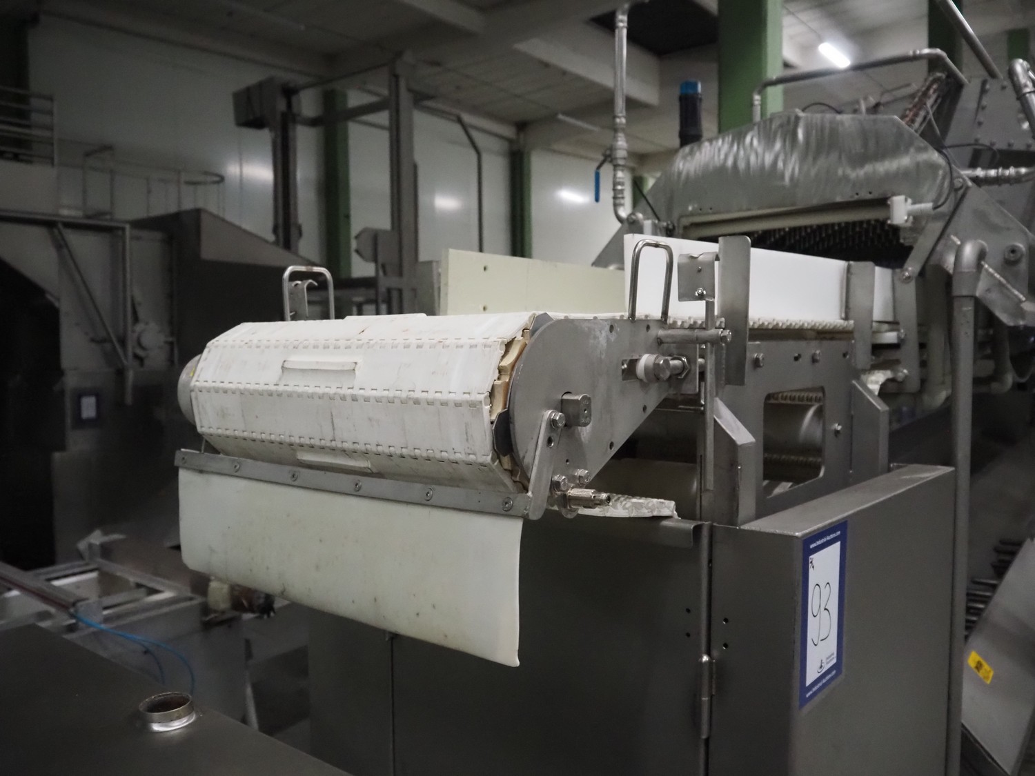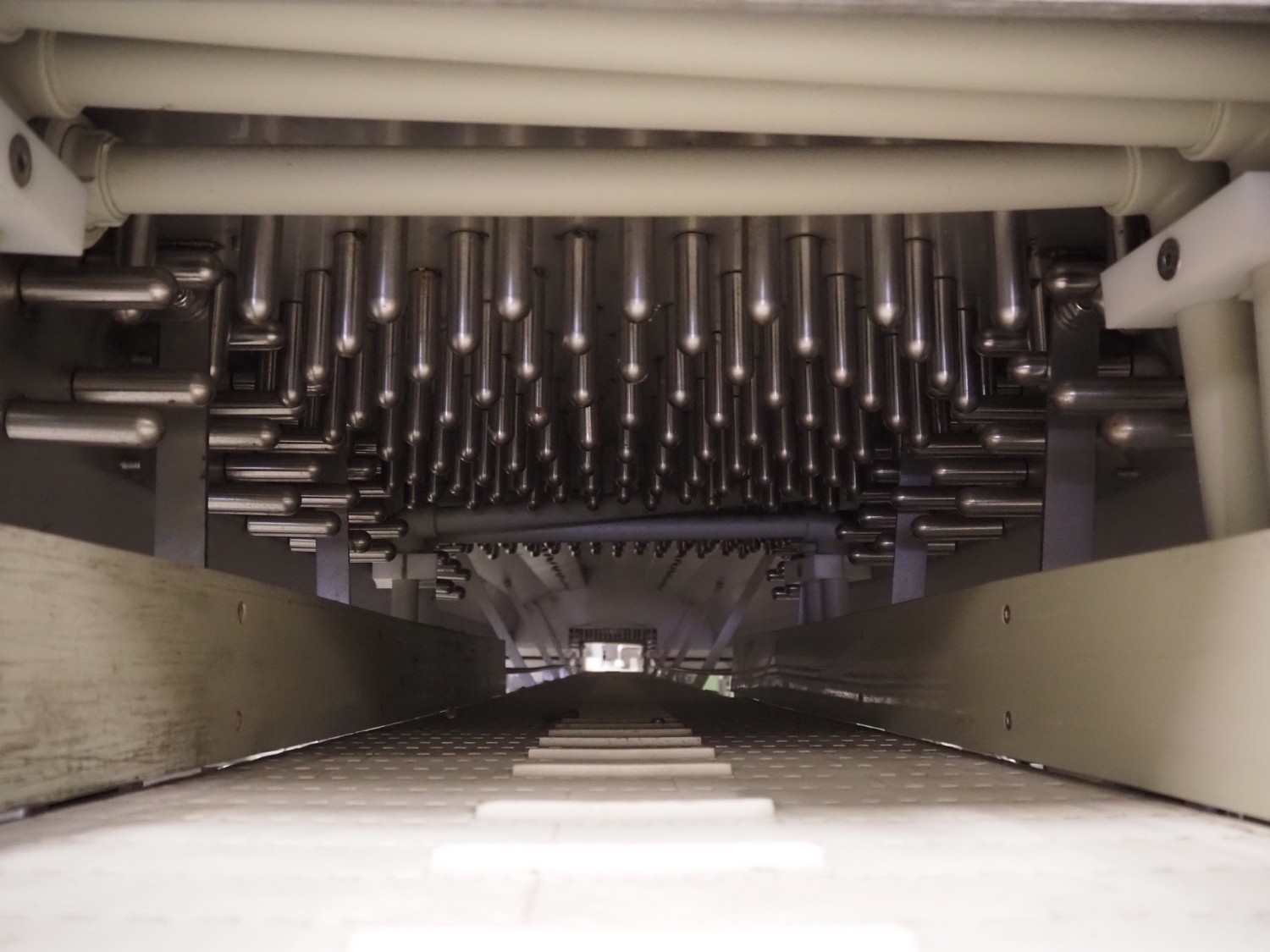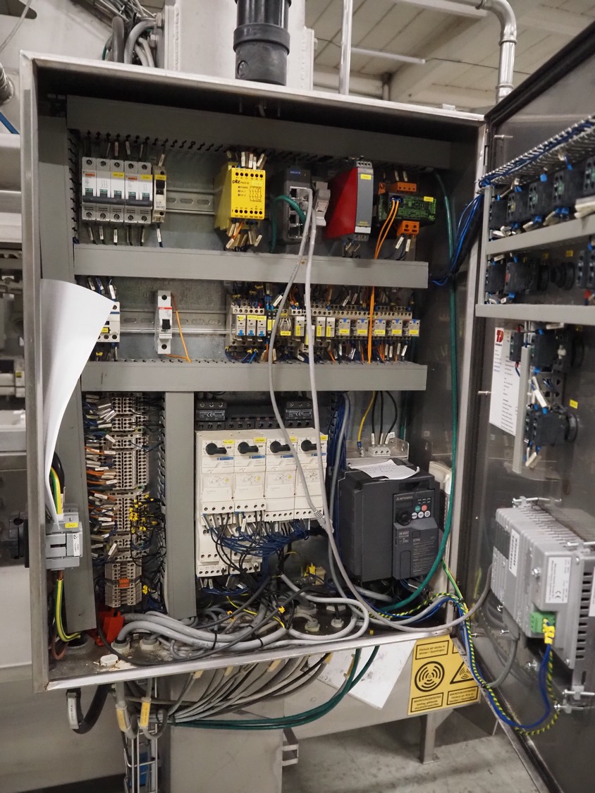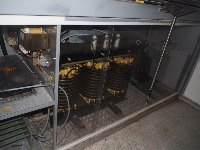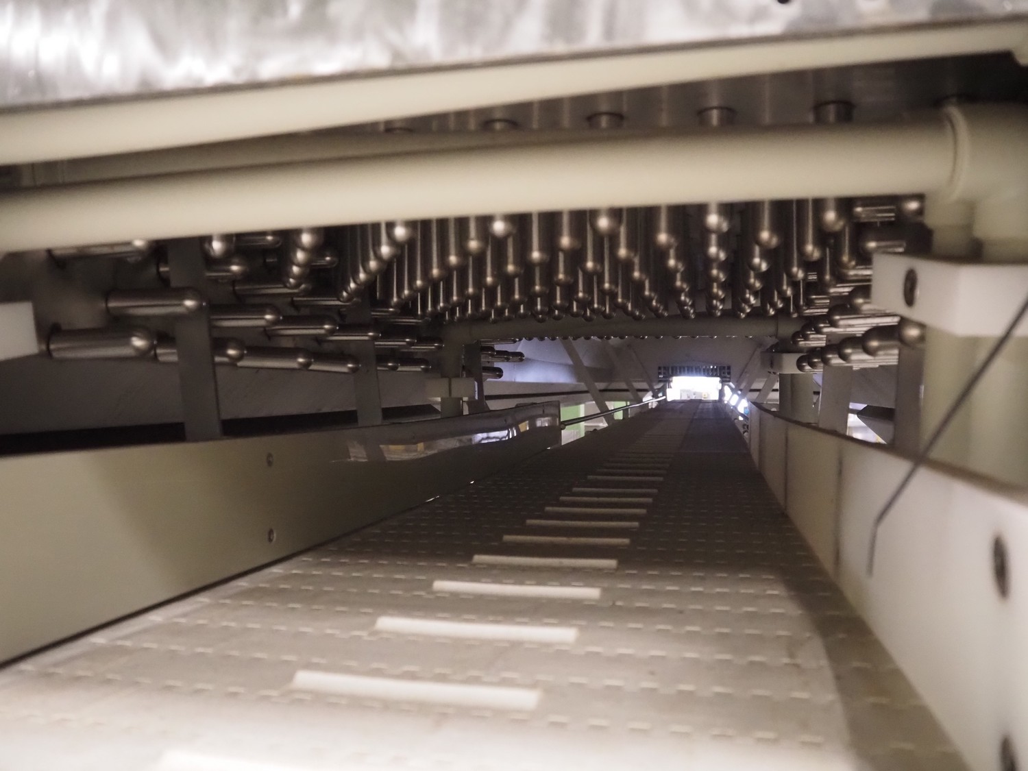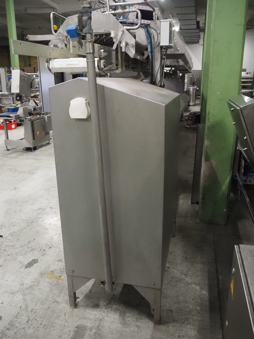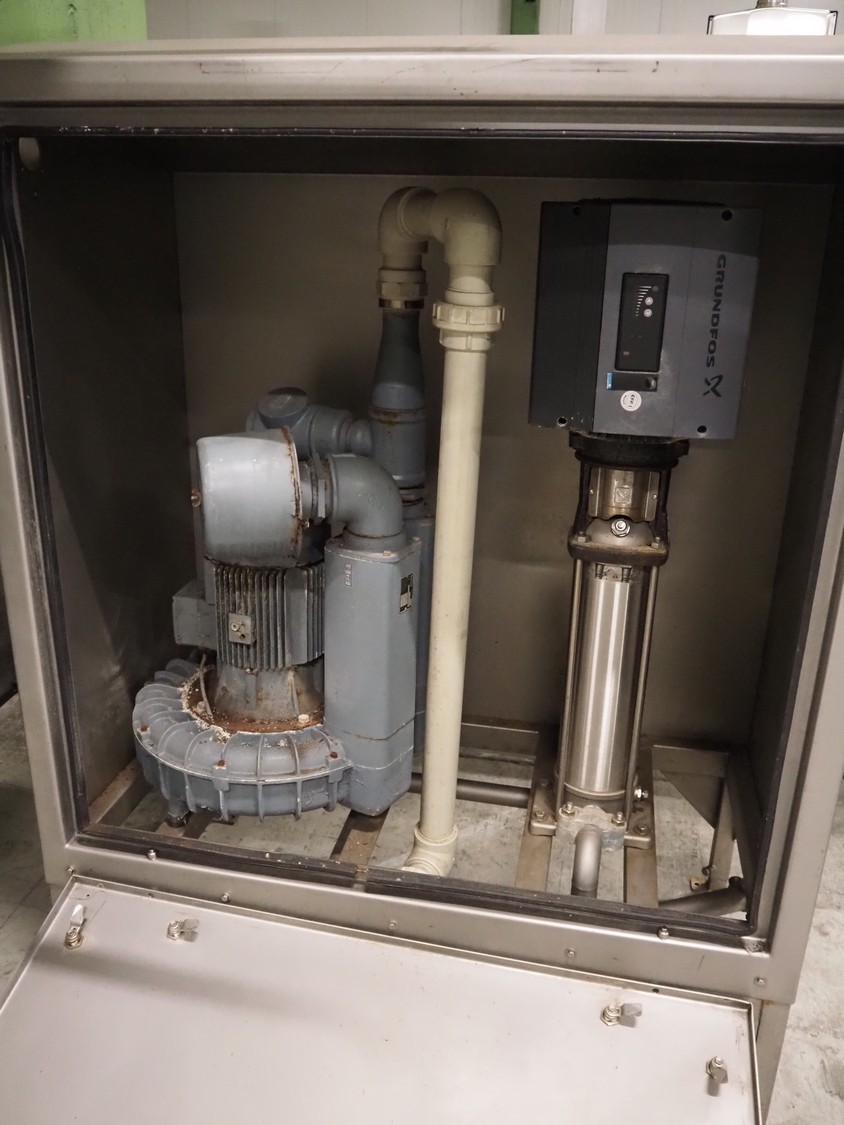 Carnitech industrial microwave, type: Thawing, identification number: 08-0050, year of construction: 2007, 400 V, 3 Ph, 2x 75 kW, plastic belt, belt width: 460 mm, total dimensions microwave: 11150 mm x 1750 mm x 2660 mm. Including s/s cabinet with Grundfoss pump, dimensions cabinet: 1320 mm x 700 mm x 1920 mm. Galvanized shed with electrical cabinets, dimensions shed: 3380 mm x 4200 mm x 3650 mm.
