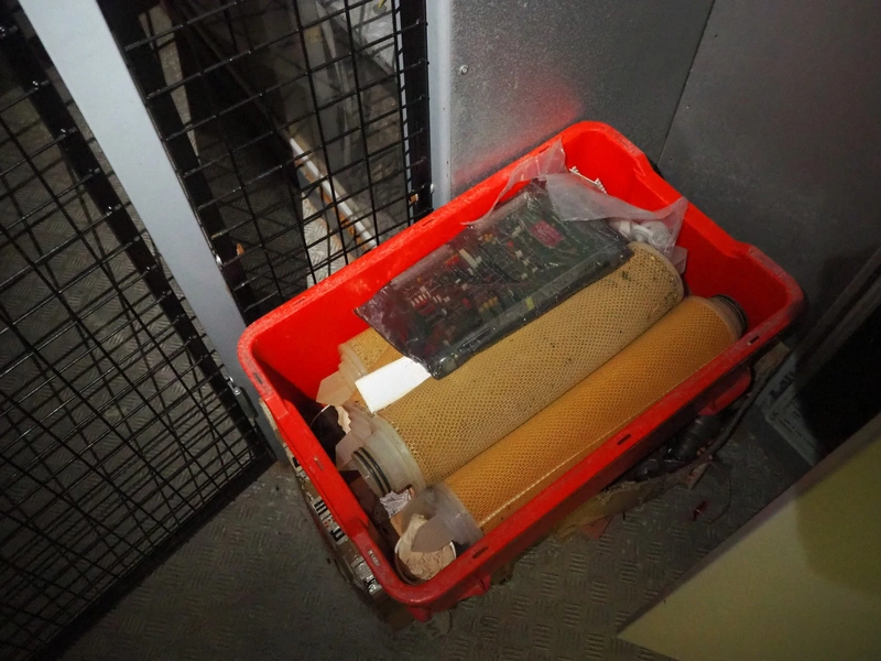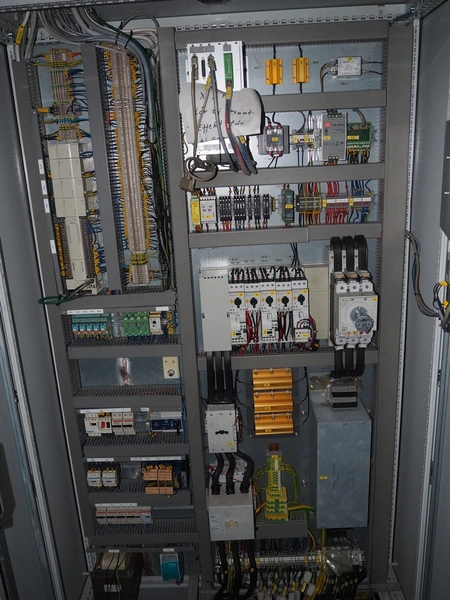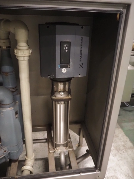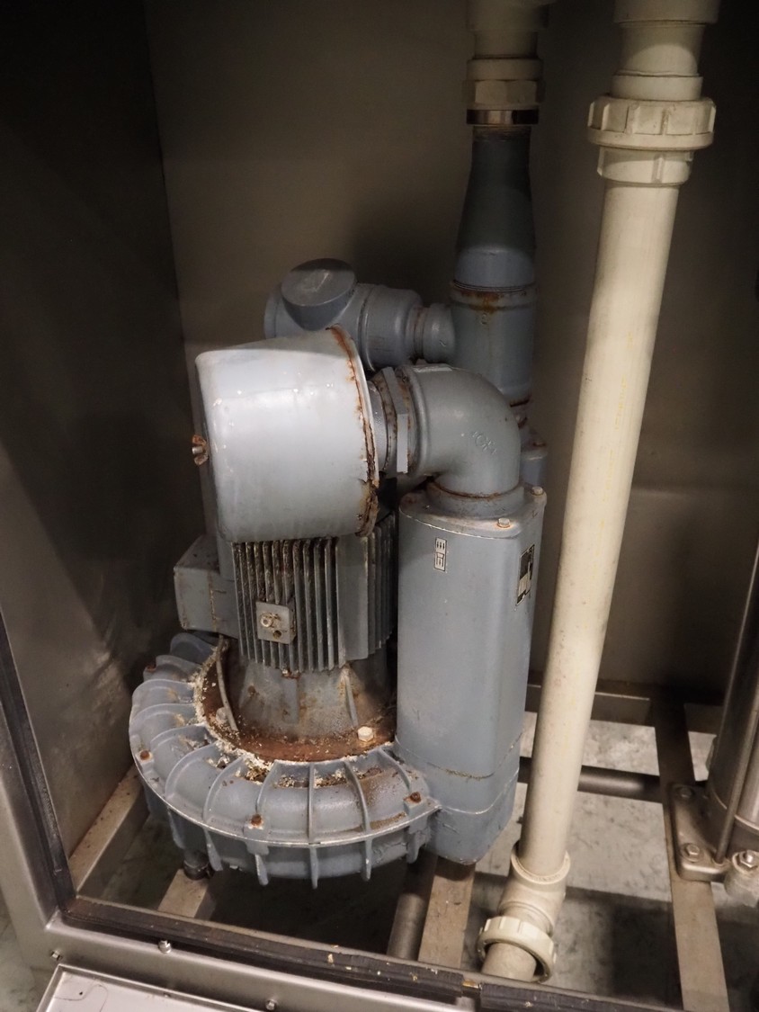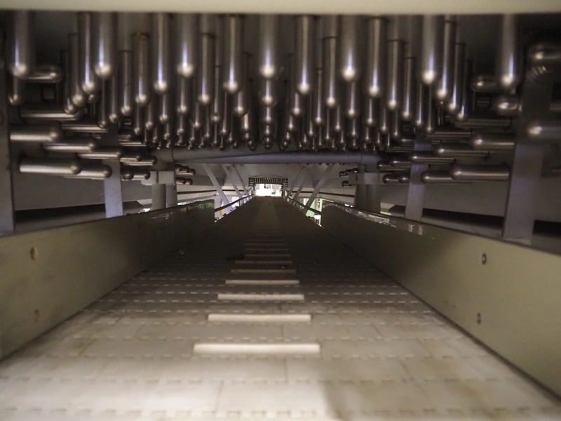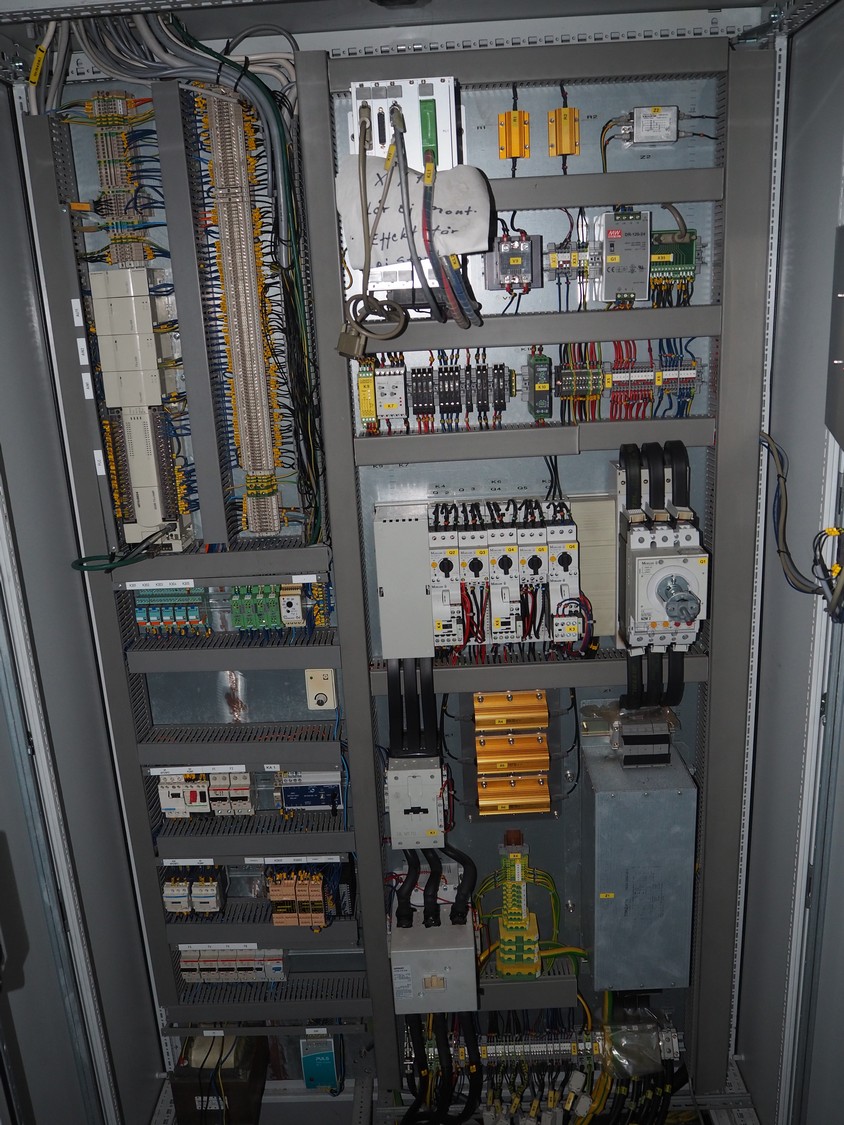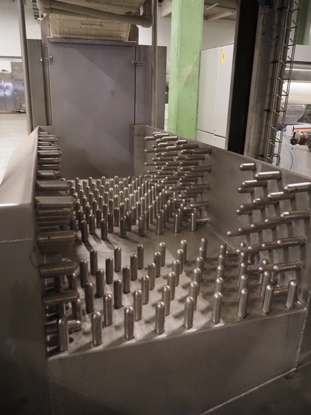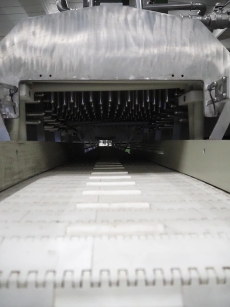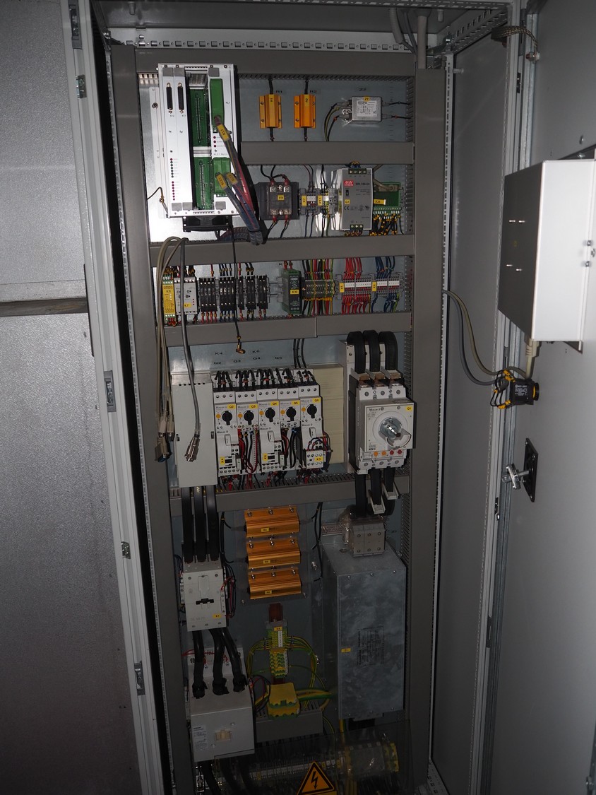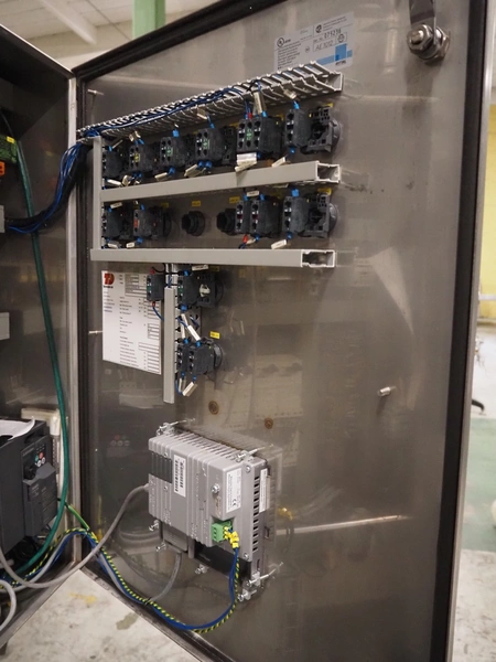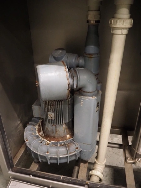 Carnitech industrial microwave, type: Thawing, identification number: 08-0050, year of construction: 2007, 400 V, 3 Ph, 2x 75 kW, plastic belt, belt width: 460 mm, total dimensions microwave: 11150 mm x 1750 mm x 2660 mm. Including s/s cabinet with Grundfoss pump, dimensions cabinet: 1320 mm x 700 mm x 1920 mm. Galvanized shed with electrical cabinets, dimensions shed: 3380 mm x 4200 mm x 3650 mm.