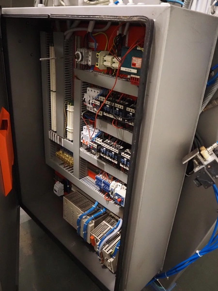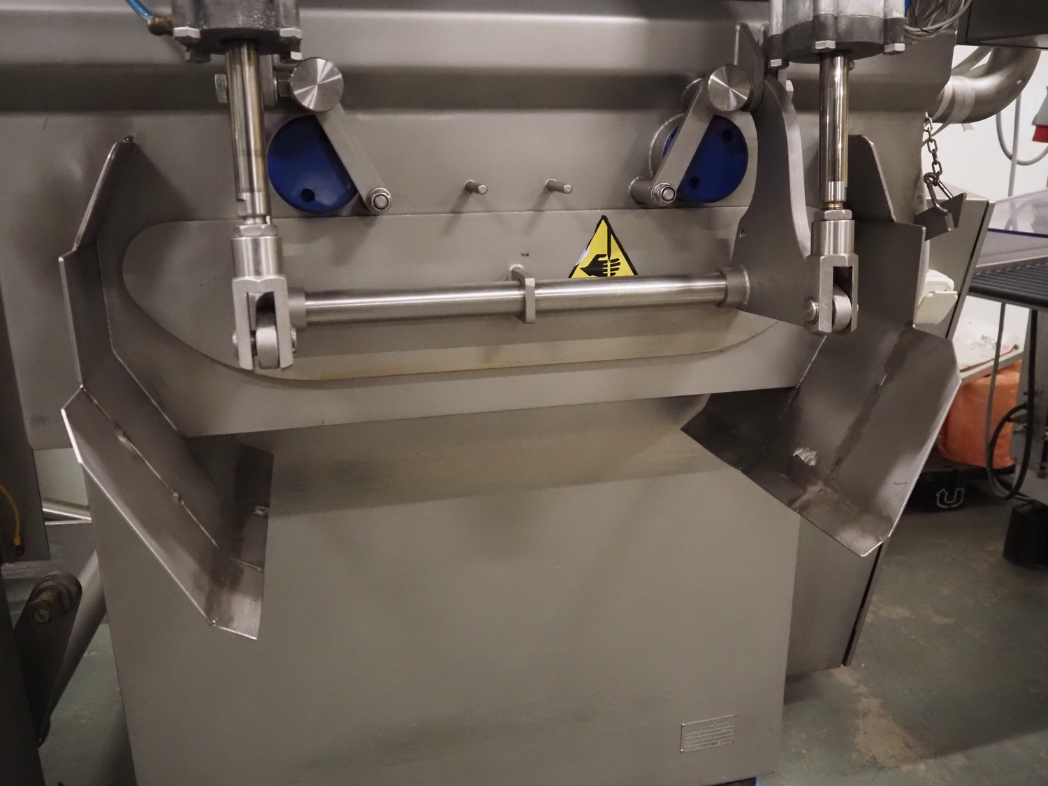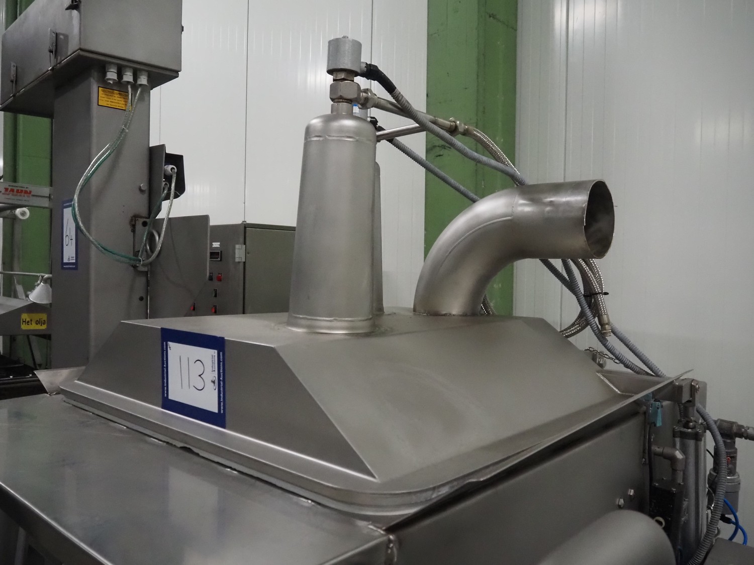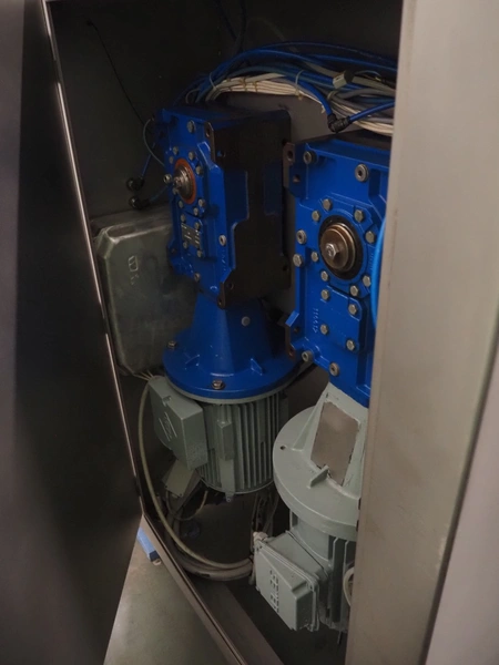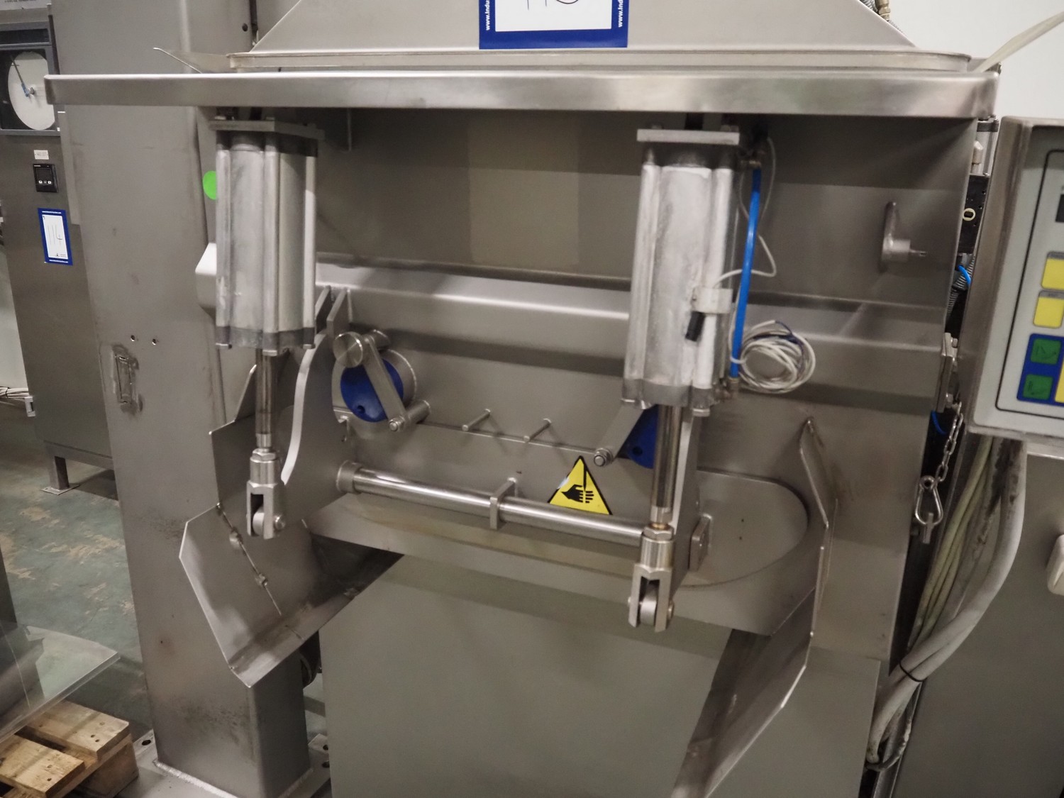 Wolfking double shaft paddle mixer, type: TSM 400L, number: 56065, year of construction: 09/1993, 380 V, 3 Ph, 50 Hz, 20 A, 8 kW, volume: 400 liter, dimensions: 2000 mm x 1650 mm x 2700 mm.