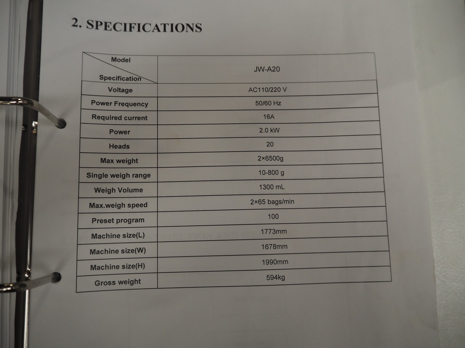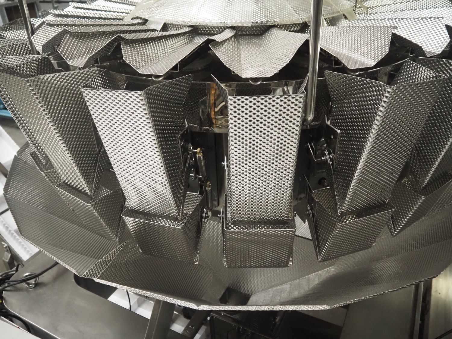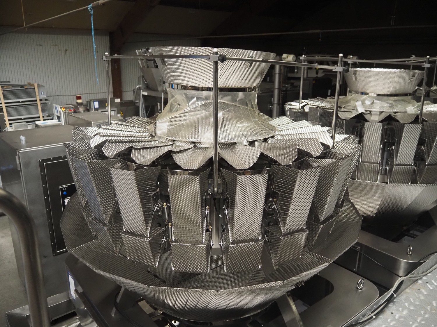 20 heads multihead weigher, dimensions: 1600 mm x 2000 mm x 2000 mm.