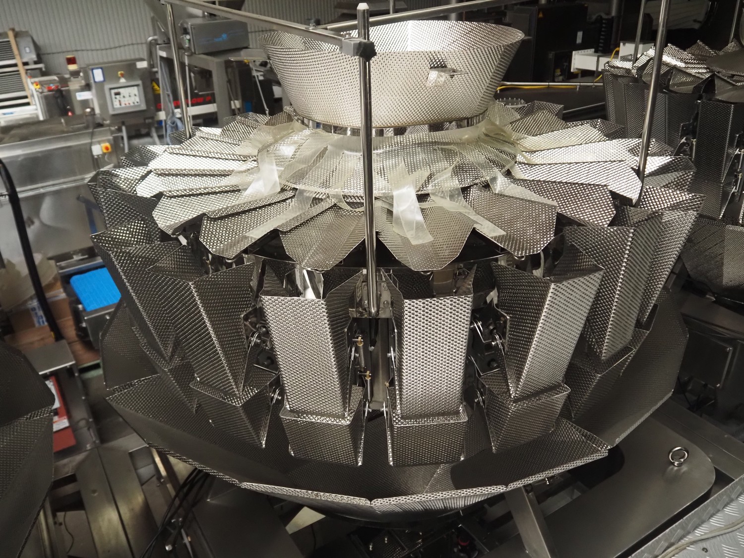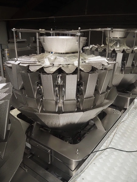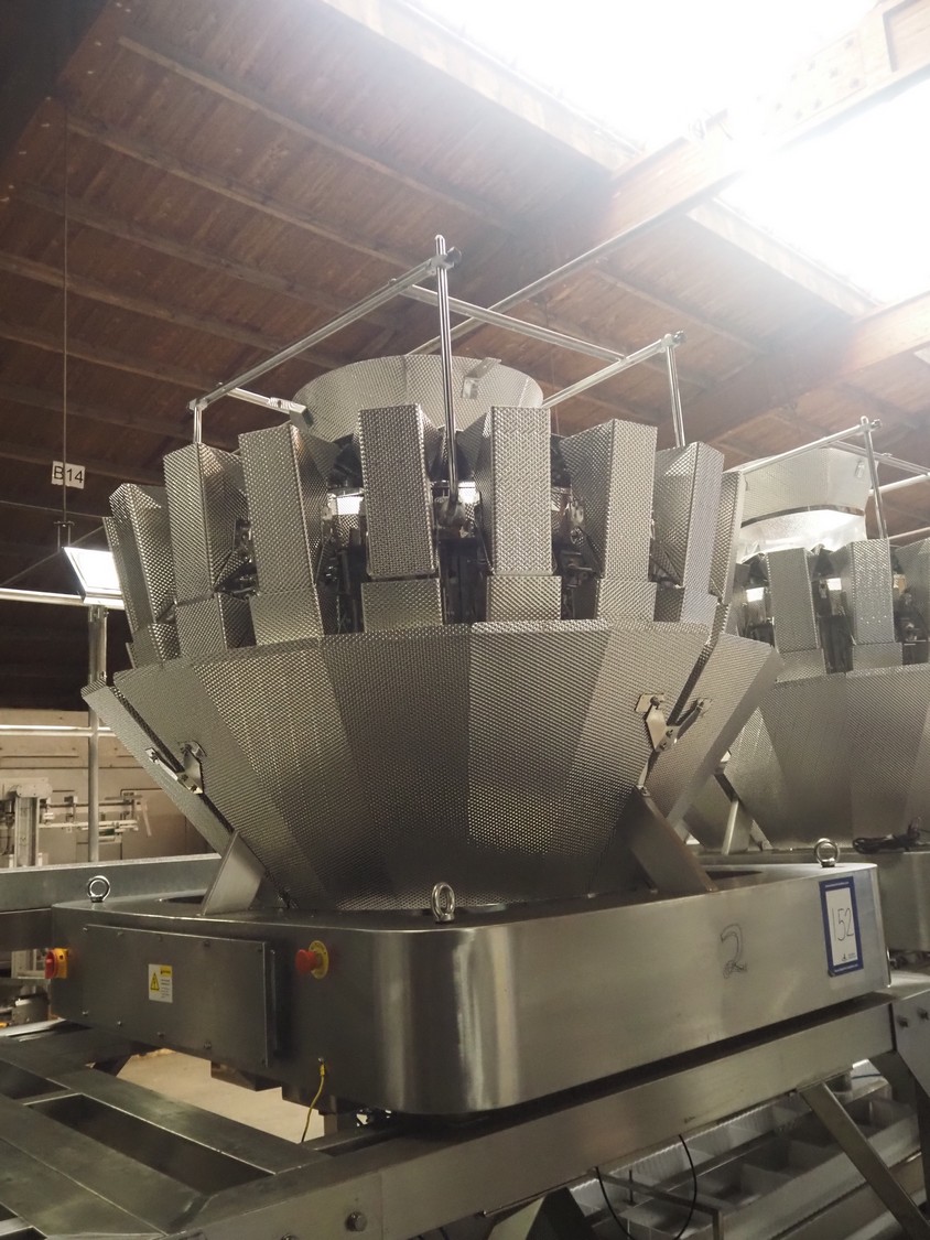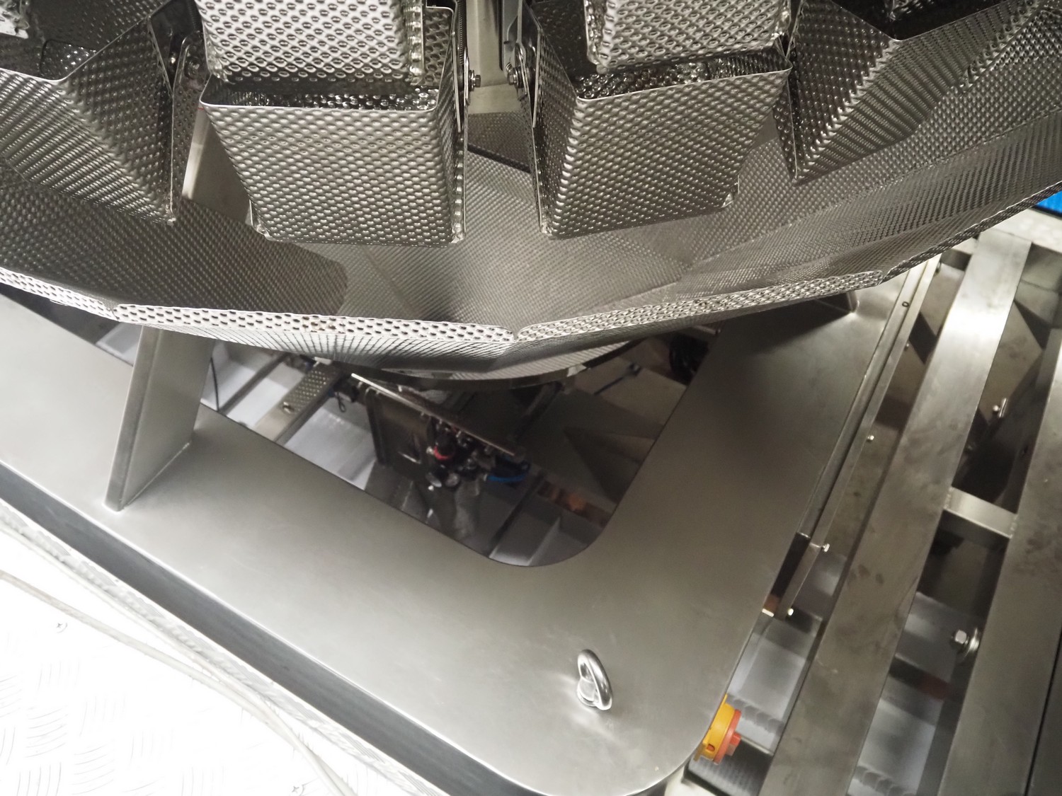20 heads multihead weigher, dimensions: 1600 mm x 2000 mm x 2000 mm.