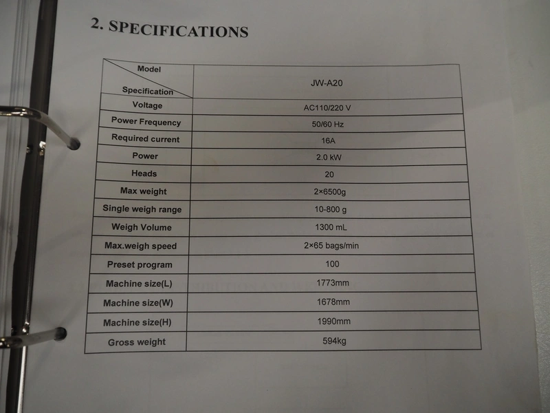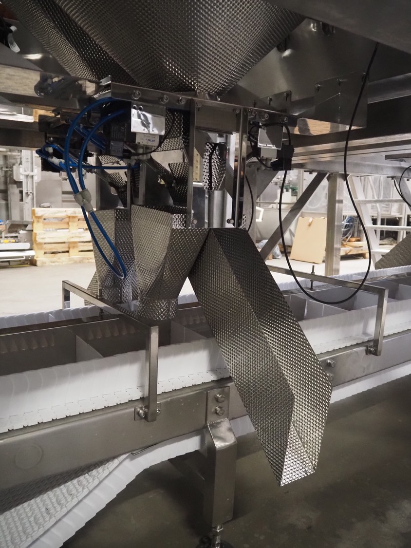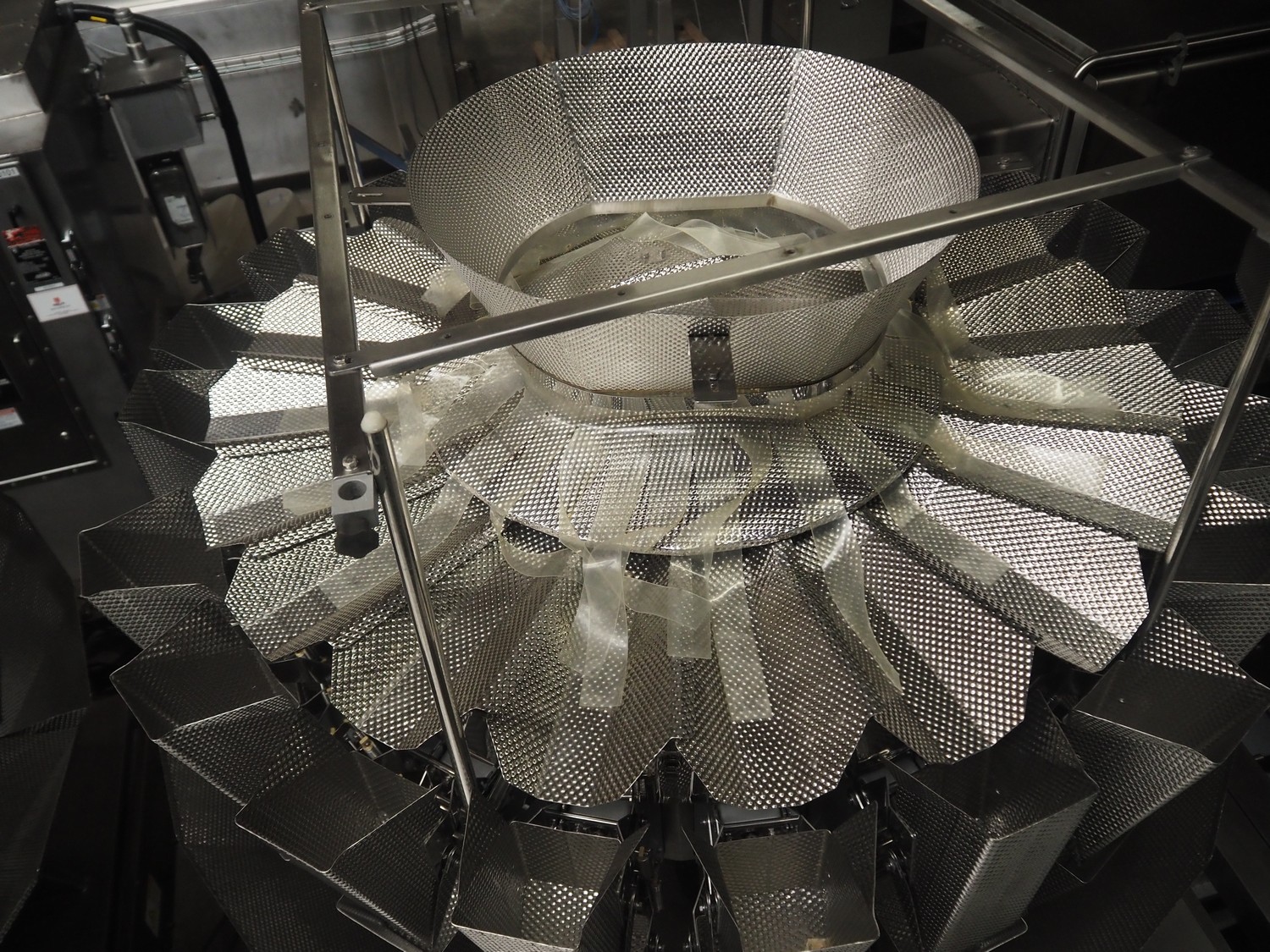 20 heads multihead weigher, dimensions: 1600 mm x 2000 mm x 2000 mm.