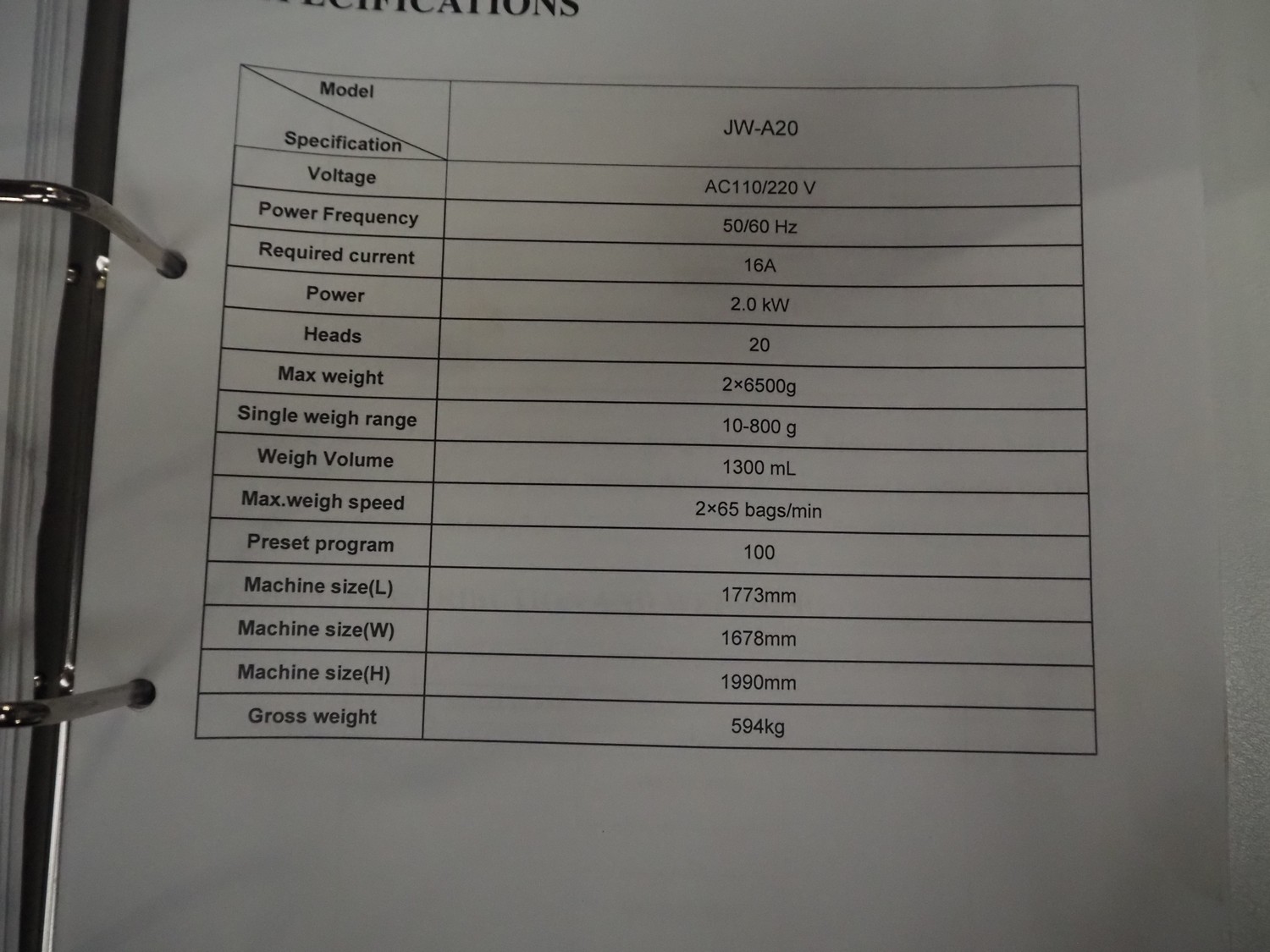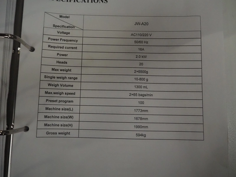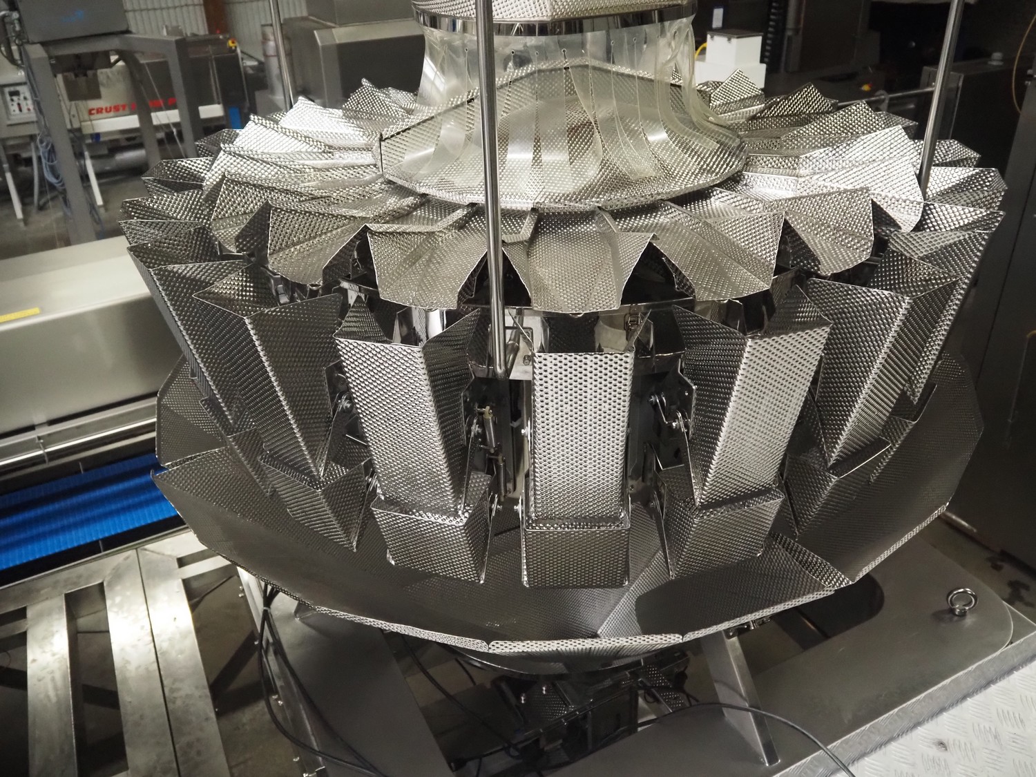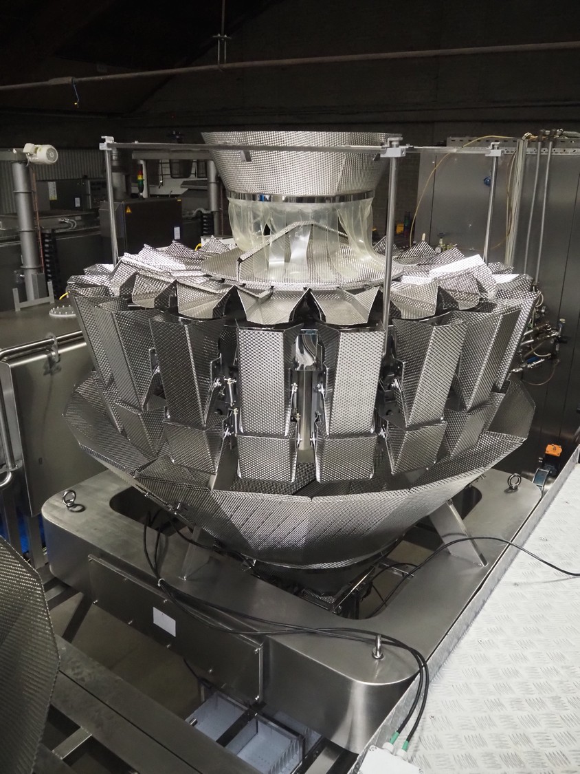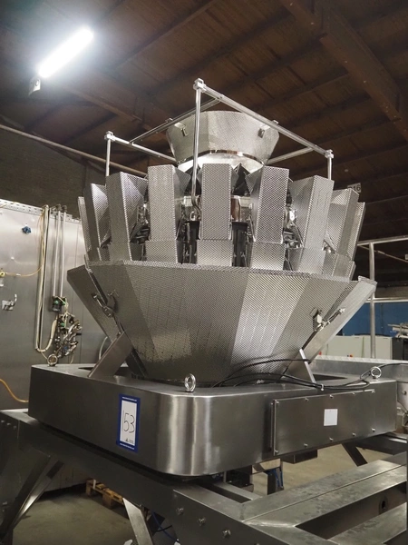 20 heads multihead weigher, dimensions: 1600 mm x 2000 mm x 2000 mm.