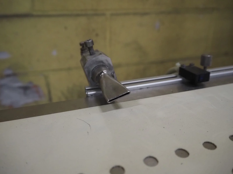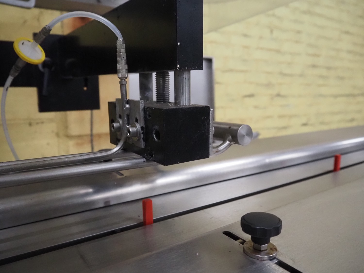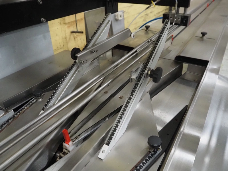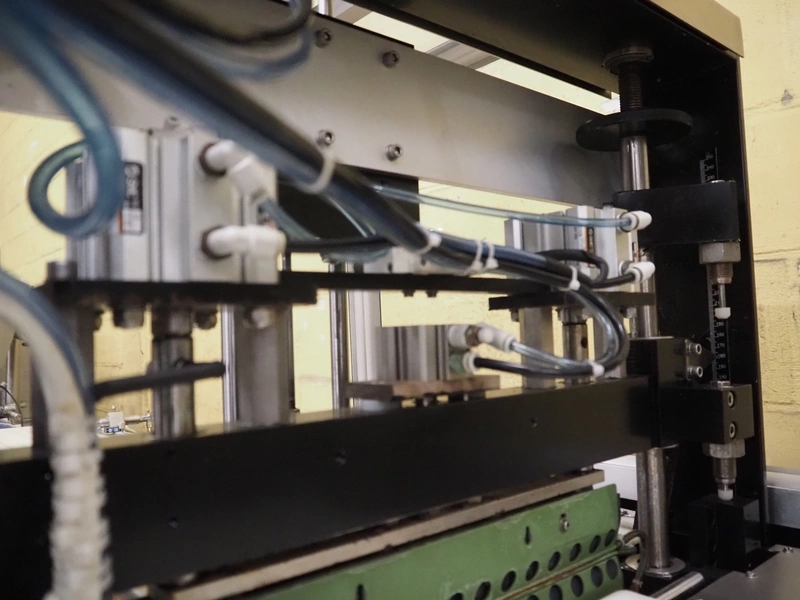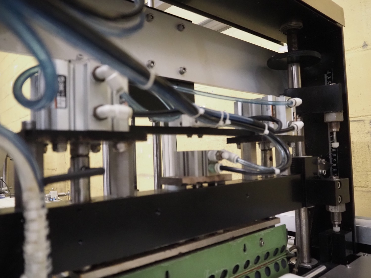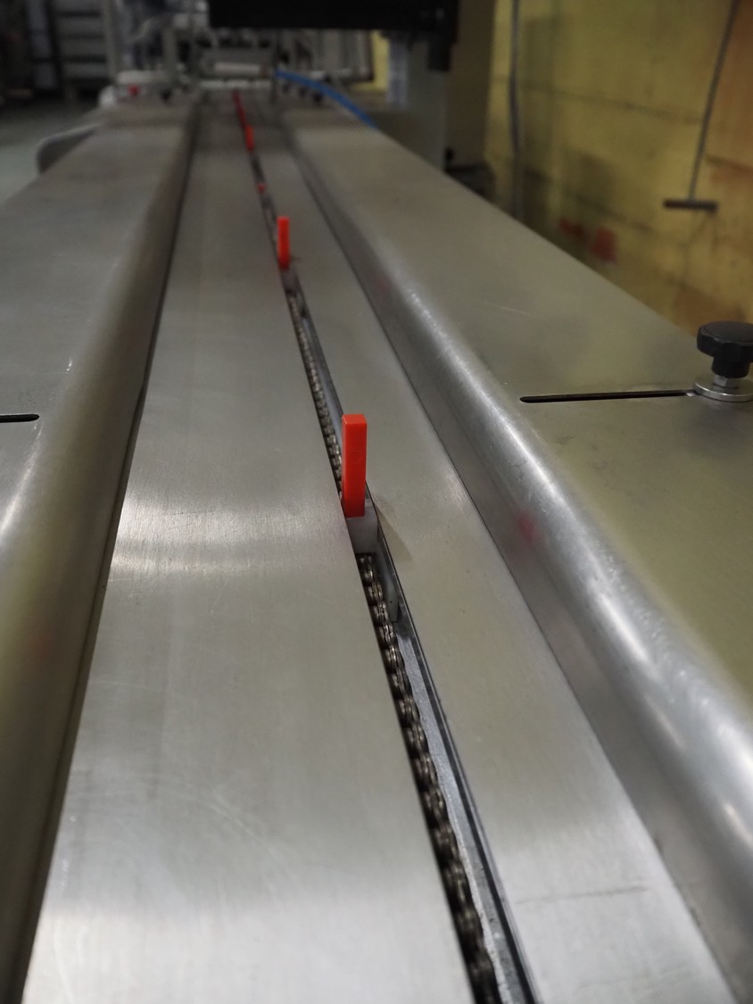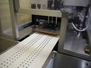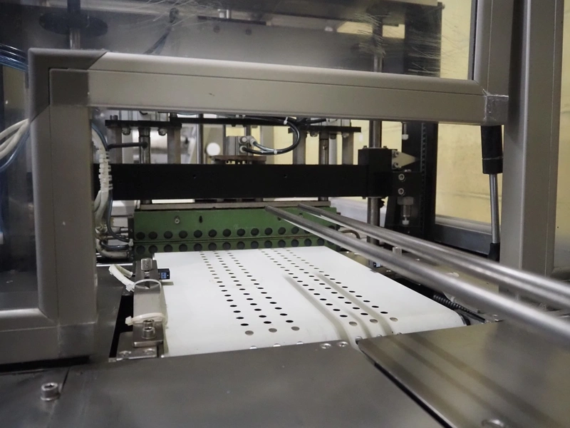 Ulma flowpacker, model: Alaska, machine number: 2504032, year of construction: 1999, 400 V, 50 Hz, infeed belt with dividers, distance between dividers: 400 mm, divider height: 30 mm, film width: 560 mm, plastic belt, belt width: 300 mm, seal width: 330 mm, with PBI Dansensor gas mixer, model: Module TGC-2 335, total dimensions: 5900 mm x 1250 mm x 1900 mm.