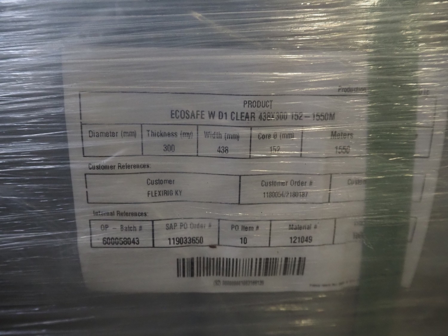 Plastic roll, foil width: 880 mm.