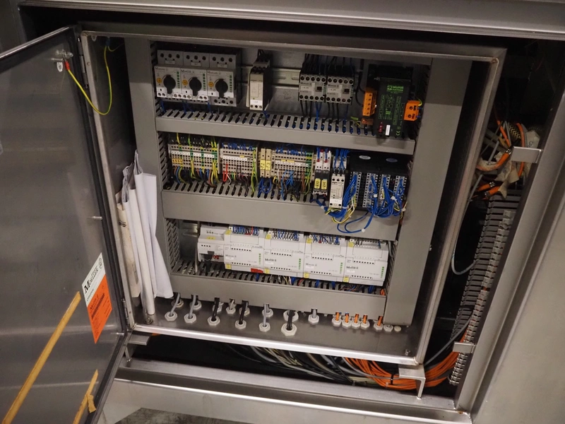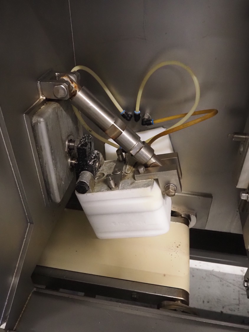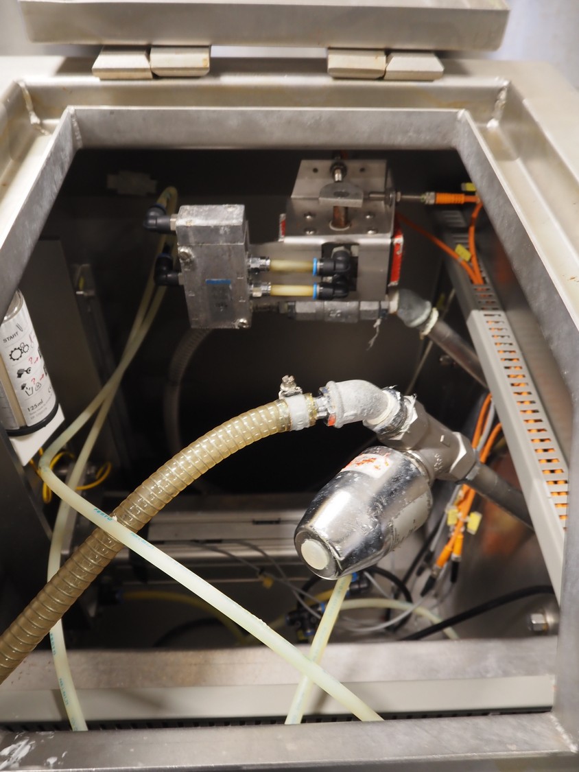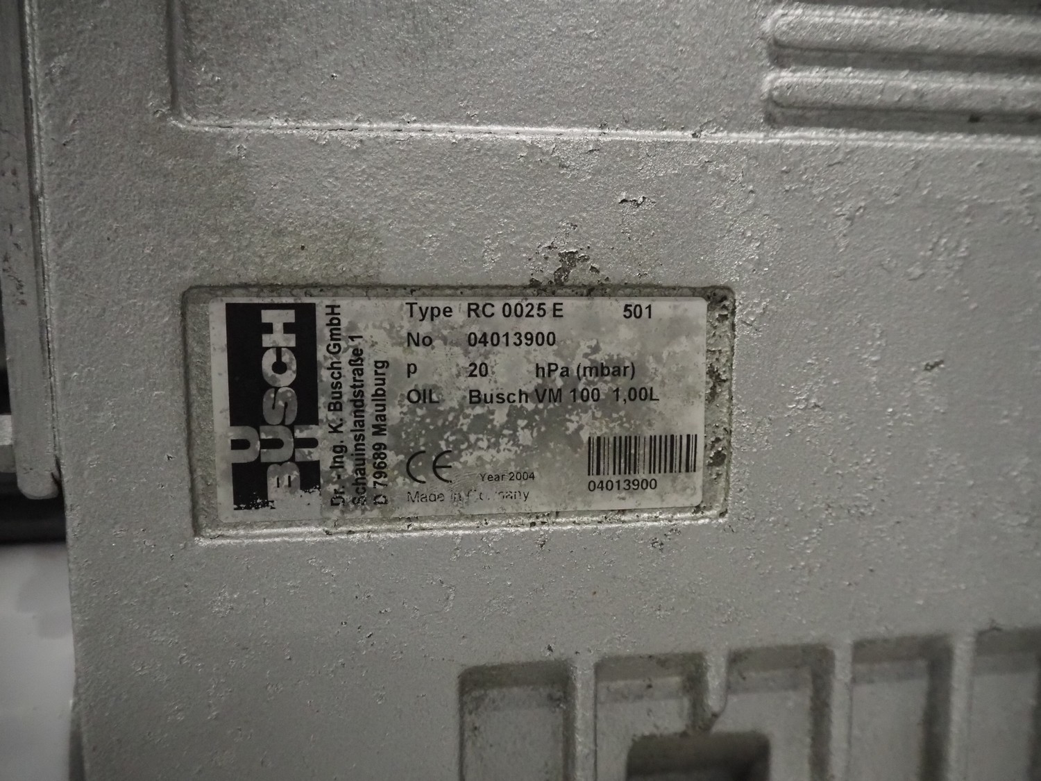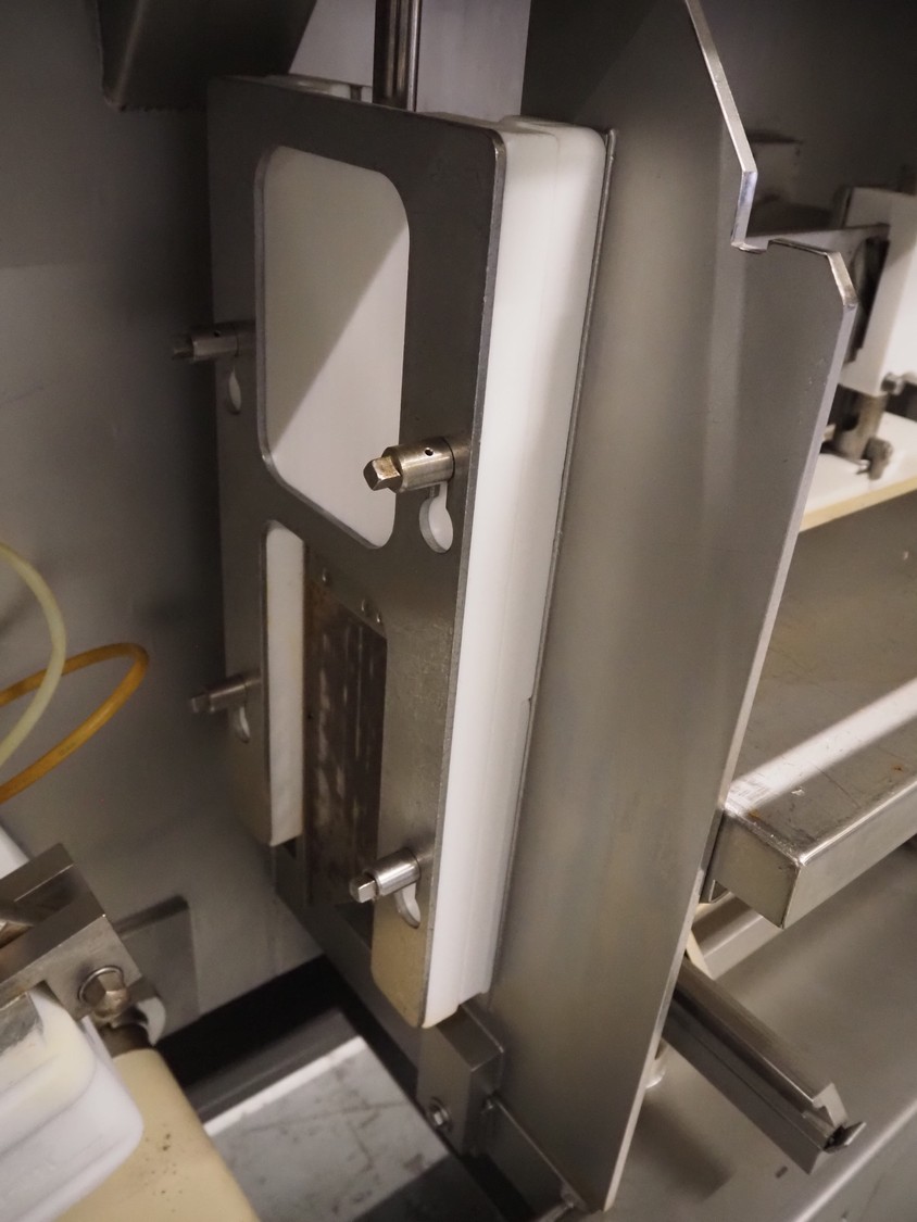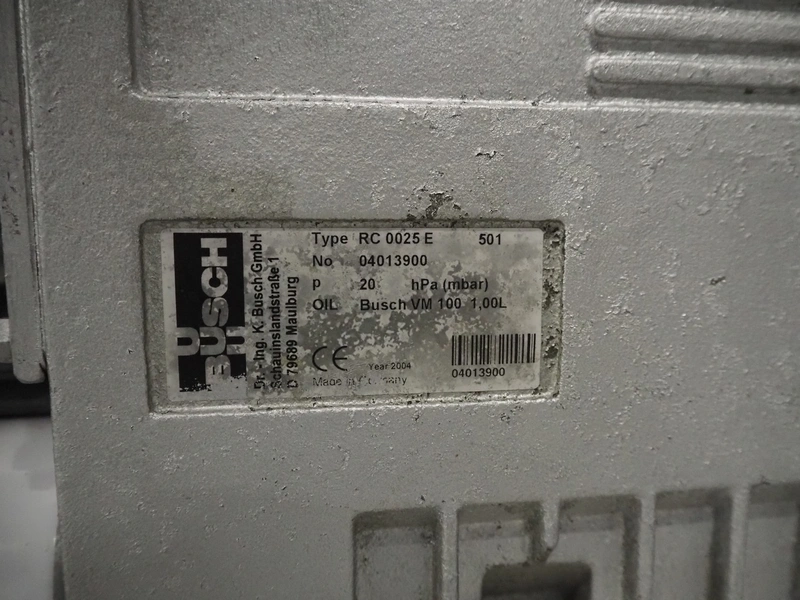 Maja Maschinenfabrik mobile portioning machine, type: FPS 40, number: 41514, year of construction: 1999, 400 V, 3 Ph, 50 Hz, 2.6 A, 1.0 kW, Busch vacuum pump, type: RC 0025 E 501, number: 04013900, year of construction: 2004, capacity: 25 m³ per hour, dimensions chamber: 550 mm x 160 mm x 100 mm, plastic belt, belt width: 200 mm, total dimensions: 2800 mm x 690 mm x 1800 mm.