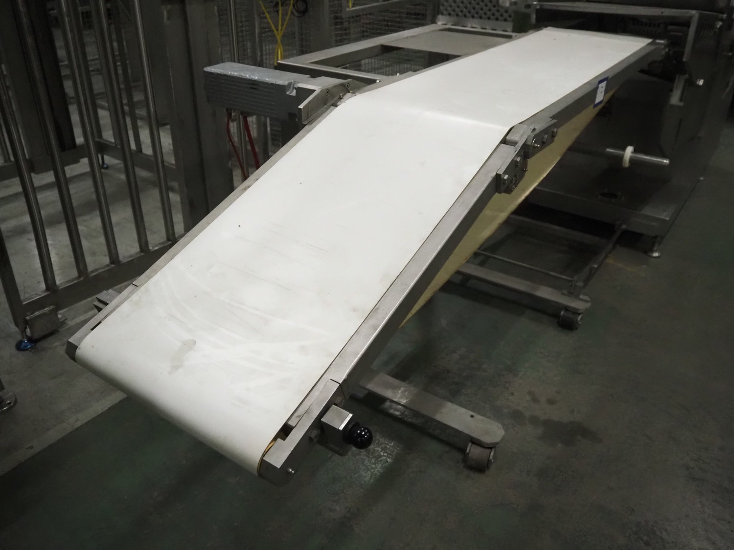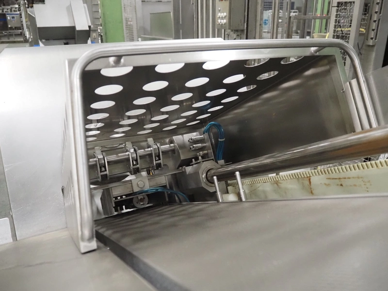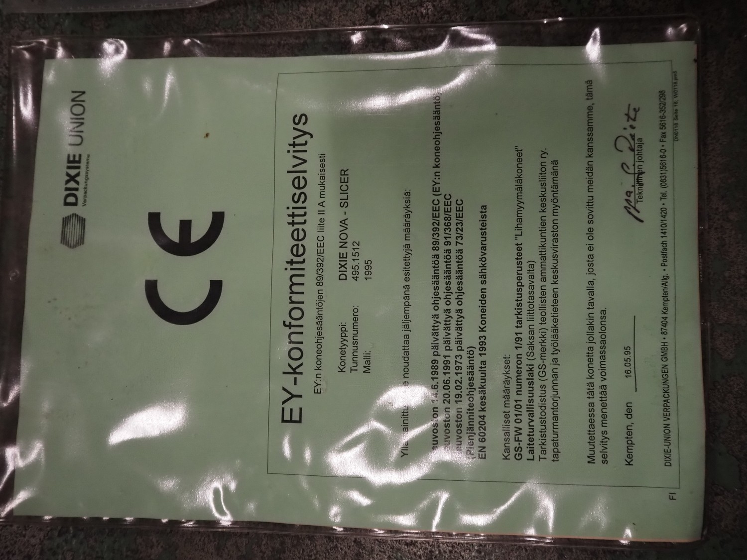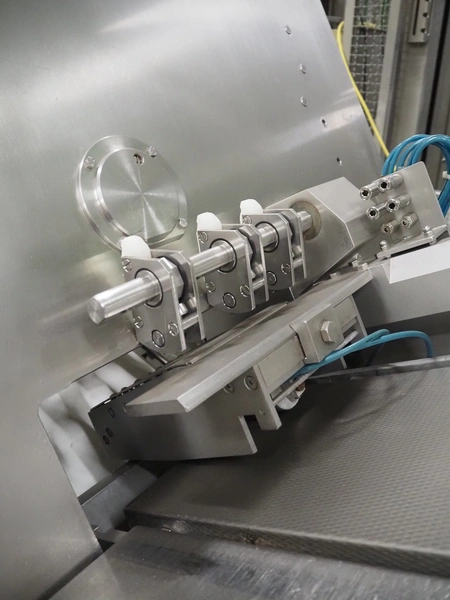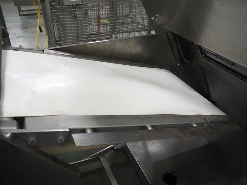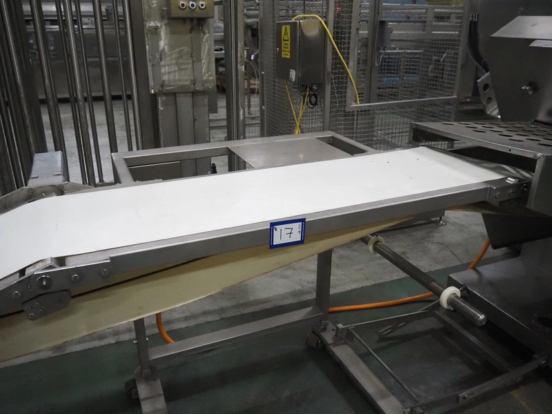 Dixie-Union Verpackungen GmbH slicer, type: Nova-Slicer, serial number: 495.1512, year of construction: 1995, with Dixie Union outfeed belt, type: ATB 797, plastic belt, belt width: 400 mm, total dimensions: 4650 mm x 1050 mm x 2000 mm. Incomplete, missing knife.