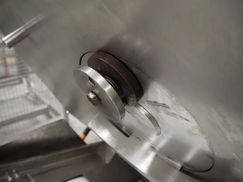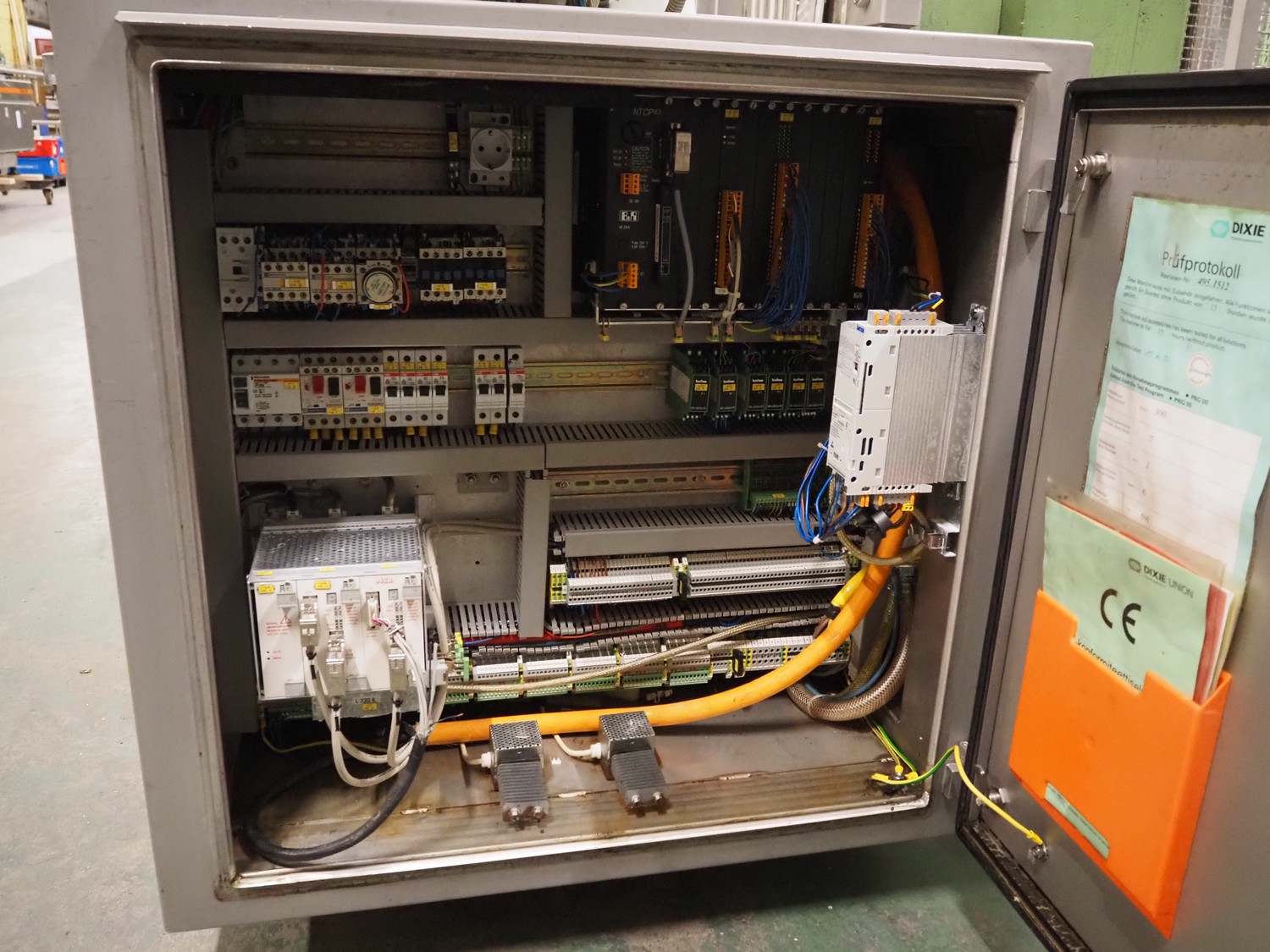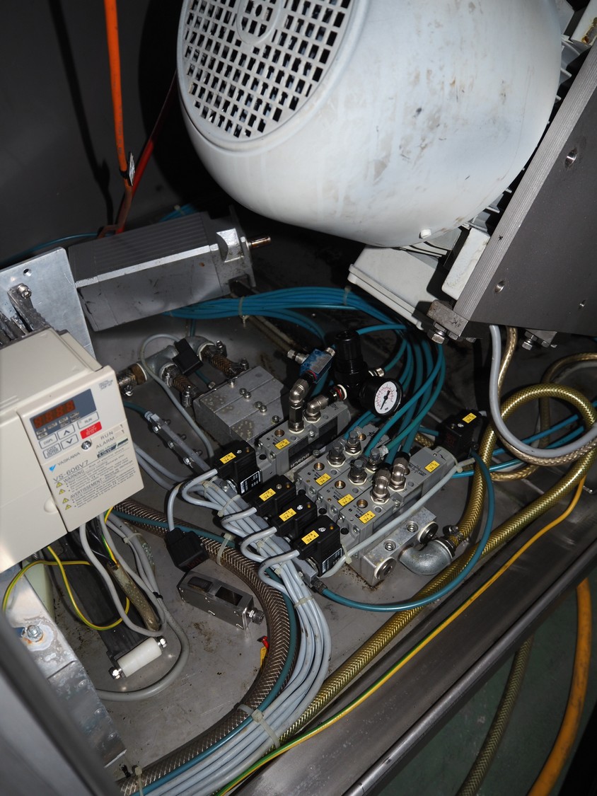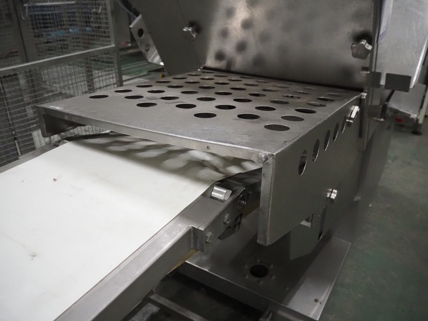 Dixie-Union Verpackungen GmbH slicer, type: Nova-Slicer, serial number: 495.1512, year of construction: 1995, with Dixie Union outfeed belt, type: ATB 797, plastic belt, belt width: 400 mm, total dimensions: 4650 mm x 1050 mm x 2000 mm. Incomplete, missing knife.