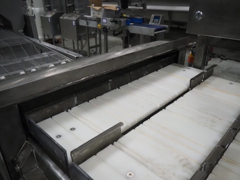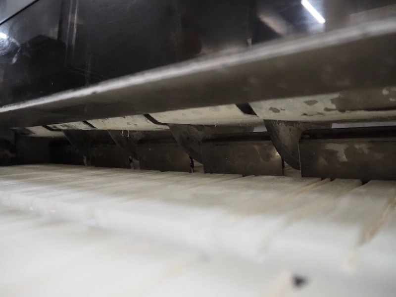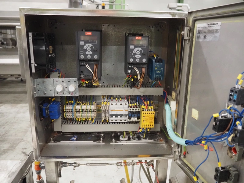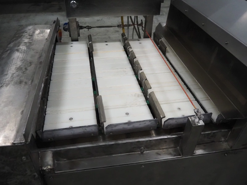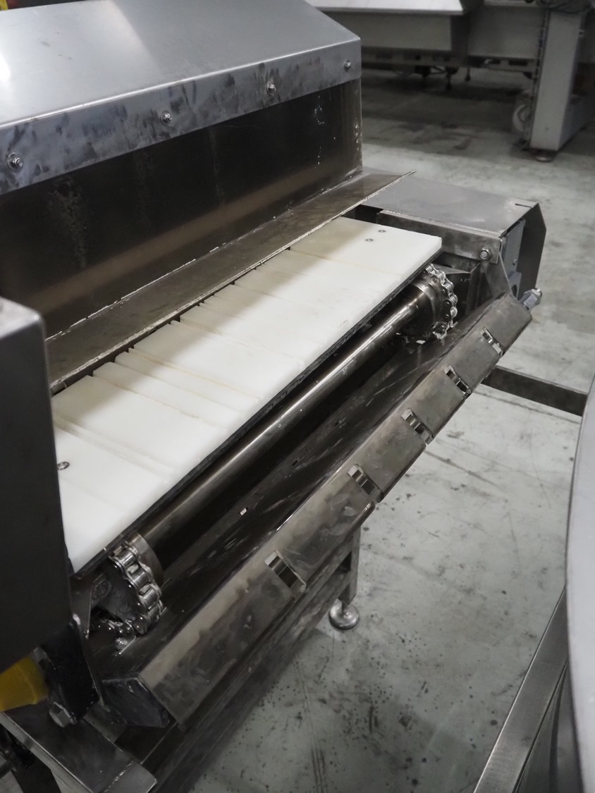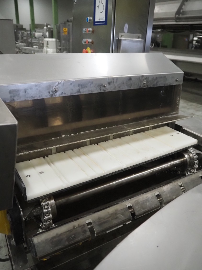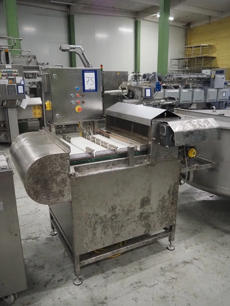 S/s slicer, 5 knives, distance between knives: 135 mm, working width: 670 mm, total dimensions: 1750 mm x 1200 mm x 1670 mm.