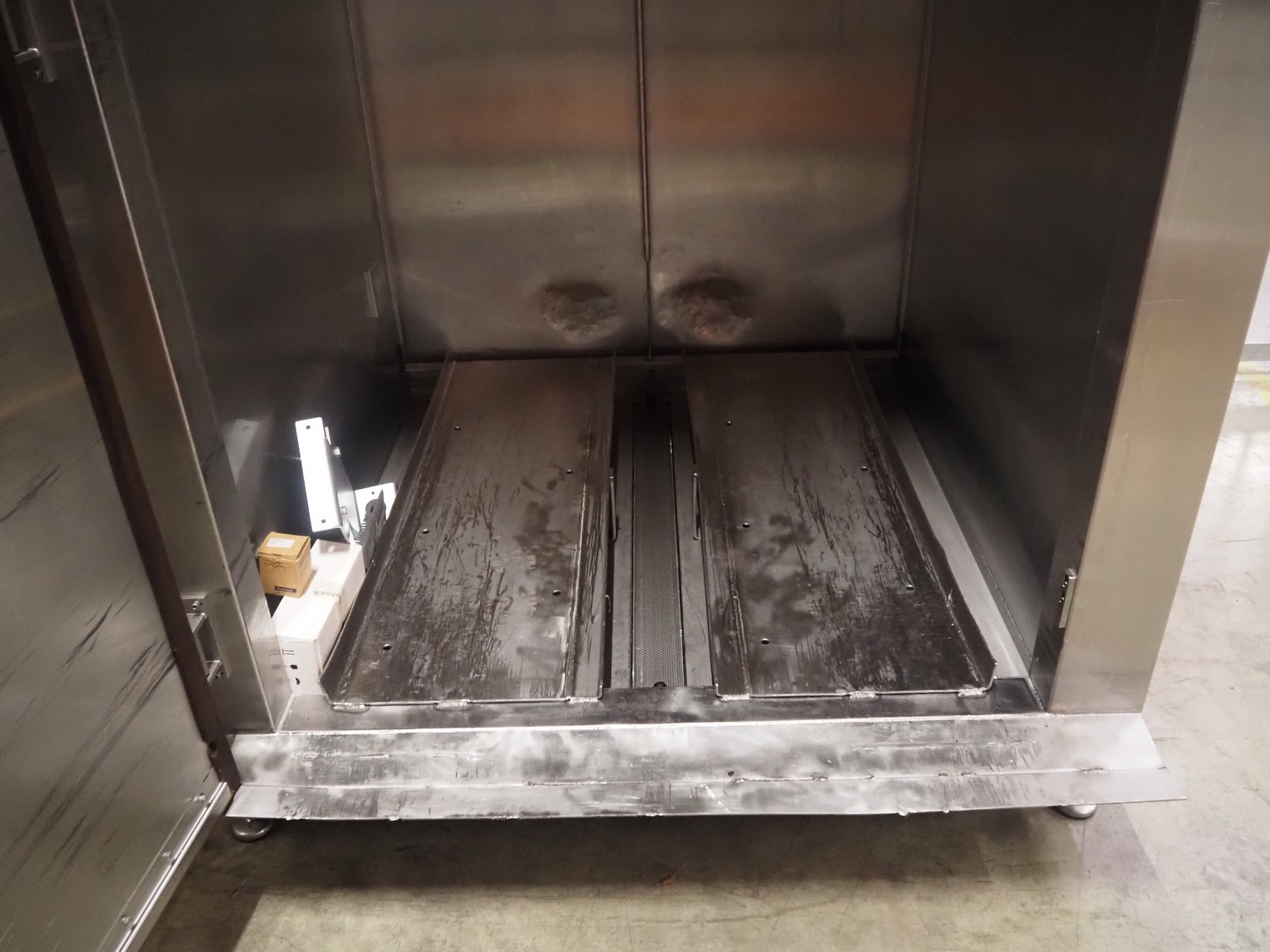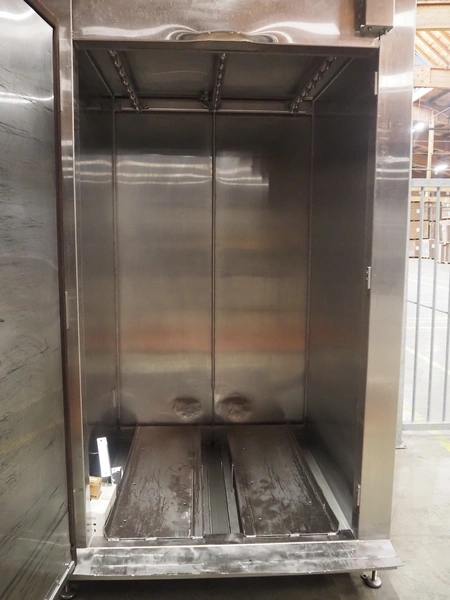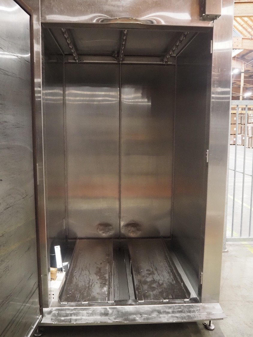 Protech speed smoker, inside dimensions: 1330 mm x 1360 mm x 2100 mm, total dimensions: 2000 mm x 1600 mm x 2600 mm.