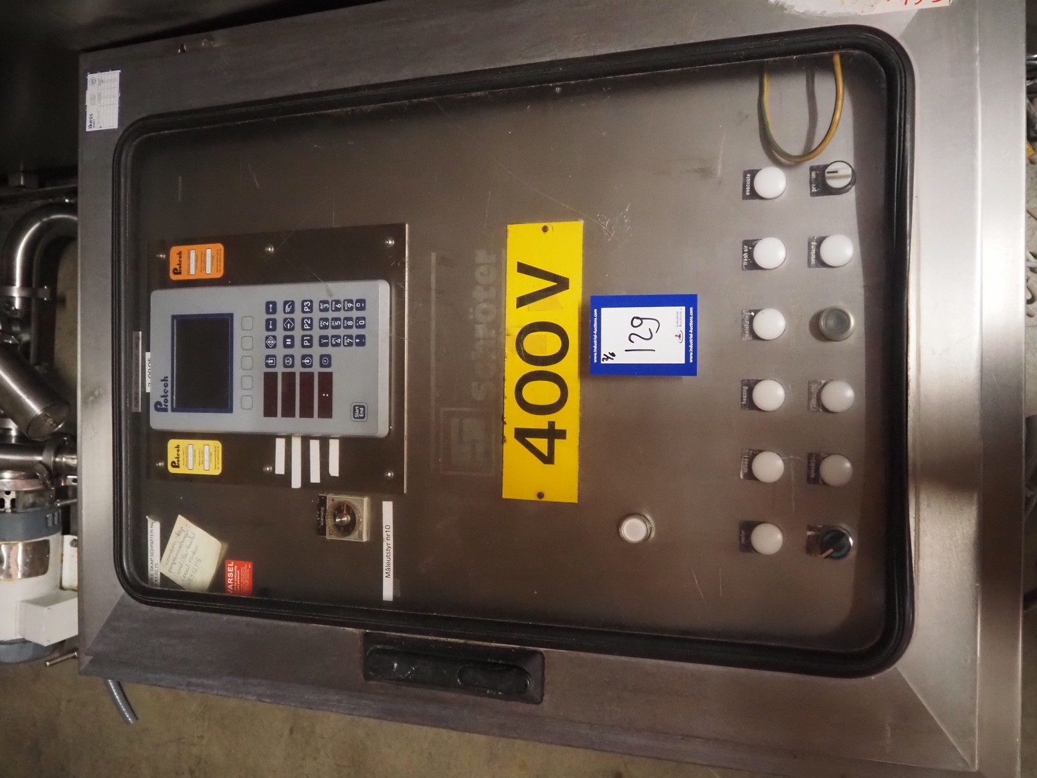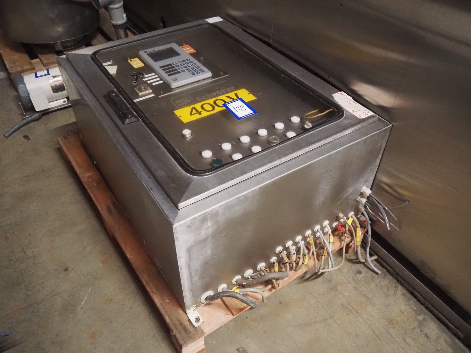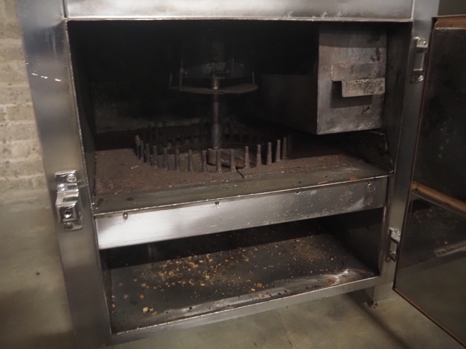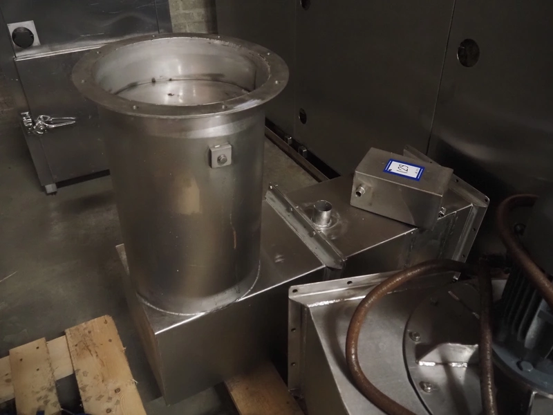 Schroter GmbHSchröter smoking and cooking chamber, type: W4, year of construction: 08/91, 230/400 V, 50 Hz, 12 kW, steam heated, 135 kg per hour, inside dimensions: 4200 mm x 1600 mm x 2600 mm, total dimensions: 4300 mm x 1750 mm x 2850 mm, Smoke generator for wood chips, dimensions: 720 mm x 650 mm x 1650 mm, 3 pallets with s/s switch cabinet and parts. cooking and smoking chamber, inside dimensions: 1330 mm x 1360 mm x 2100 mm, total dimensions: 2000 mm x 1600 mm x 2600 mm.