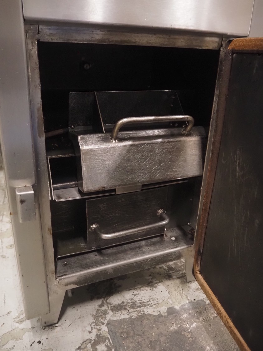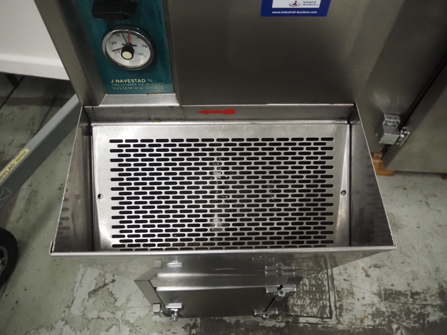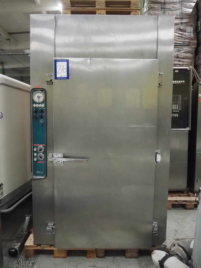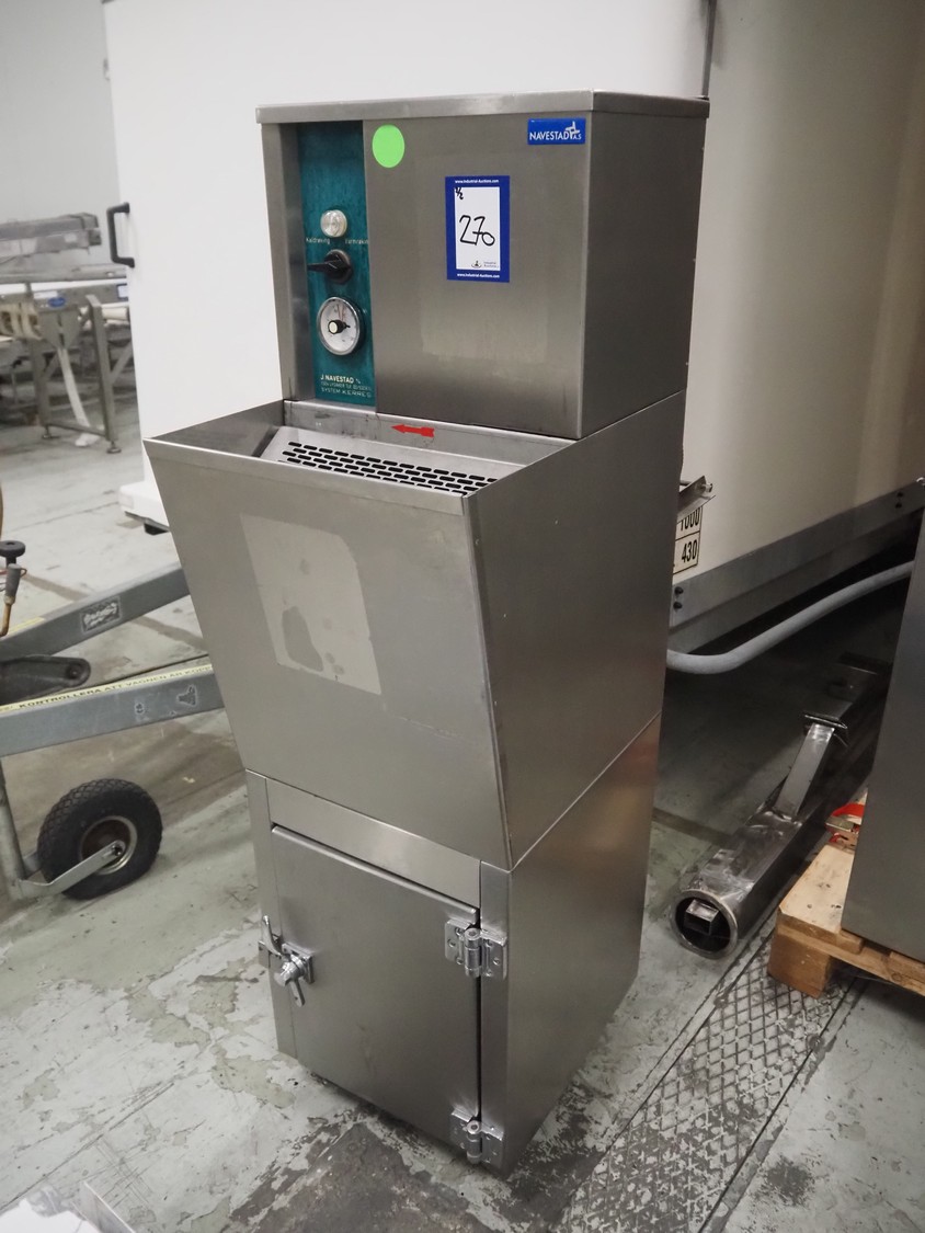 Kerres cooking and smoke chamber, inside dimensions: 950 mm x 1000 mm x 1900 mm, total dimensions: 1500 mm x 1130 mm x 2500 mm. Including s/s smoke trolley, 11 floors, dimensions floors: (11x) 840 mm x 770 mm, dimensions trolley: 910 mm x 780 mm x 1700 mm and Kerres smoke generator, dimensions smoke generator: 700 mm x 400 mm x 1400 mm.