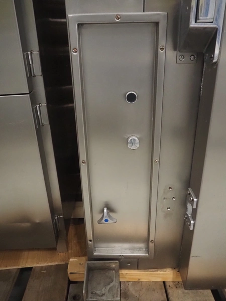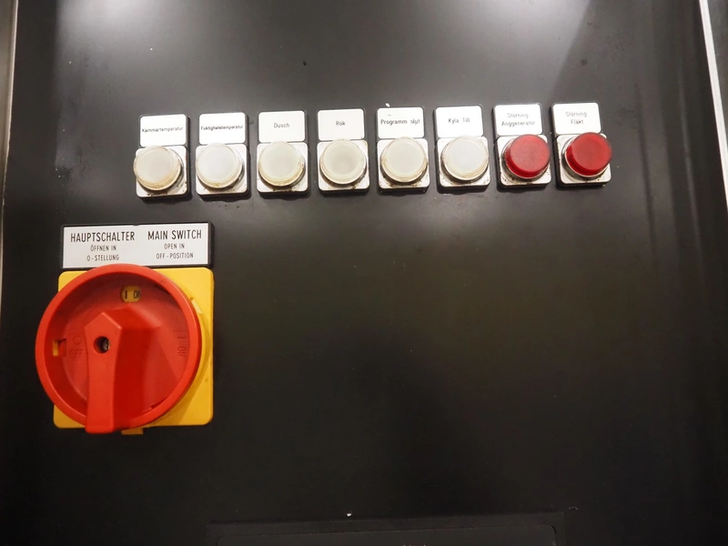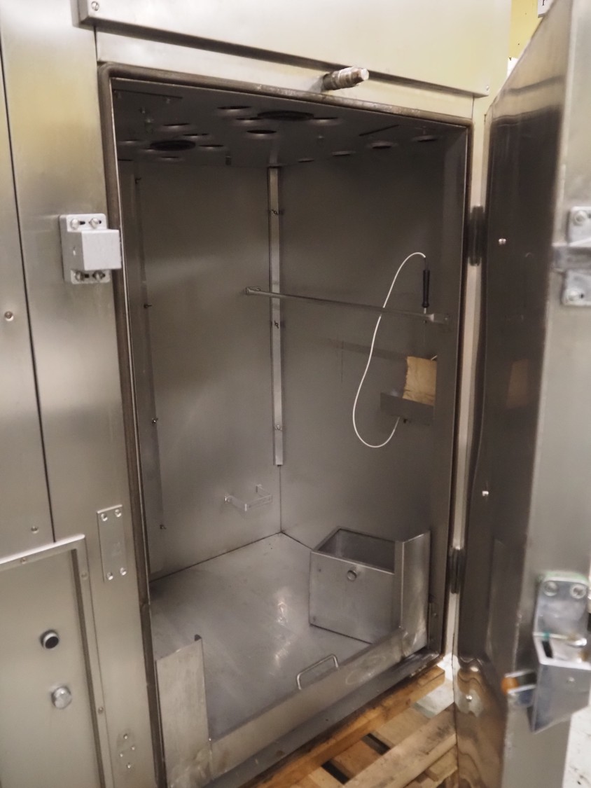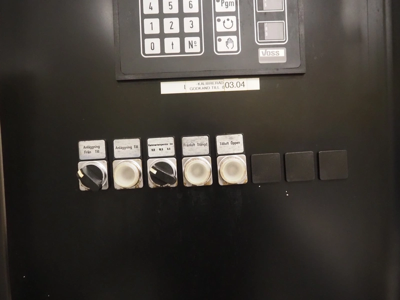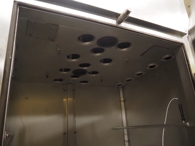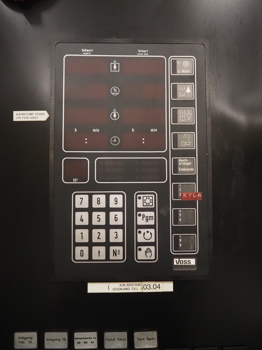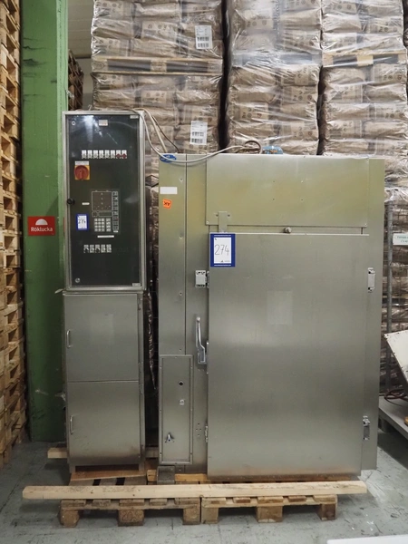 Voss smoke chamber with friction smoke generator for 1 trolley, year of construction: 1992, 380 V, 50 Hz, 18.45 kW, inside dimensions: 860 mm x 700 mm x 1380 mm, total dimensions: 2080 mm x 1050 mm x 2300 mm.
