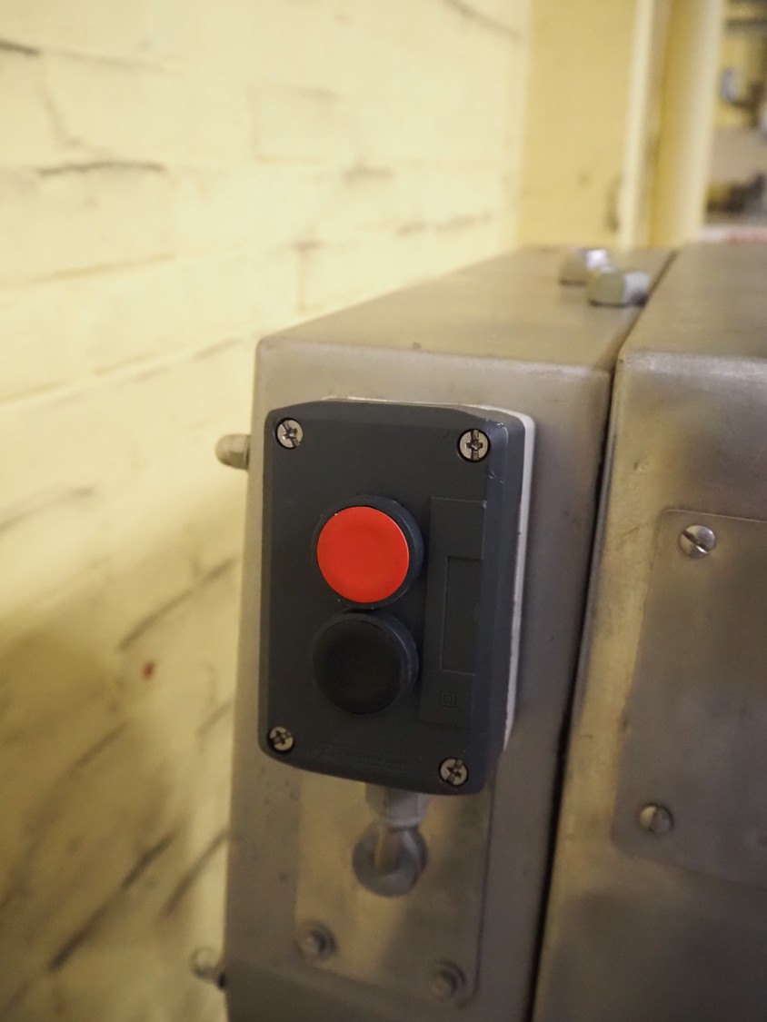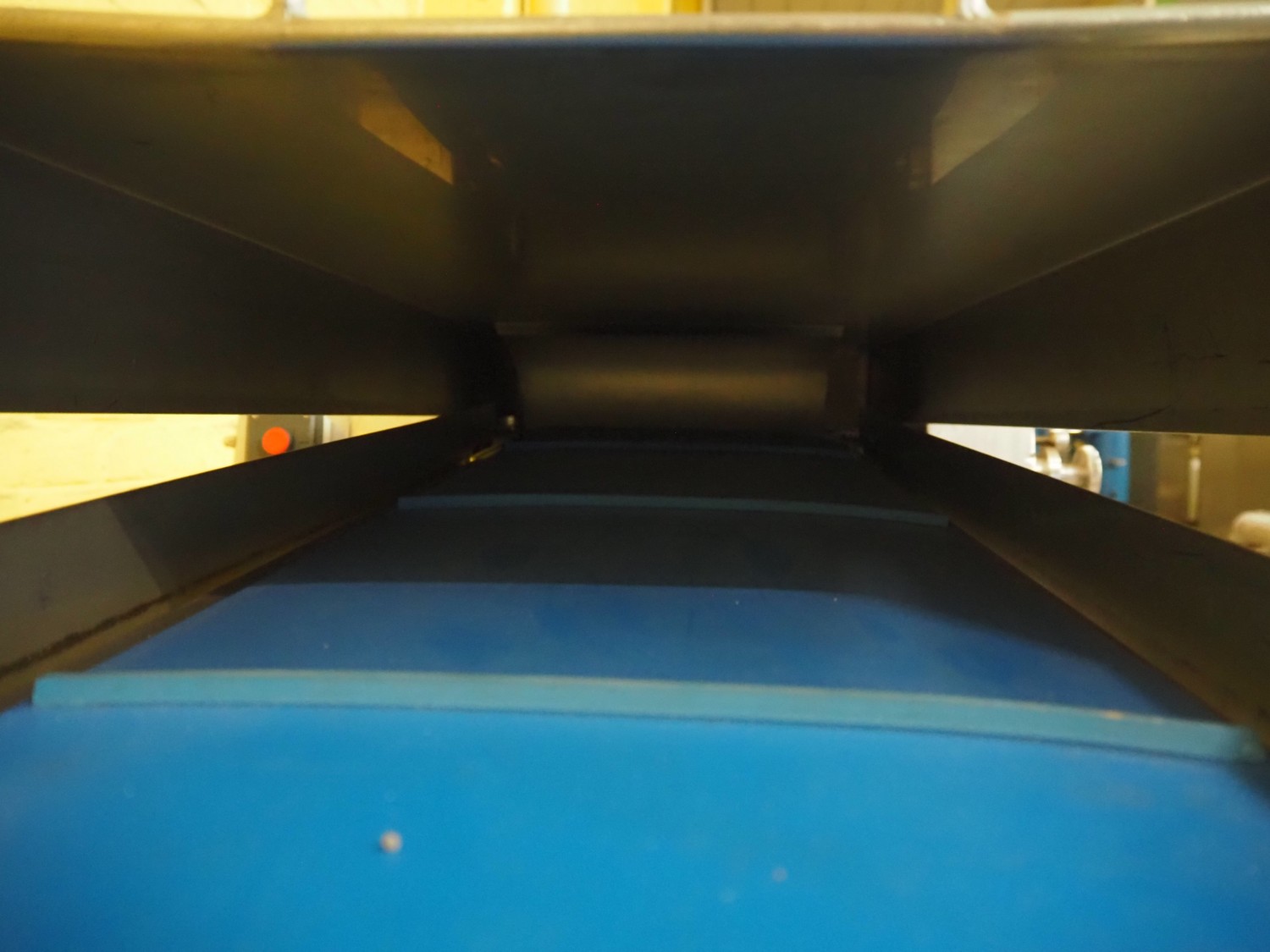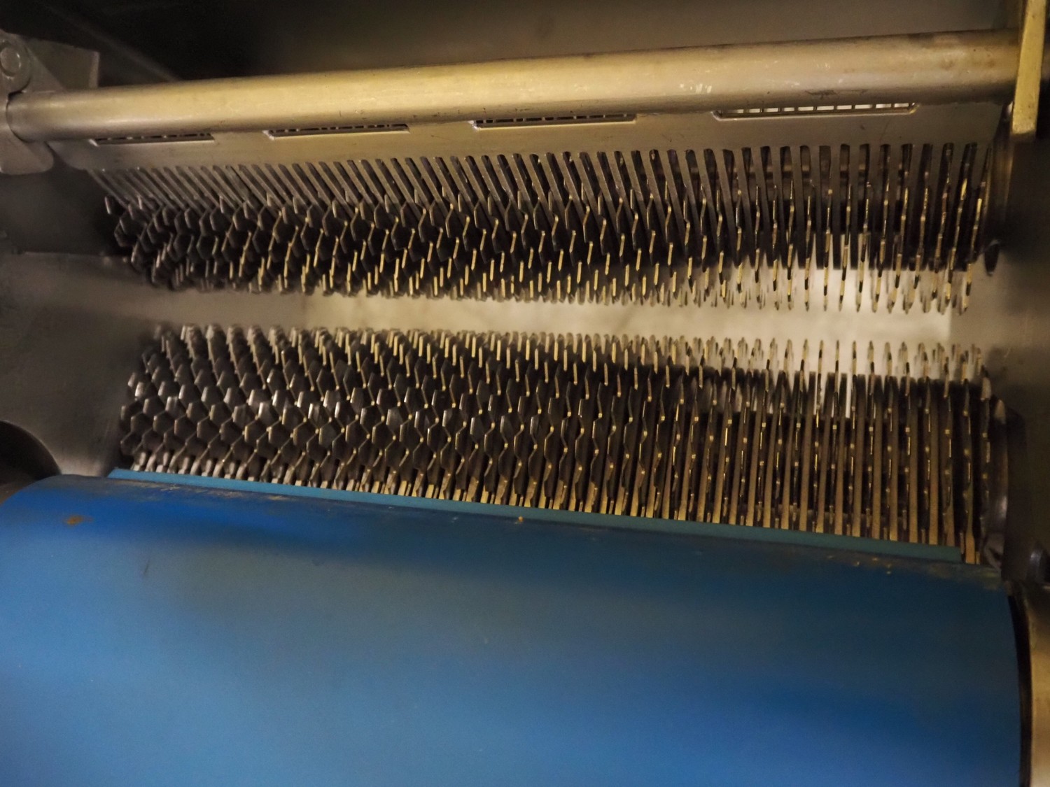 Belam B.V. mobile tenderizer, type: IT-3, machine number: 8212-3024, 380 V, 50 Hz, plastic infeed belt with dividers, belt width: 300 mm, divider height: 5 mm, distance between dividers: 300 mm, working width: 340 mm, total dimensions: 1950 mm x 940 mm x 1220 mm.