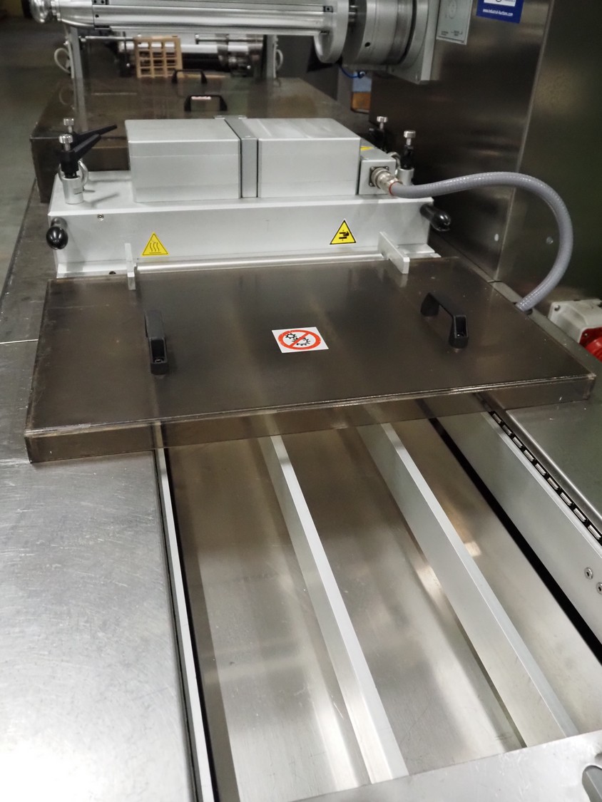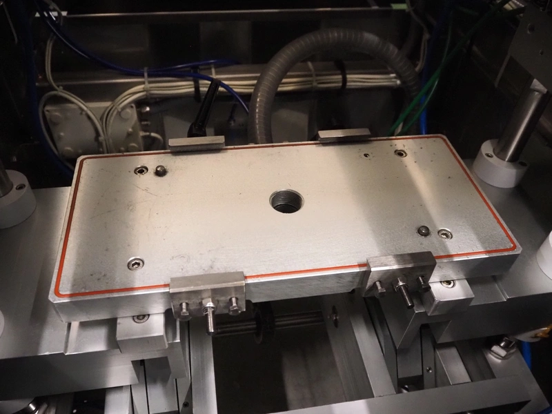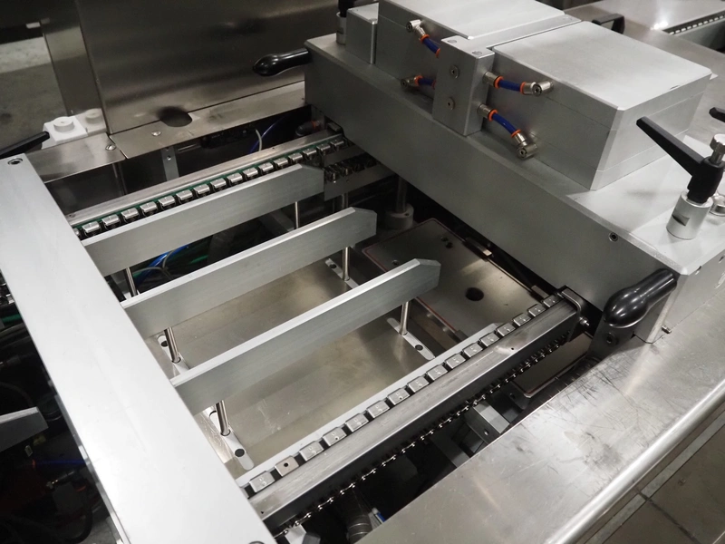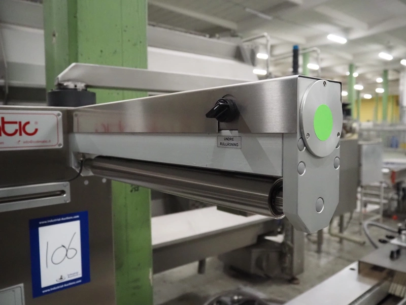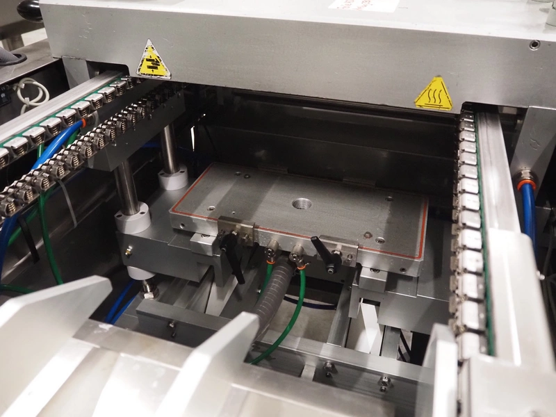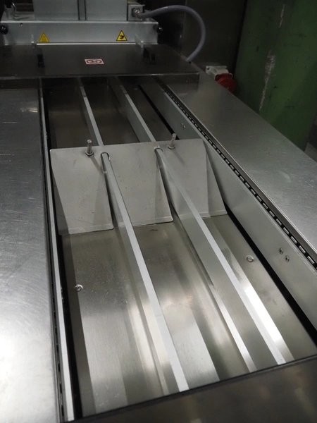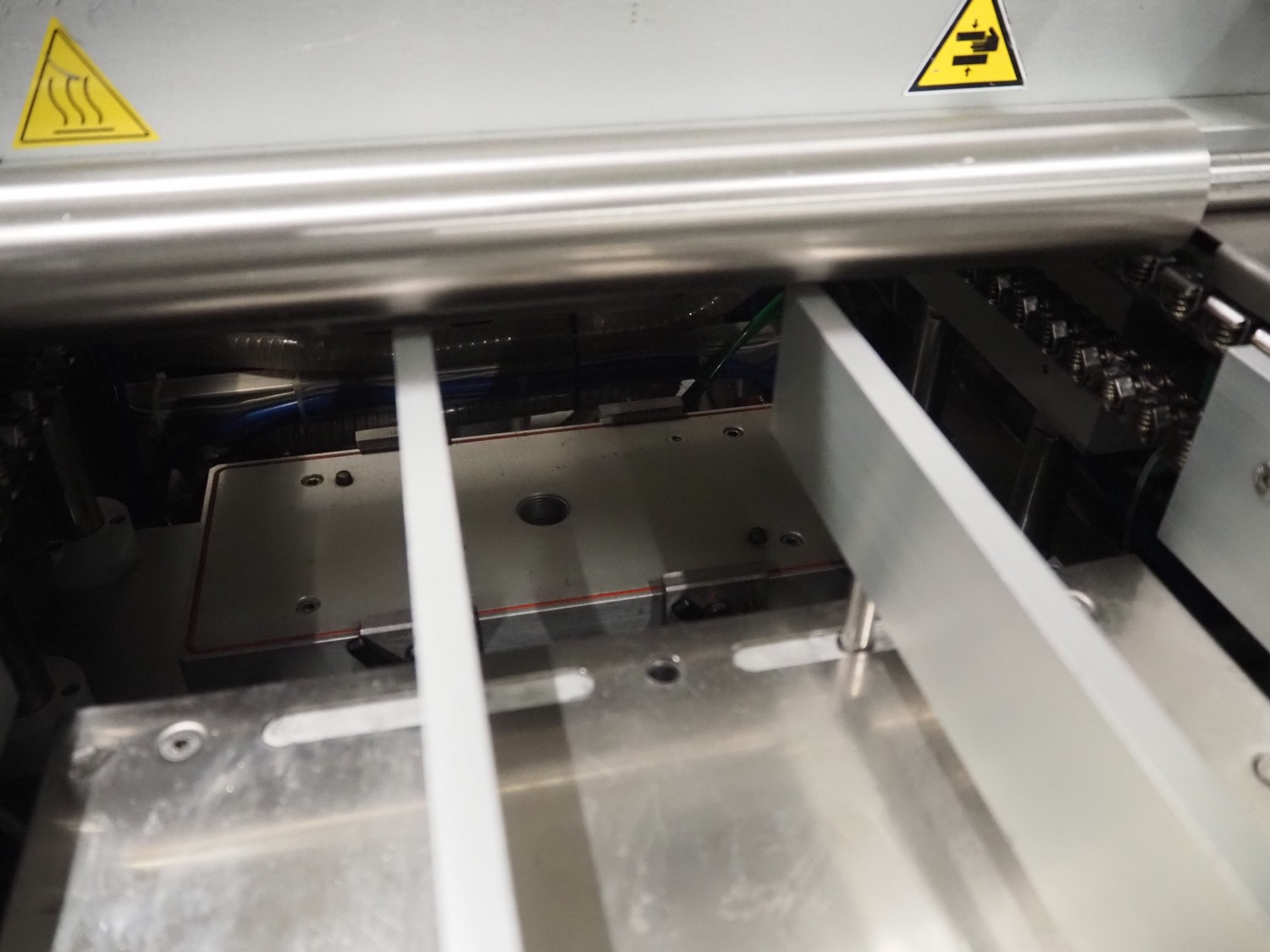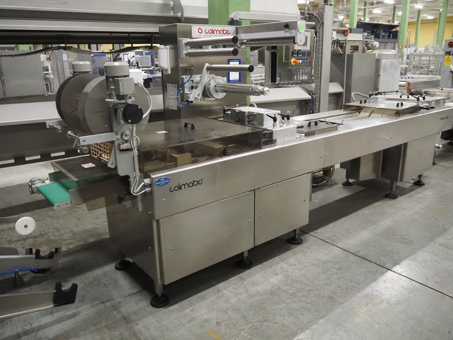 Colimatic thermoformer, model: Thera 450, type: F420/400, serial number: 1892, year of construction: 03/2007, 400 V, 3 Ph, 50 Hz, 22 A, index: 410 mm, estimated film width: 420 mm, dimensions dye: 410 mm x 180 mm, plastic outfeed belt, belt width: 380 mm, total dimensions: 4600 mm x 1100 mm x 1920 mm. Including Rietschle vacuum pump, type: VC 150 (20), number: 1026522059, capacity: 150 m³/h, dimensions: 720 mm x 440 mm x 340 mm.