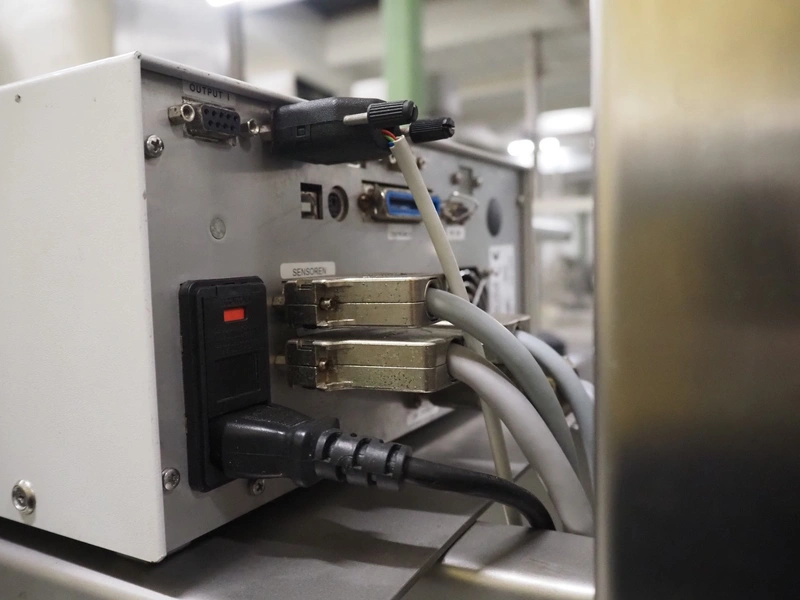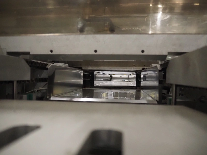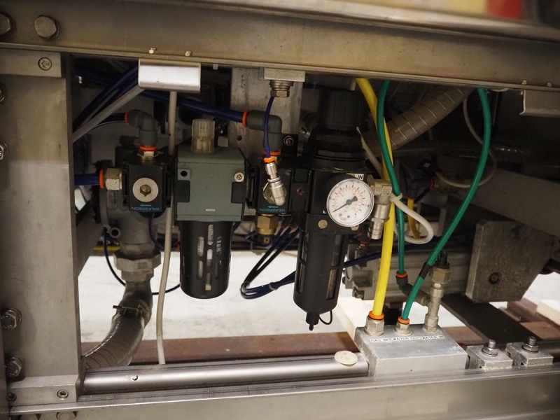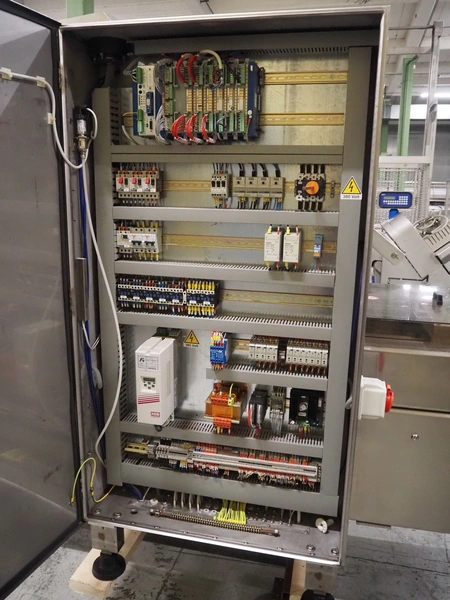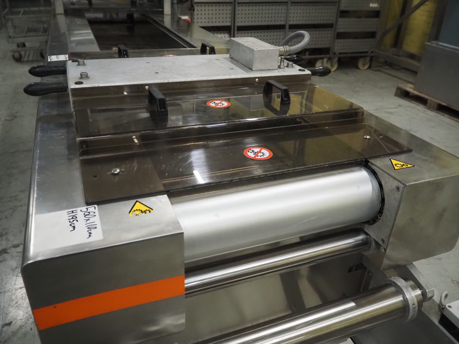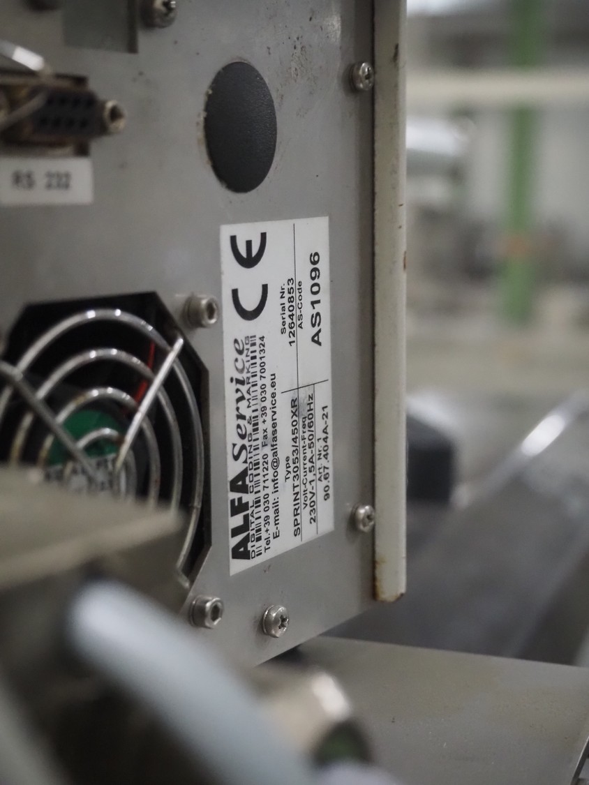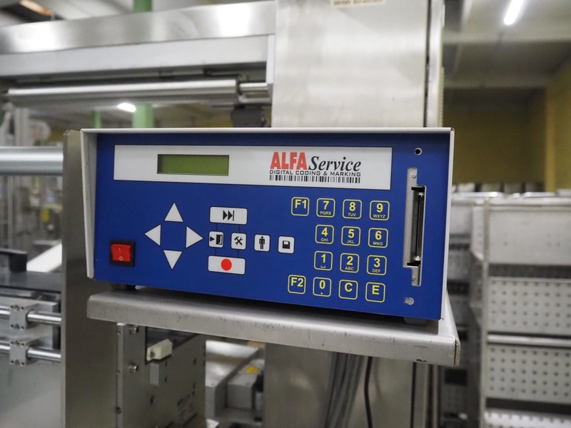 Colimatic thermoformer, model: THERA 650, type: F 420, serial number: 1608, year of construction: 03/2000, 380 V, 3 Ph, 50 Hz, 32 A, plastic belt, belt width: 350 mm, dyes: (1x) 405 mm x 230 mm, index: 310 mm, total dimensions: 5650 mm x 1100 mm x 1950 mm.