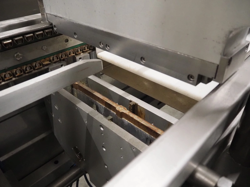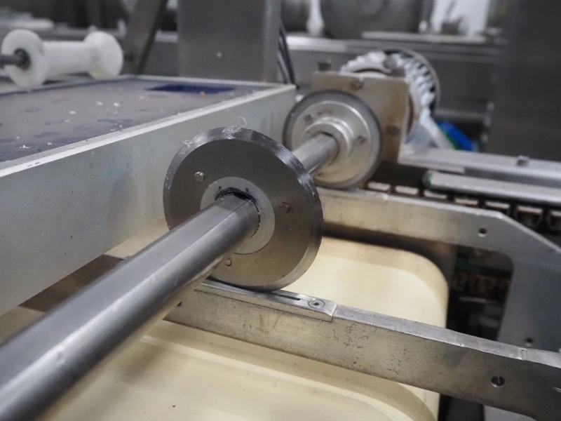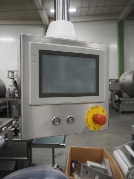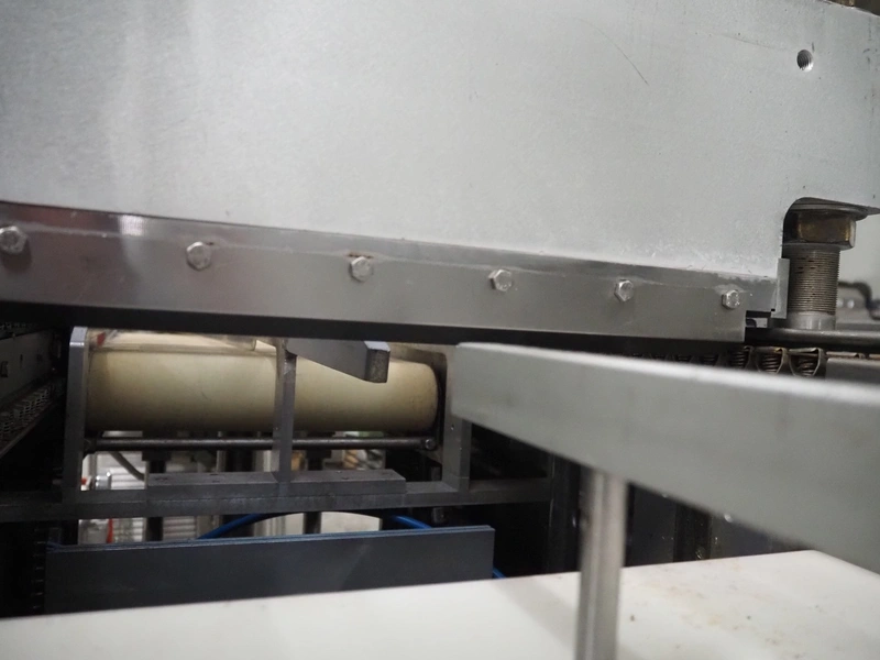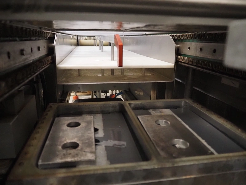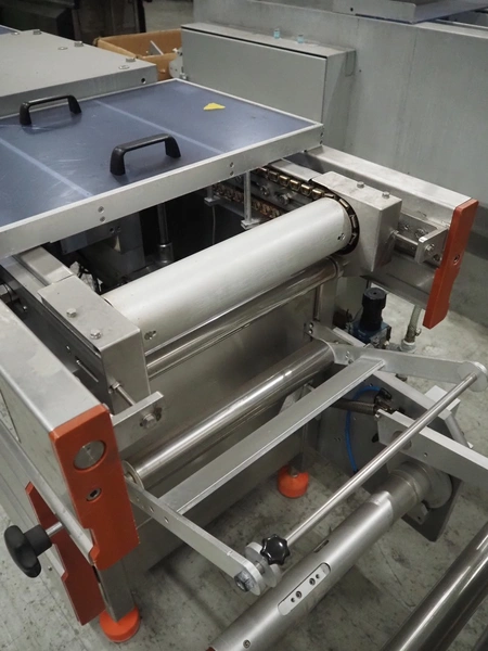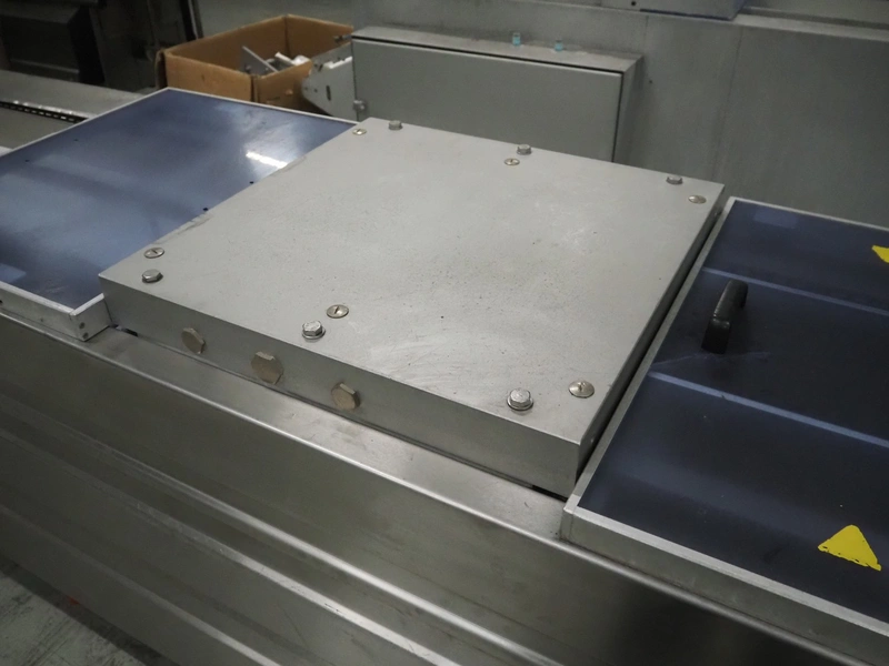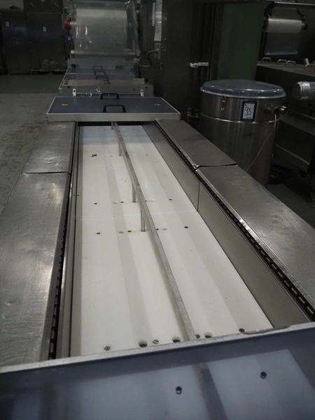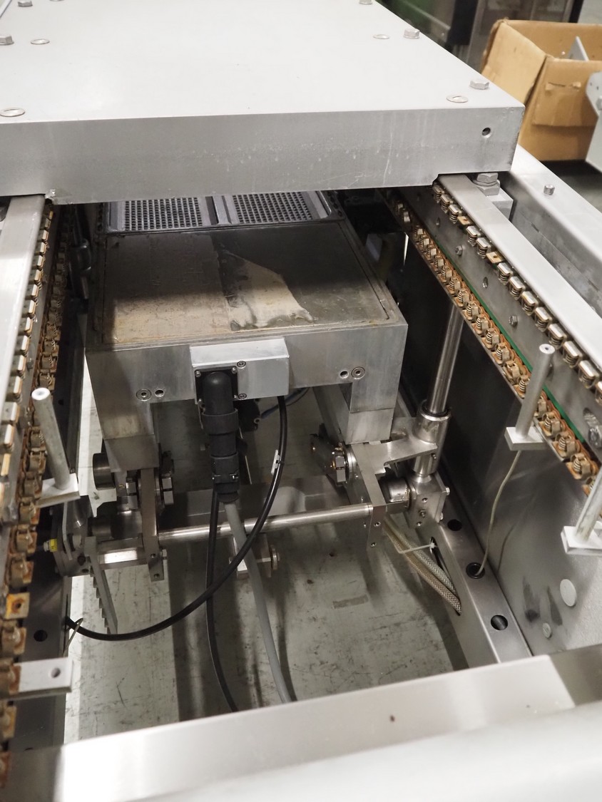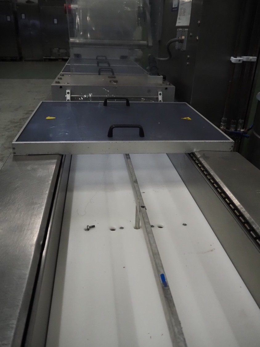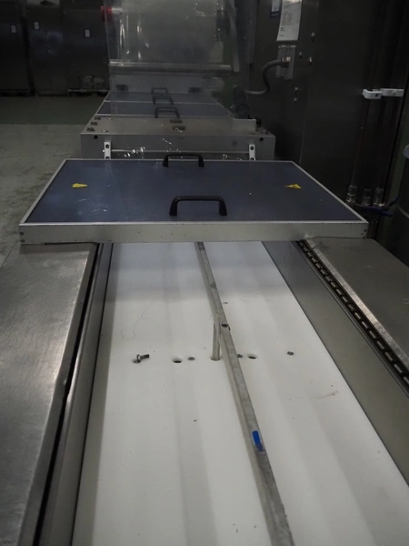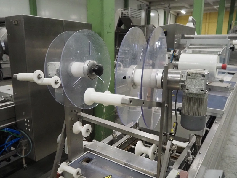 Repak thermoformer, type: RE3, machine number: 18614, year of construction: 2004, 220/380 V, 3 Ph, 50 Hz, 34 A, 15 kW, film width: 420 mm, dye: (2x) 290 mm x 180 mm, plastic outfeed belt, belt width: 380 mm, Busch vacuum pump, type vacuum pump: CB 02350 B, number: 04002605, year of construction: 2004, capacity: 250 m³/h, total dimensions: 7800 mm x 1020 mm x 2100 mm. Including suction device, dimensions: Ø 410 mm x 1110 mm.