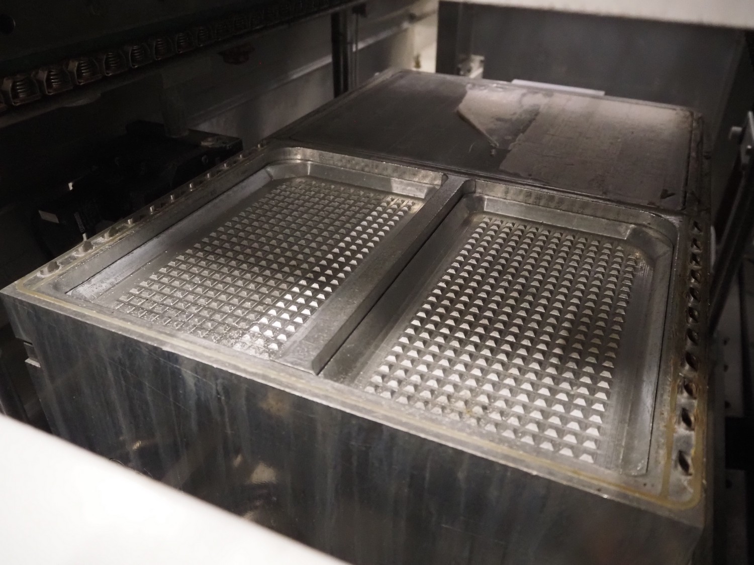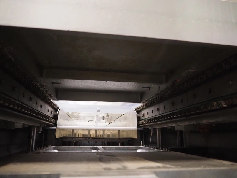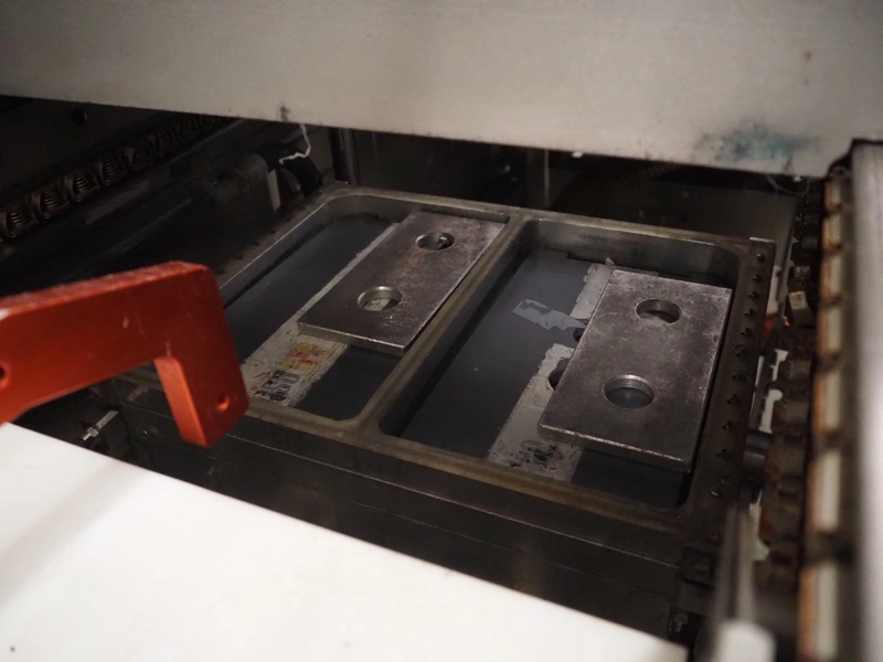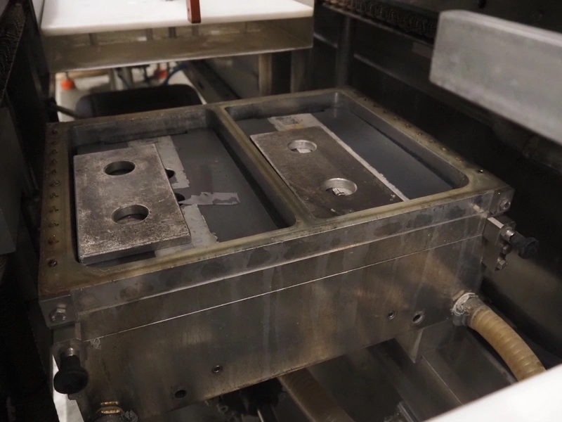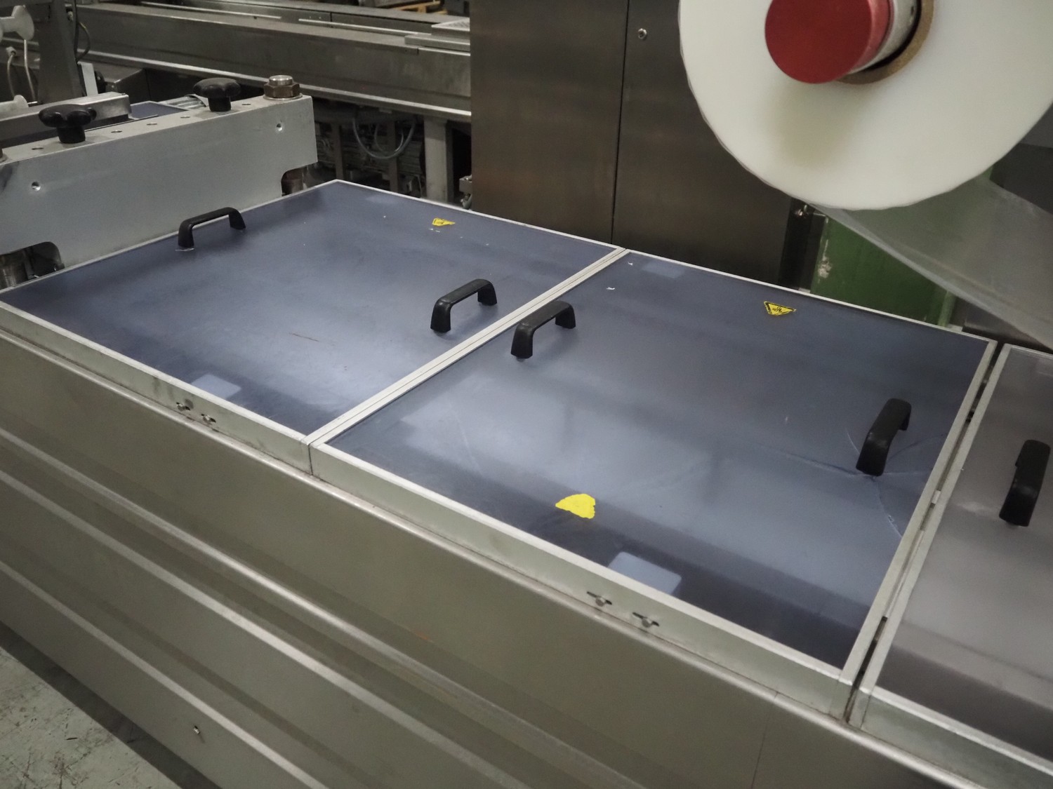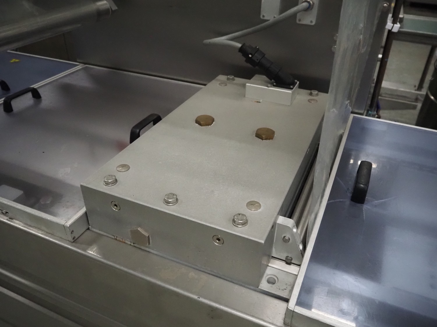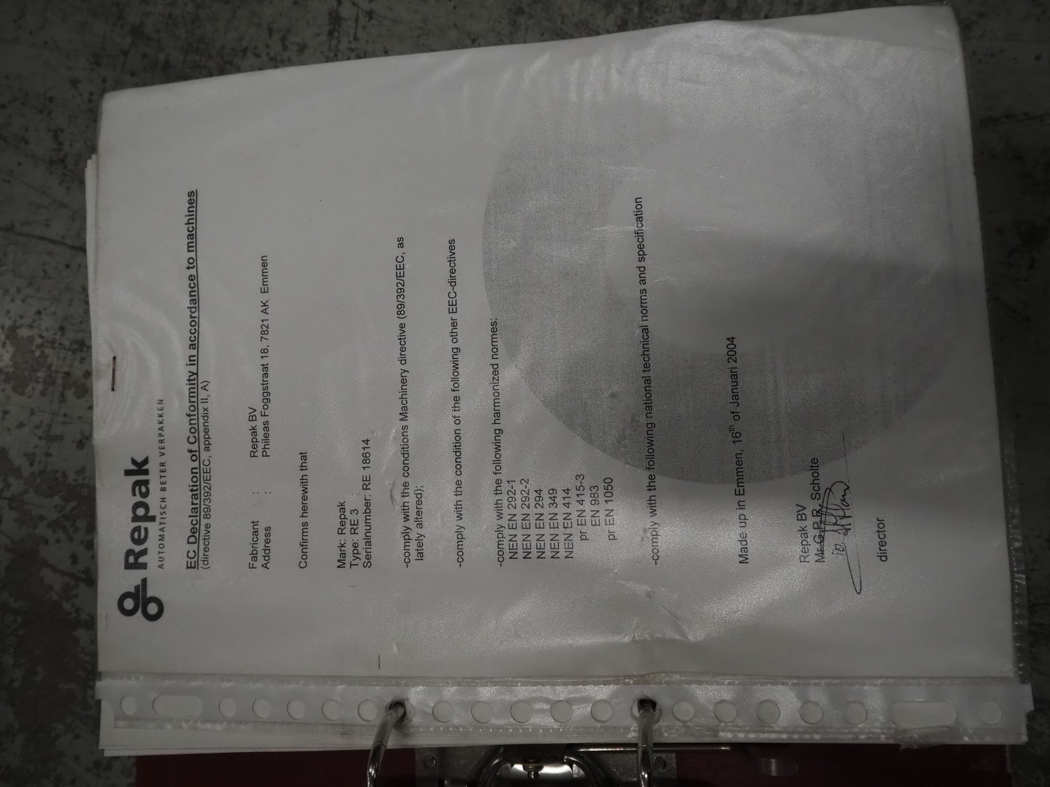 Repak thermoformer, type: RE3, machine number: 18614, year of construction: 2004, 220/380 V, 3 Ph, 50 Hz, 34 A, 15 kW, film width: 420 mm, dye: (2x) 290 mm x 180 mm, plastic outfeed belt, belt width: 380 mm, Busch vacuum pump, type vacuum pump: CB 02350 B, number: 04002605, year of construction: 2004, capacity: 250 m³/h, total dimensions: 7800 mm x 1020 mm x 2100 mm. Including suction device, dimensions: Ø 410 mm x 1110 mm.
