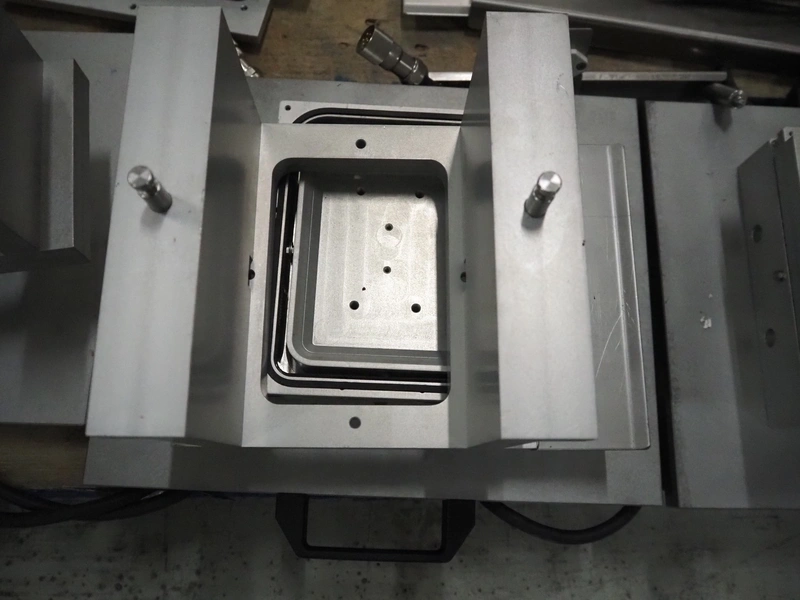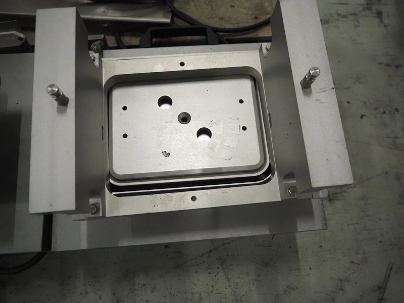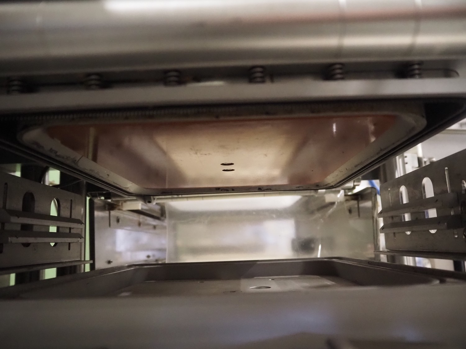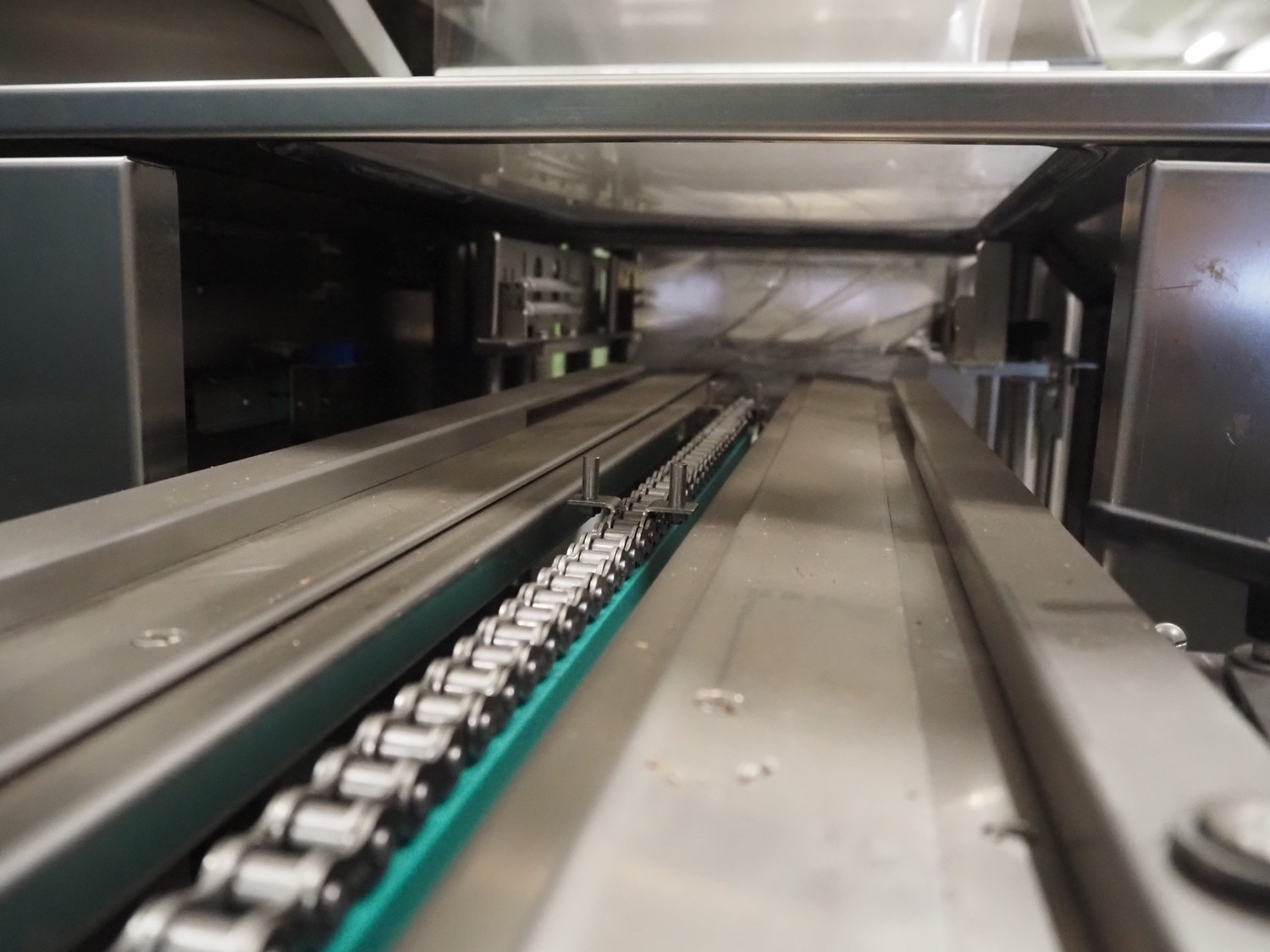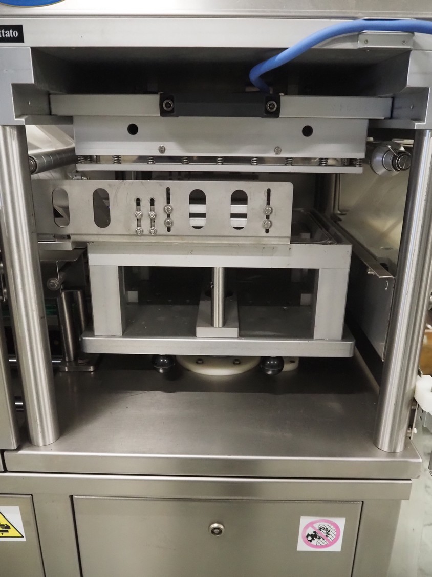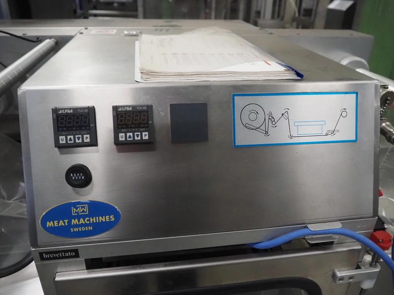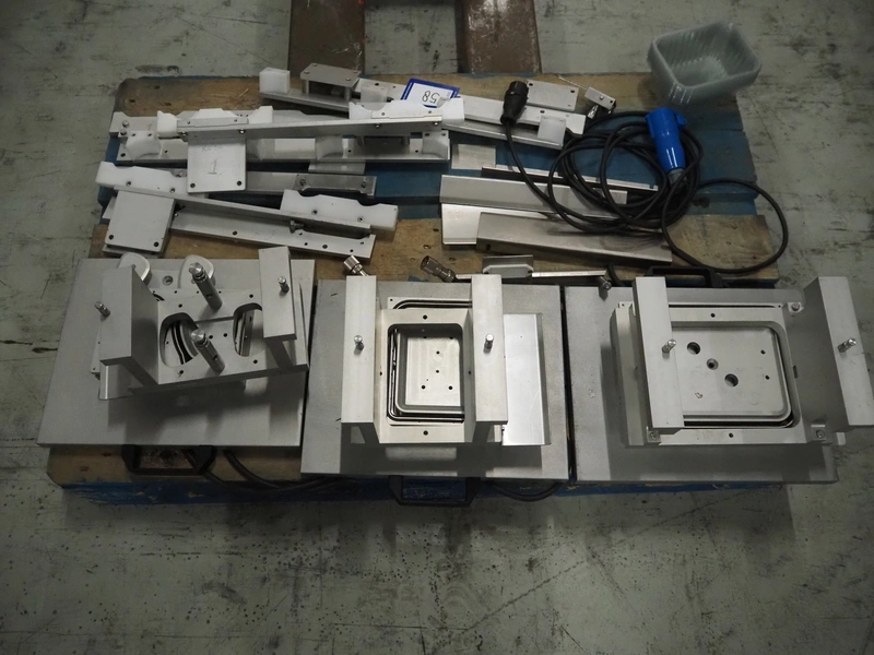 Ilpra traysealer, model: 1401 N, serie: Food Pack, serial number: FP 5591, year of construction: 2009, 400 V, infeed chain conveyor, distance between dividers: 320 mm, film width: 310 mm, dimensions dye: 300 mm x 240 mm, plastic outfeed belt, belt width: 260 mm, total dimensions: 4760 mm x 870 mm x 1650 mm. Including pallet with parts and dyes, dimensions dye: (1x) 210 mm x 160 mm, (1x) 155 mm x 110 mm, (2x) 60 mm x 80 mm.
