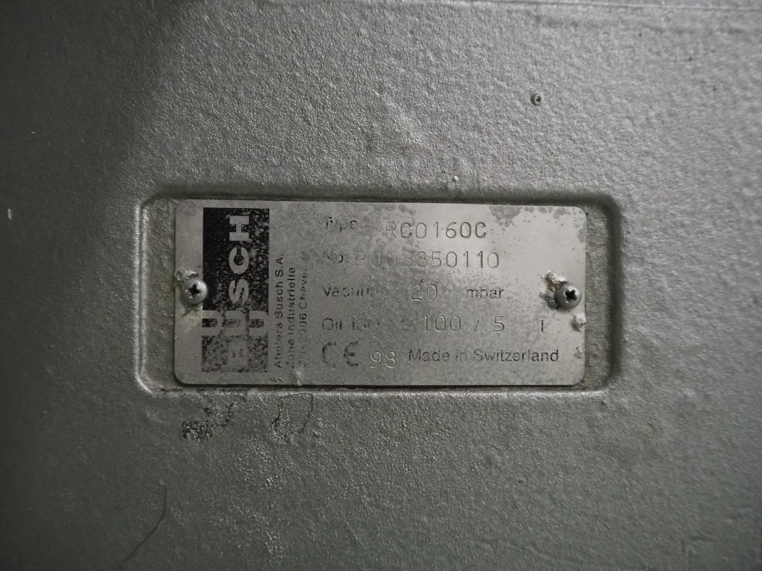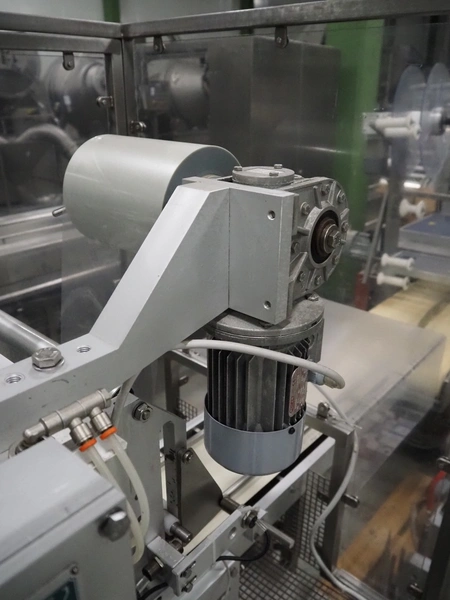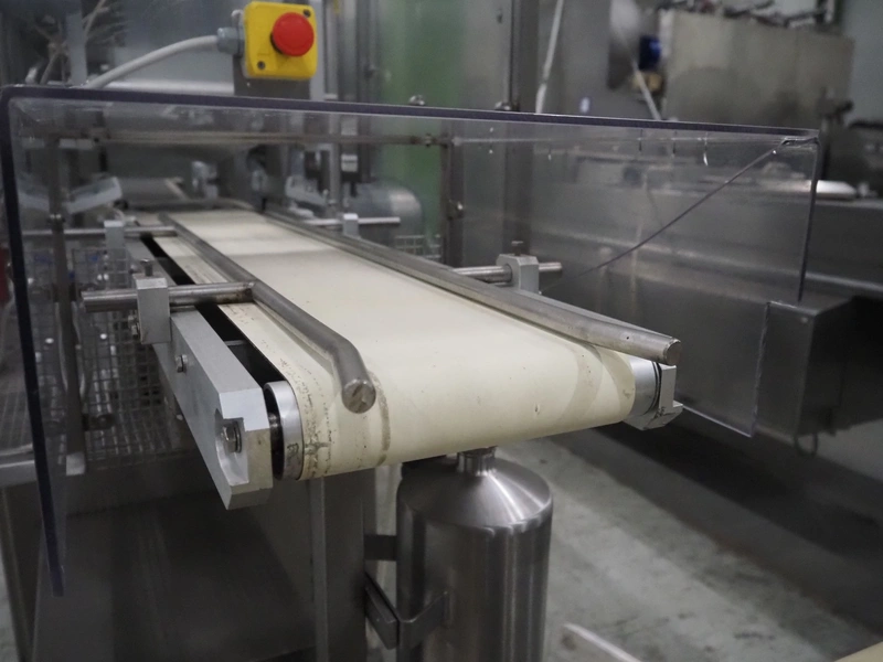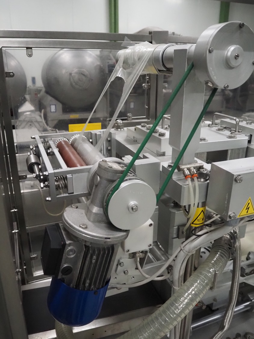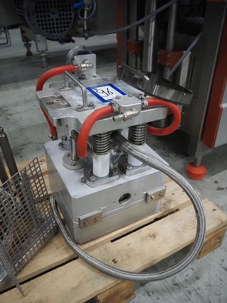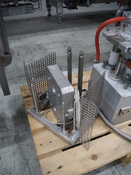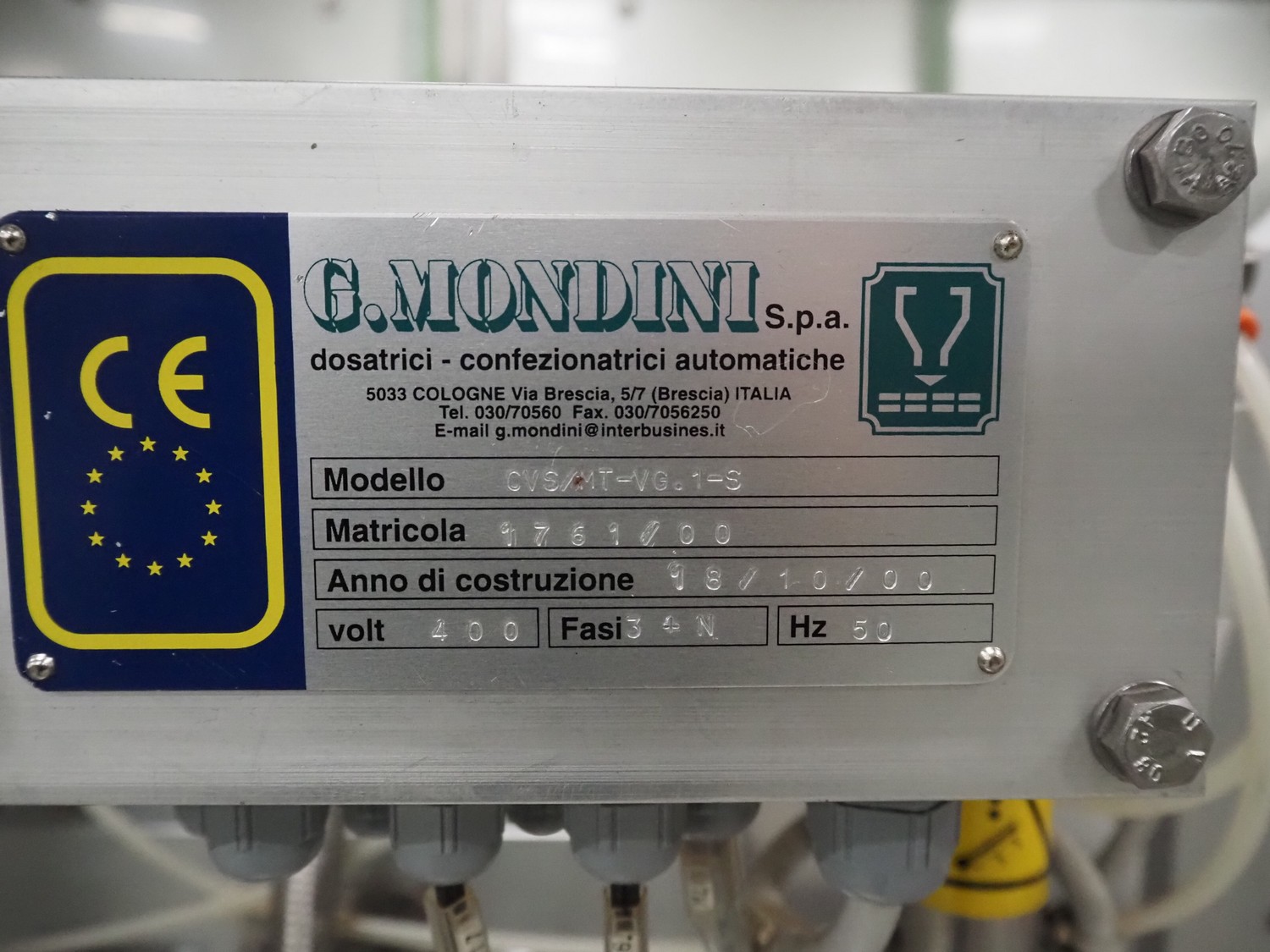 G. Mondini S.p.a. traysealer, model: CVS/MT-VG.1-S, serial number: 1761/00, year of construction: 18/10/00, 400 V, 3 Ph, 50 Hz, plastic infeed belt, belt width: 200, dimensions dye: 240 mm x 170 mm, total dimensions: 2250 mm x 950 mm x 2250 mm. With outfeed belt, plastic belt, belt width: 190 mm, total dimensions: 1500 mm x 320 mm x 950 mm. Including Busch vacuum pump, type: RC01600 and pallet with parts.