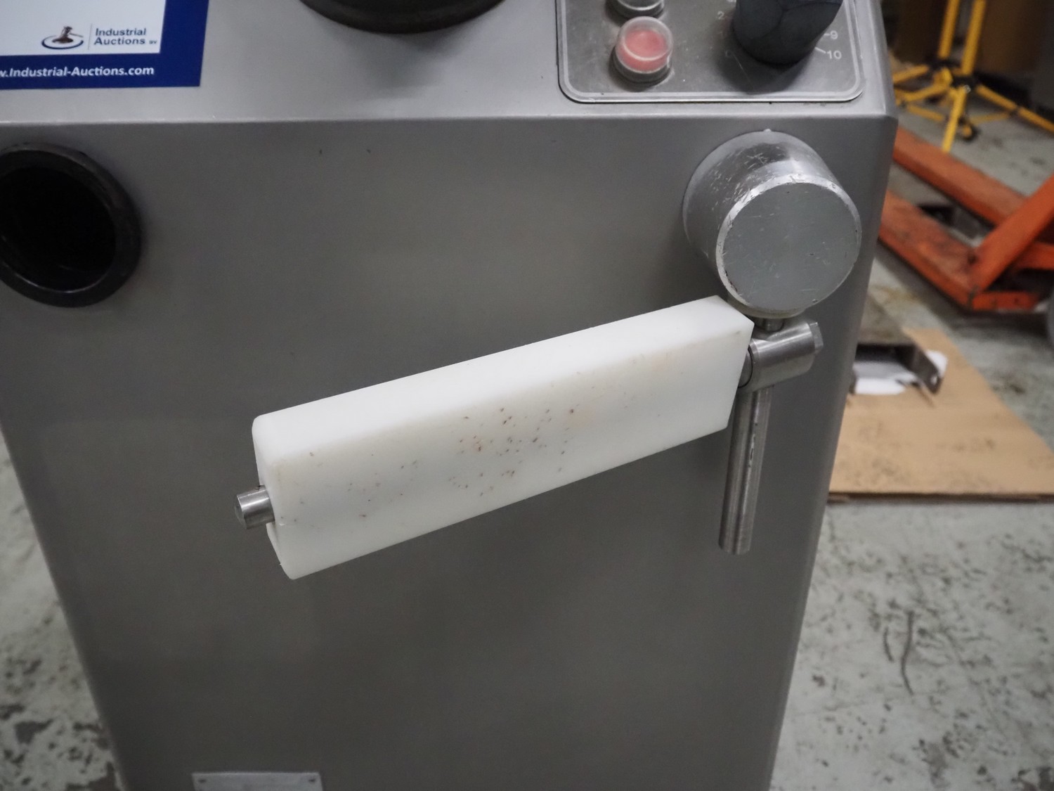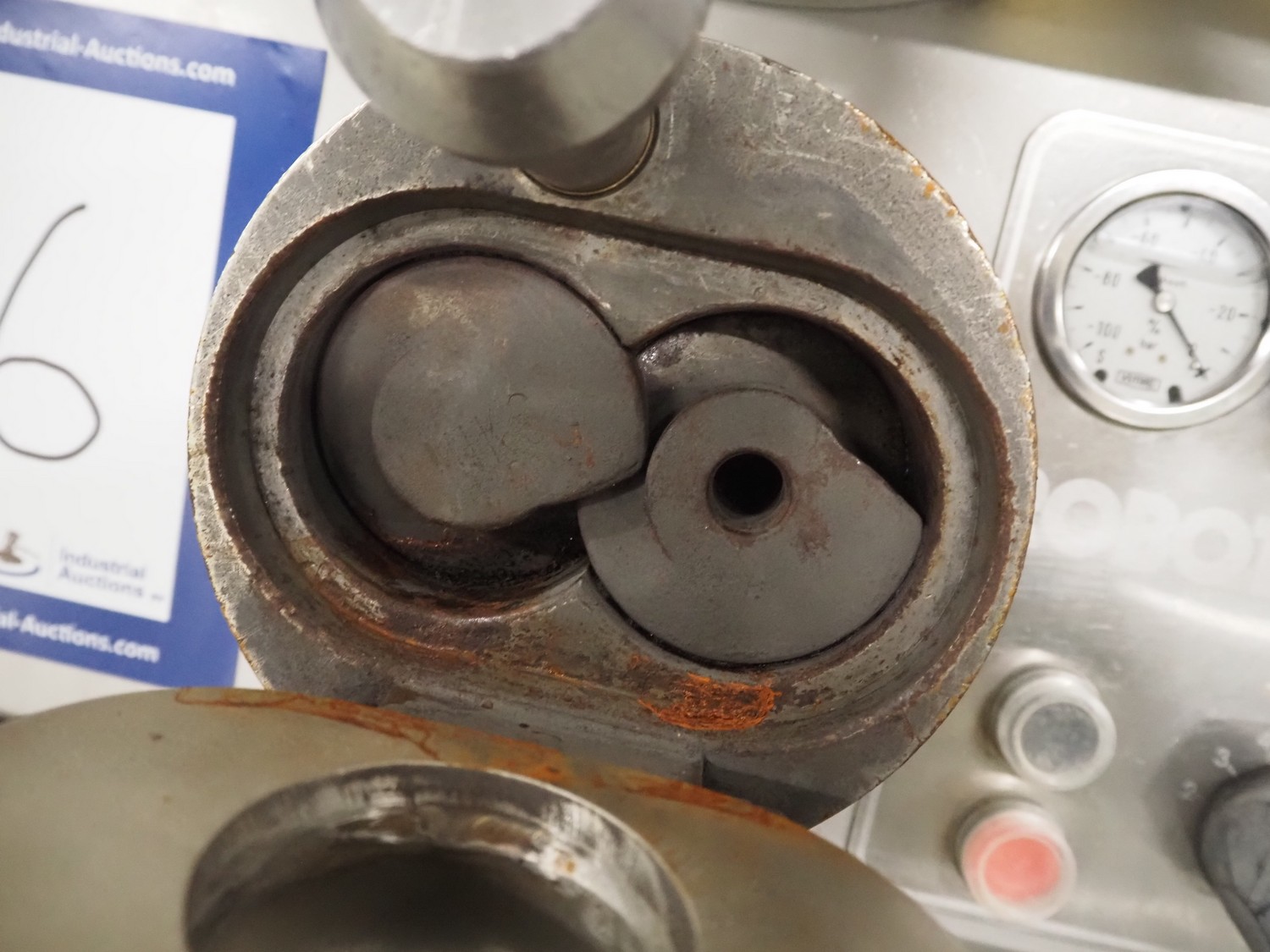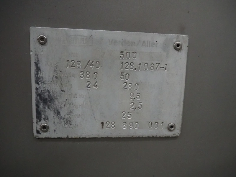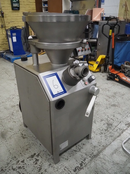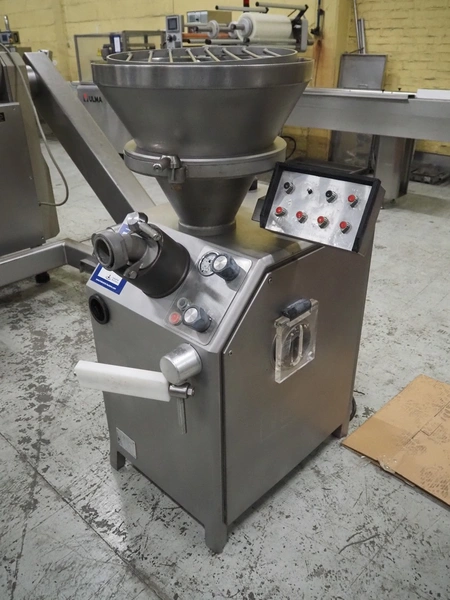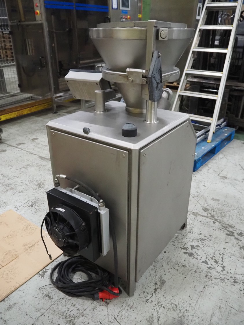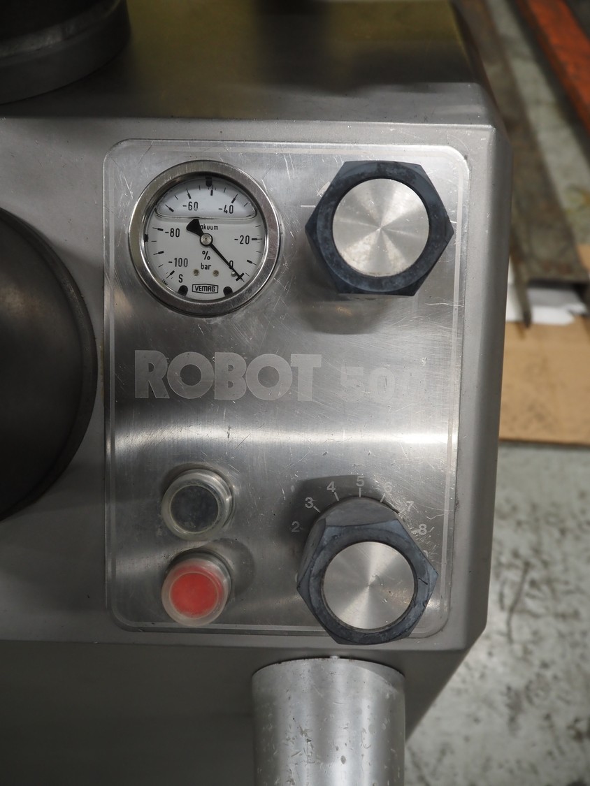 Vemag vacuum filling machine, model: Robot 500, type: 128/40, number: 128.1087-1, 380/280 V, 50 Hz, 25 A, Rietschle vacuum pump, type: VVL I5 (01), capacity: 15 m³ per hour, dimensions: 580 mm x 1020 mm x 1320 mm.