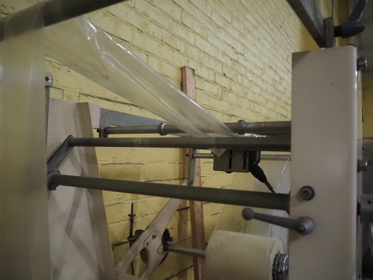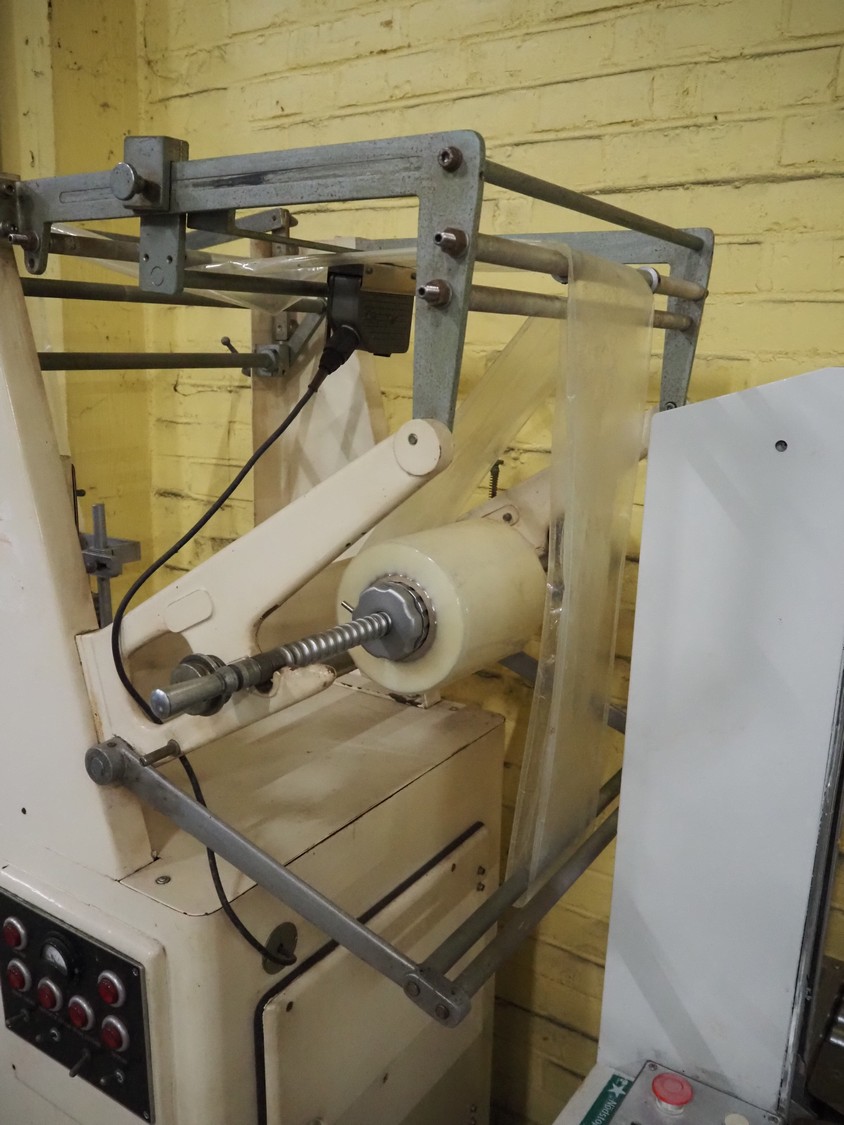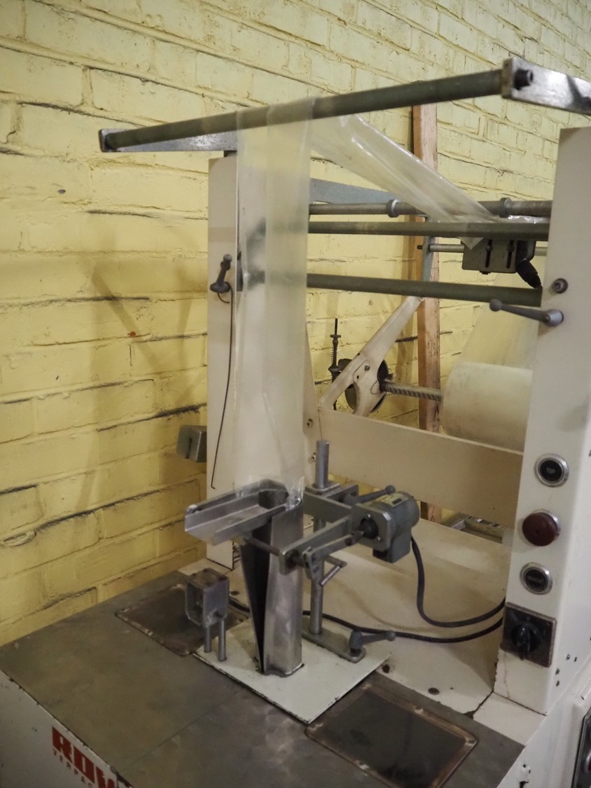 Rovema vertical bag form-, fill-, and seal machine, type: KS, machine number: 1372 19/6, year of construction: 1967, film width: 185, dimensions filling pipe: 60 mm x 30 mm, seal width: 175 mm, total dimensions: 1250 mm x 650 mm x 1850 mm.