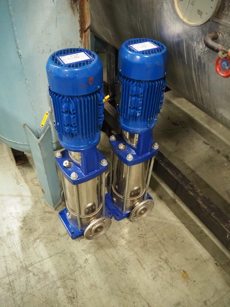 - 2 Lowara circulation pumps, type: 10SV08F030T/D, capacity: 5 - 14 m³ per hour, 3.22 kW, dimensions: 300 mm x 250 mm x 900 mm.