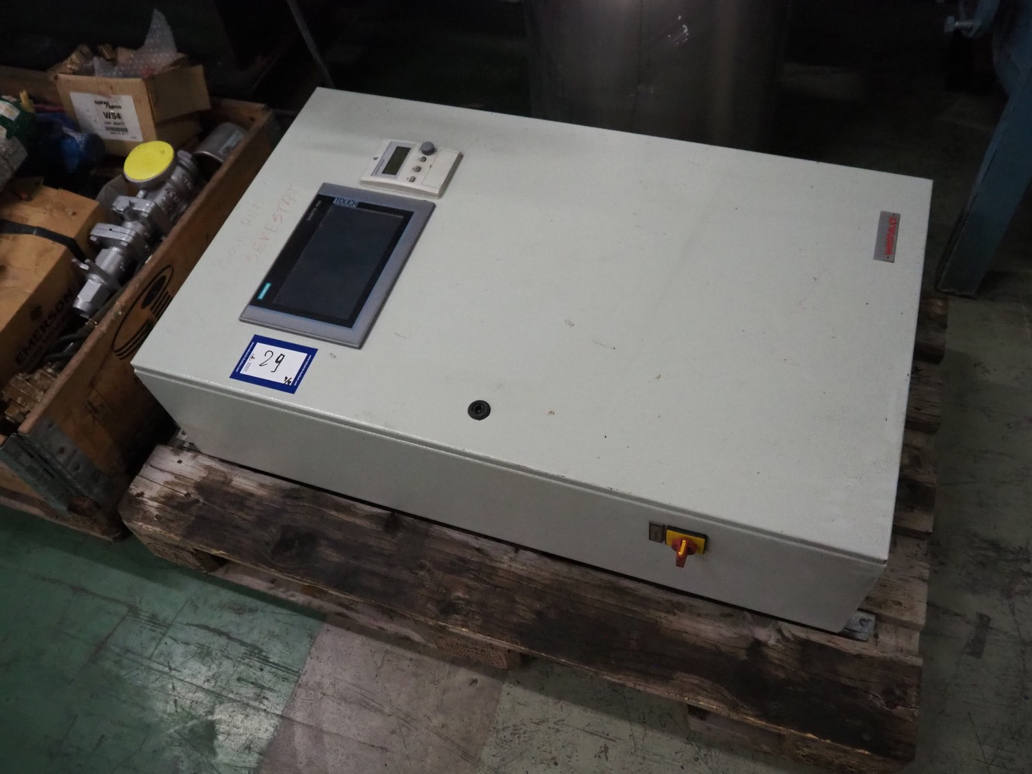 - VEÅ AB storage tank with switch cabinet and pallet with parts, type: MATARVATTENTANK 2.5 m³ MFD AVGASARE, year of construction: 1988, design temperature: 150 °C, design temperature: 4 bar, dimensions: 2800 mm x 1500 mm x 2000 mm,