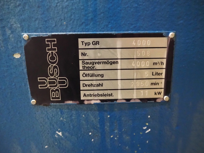 Busch vacuum pump, type: 4000, number: 508, capacity: 4000 m³/h, dimensions: 1470 mm x 1100 mm x 1820 mm.