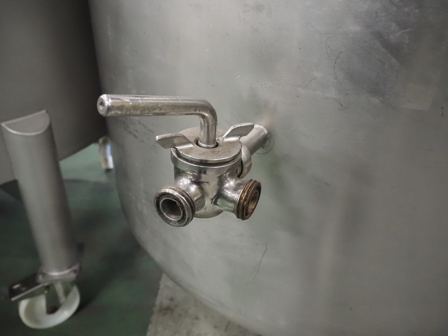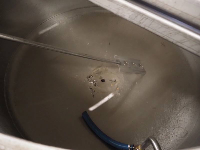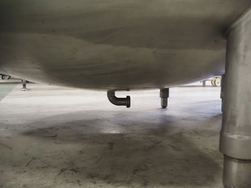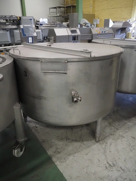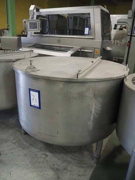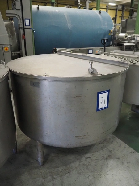 S/s brine tank, inside dimensions: Ø 1800 mm x 850 mm, total dimensions: Ø 1900 mm x 2100 mm.