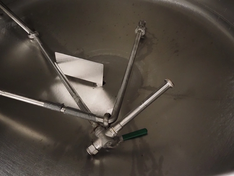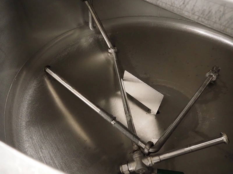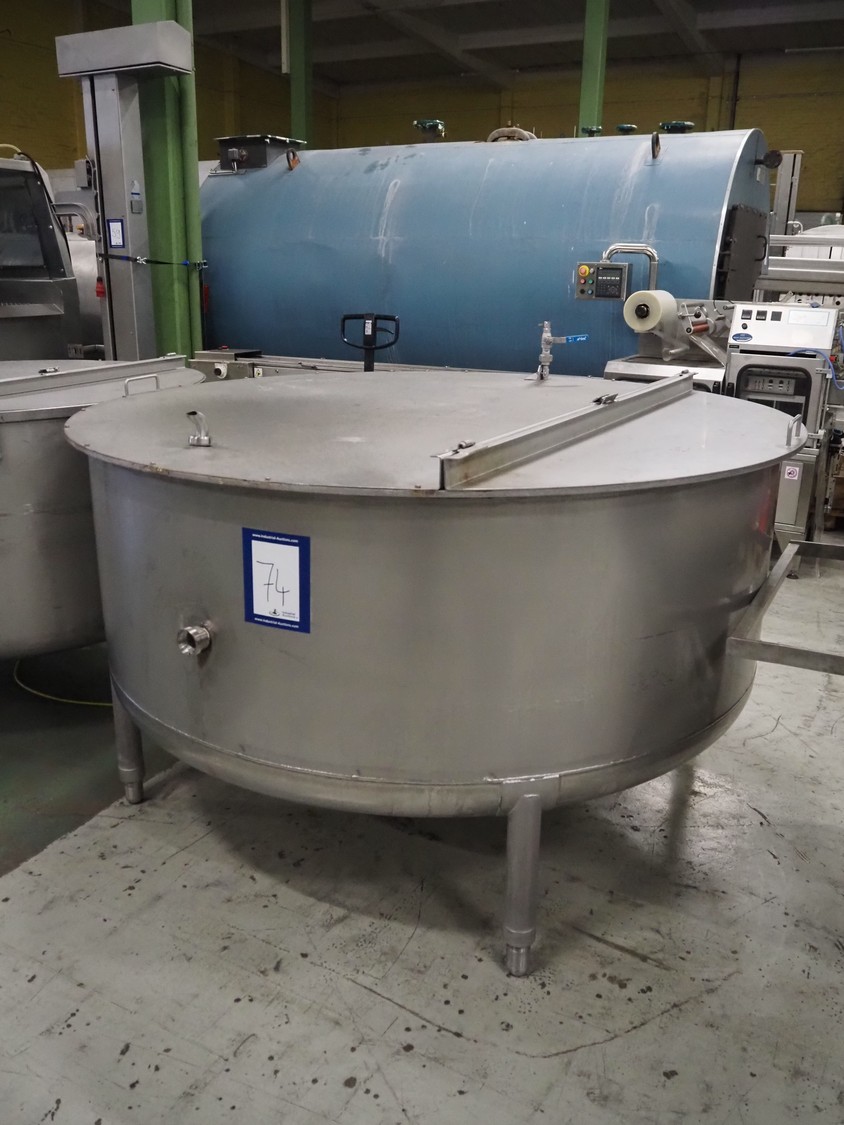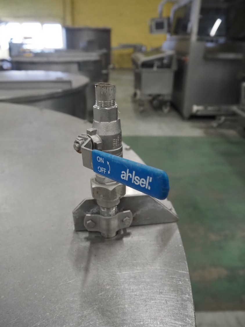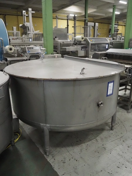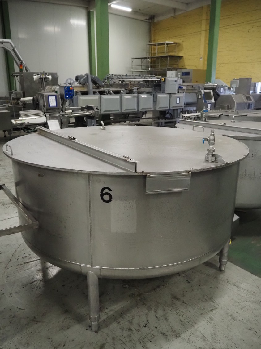 S/s brine tank, inside dimensions: Ø 1800 mm x 850 mm, total dimensions: Ø 1900 mm x 2100 mm.