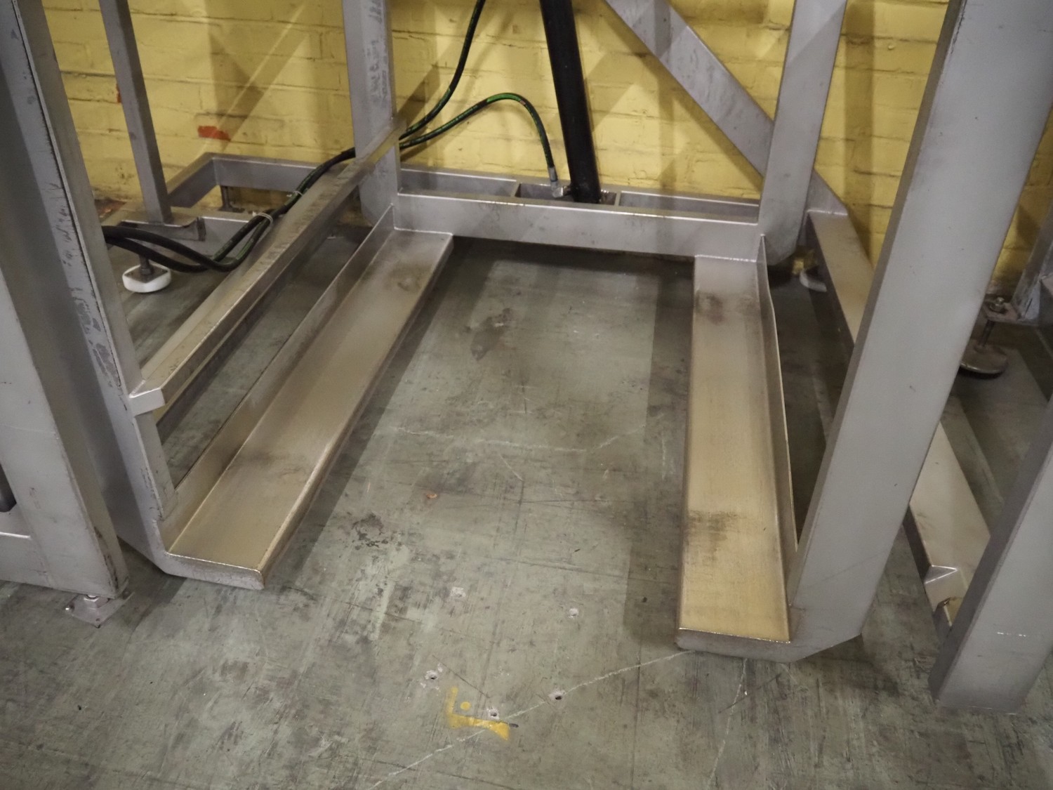 S/s tilting device, clearance: 1050 mm x 900 mm x 900 mm, tilting height: 1220 mm, total dimensions: 1800 mm x 1700 mm x 1300 mm.