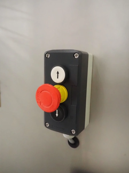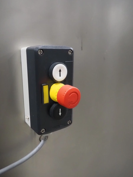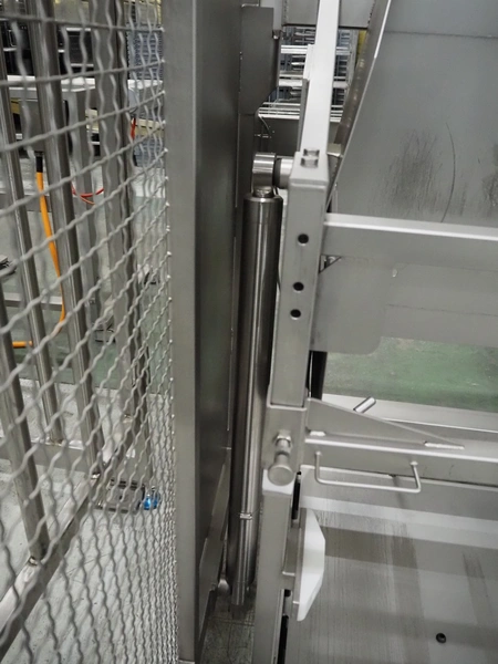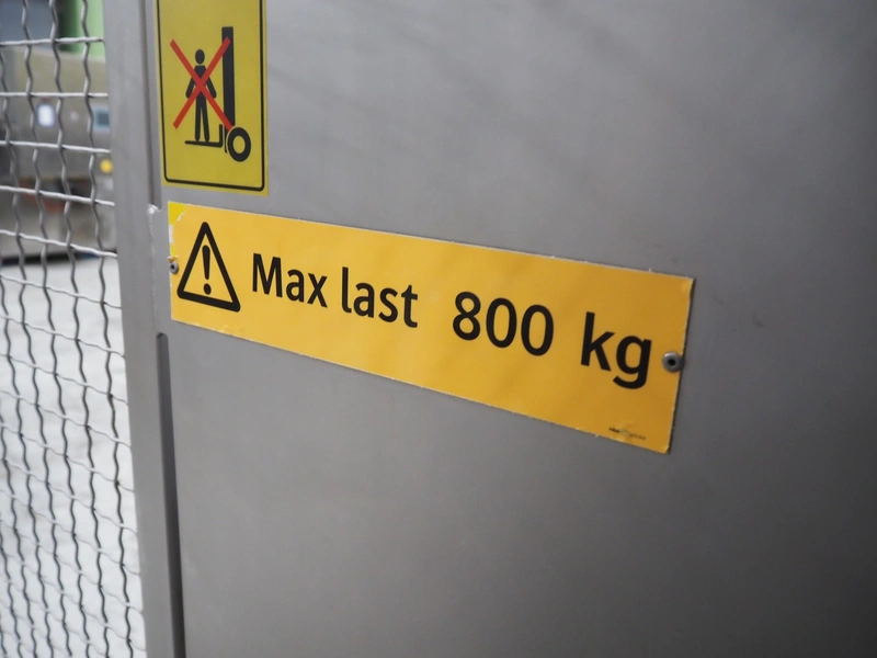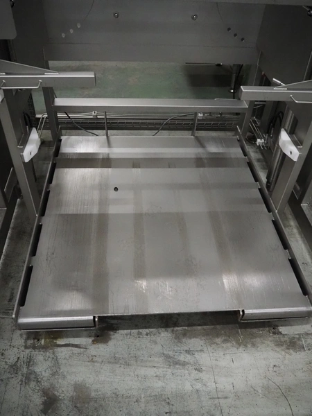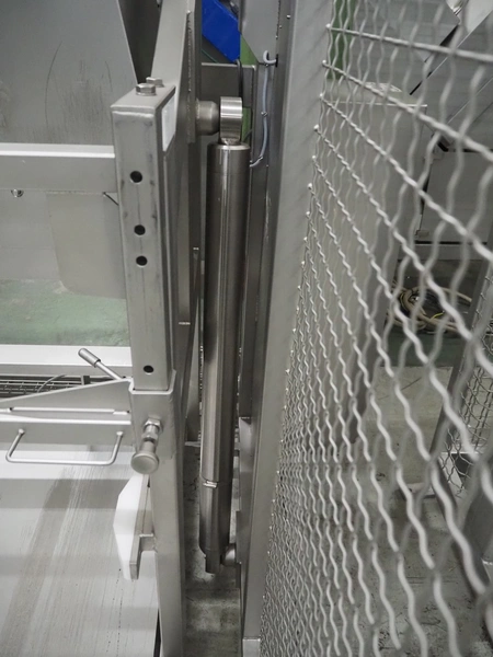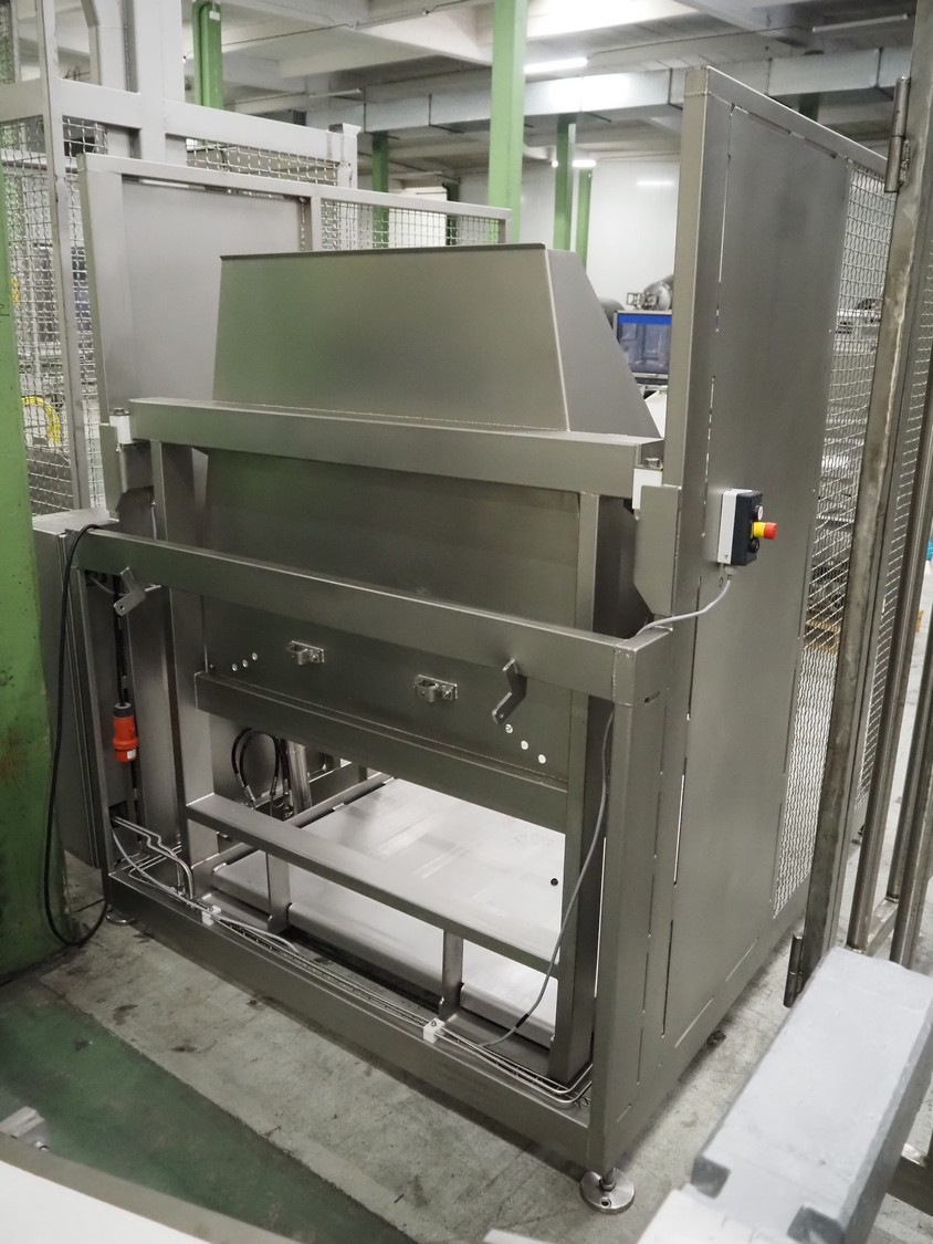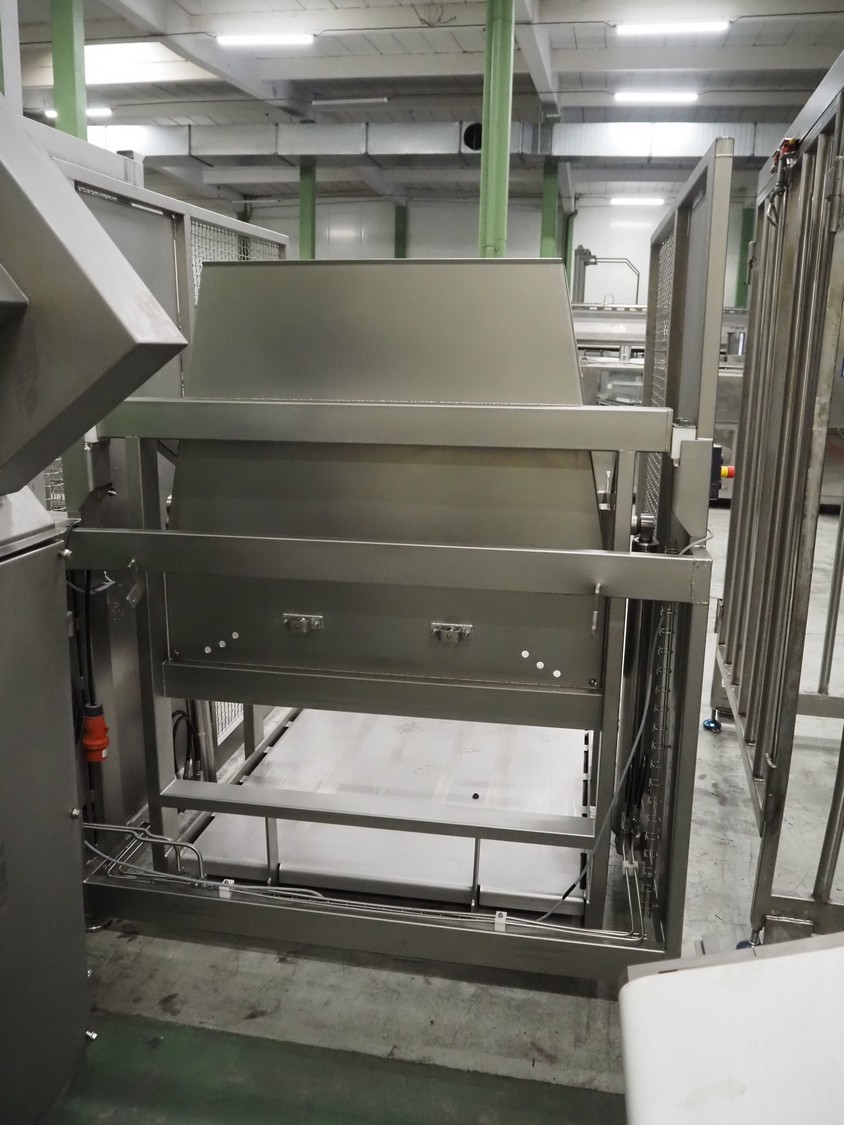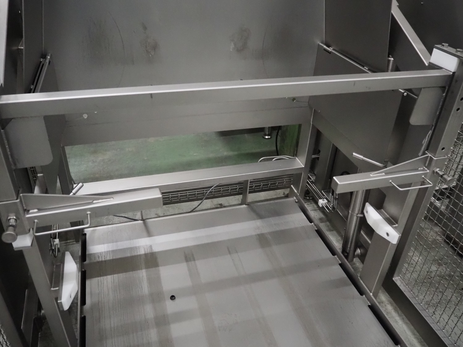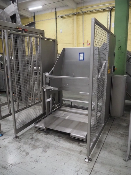 Nimo KG tilting device for tubs, type: SK 800 HA2, serial number: 12322, year of construction: 2016, 400 V, 3 Ph, 50 Hz, 4.59 A, maximum capacity: 800 kg, clearance: 1250 mm x 1040 mm x 900 mm, total dimensions: 2000 mm x 2000 mm x 2050 mm.