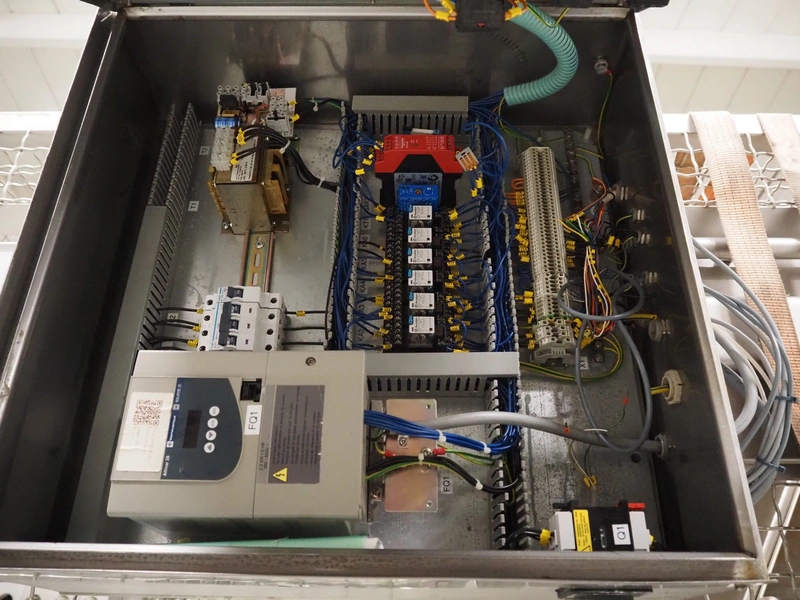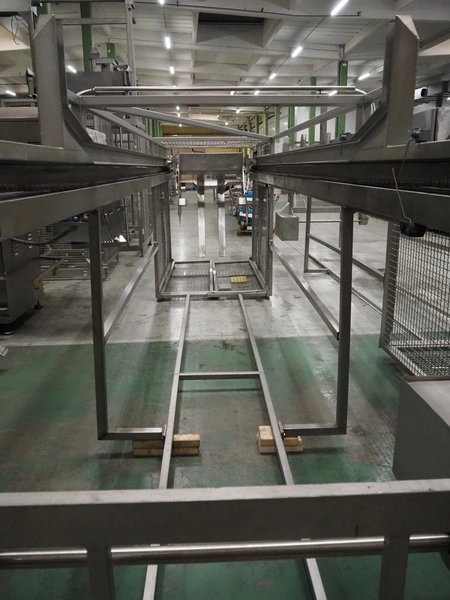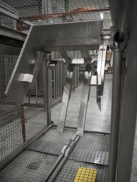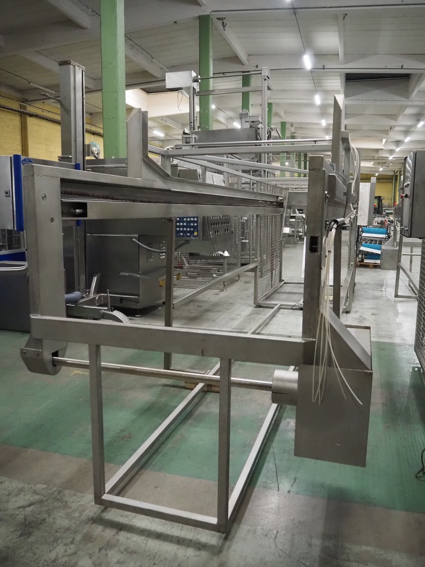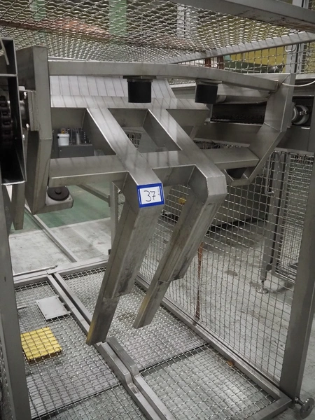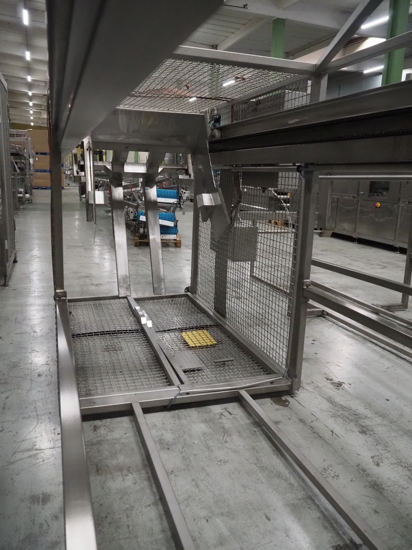 Nimo KG lifter for pallet boxes, type: SK 800 MK-L, number: 9724, year of construction: 2001, maximum loading capacity: 500 kg, lifting height: 6000 mm, total dimensions: 1760 mm x 1850 mm x 7250 mm.