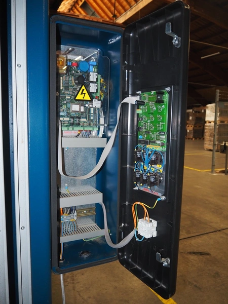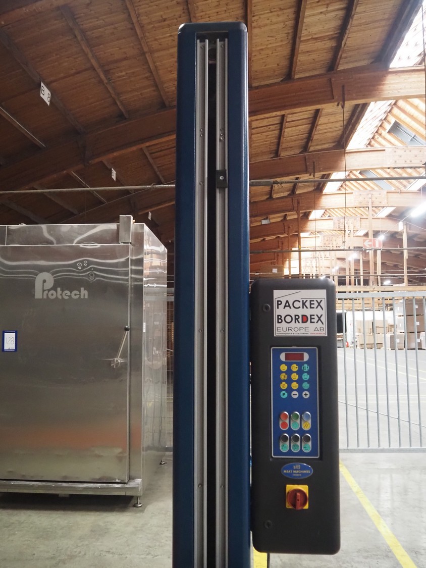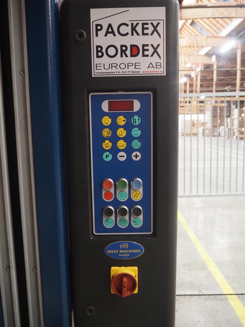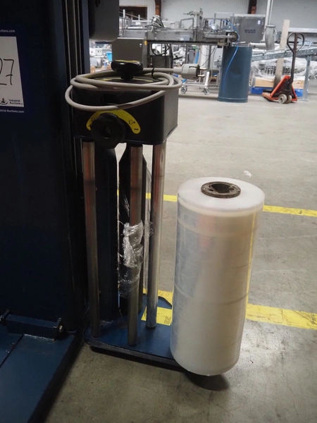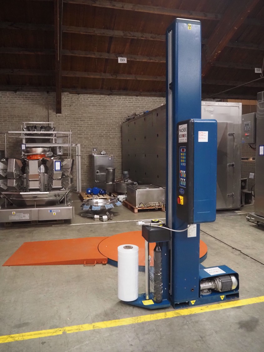 Robopac pallet wrapper, model: ROTOPLAT 106/FRD, serial number: KN/053506, year of construction: 11/2002, machine weight: 450 kg, 230 V, 50 Hz, 5 A, 1.4 kW, turning platform: Ø 1640 mm, total dimensions: 2900 mm x 2480 mm x 2680 mm.