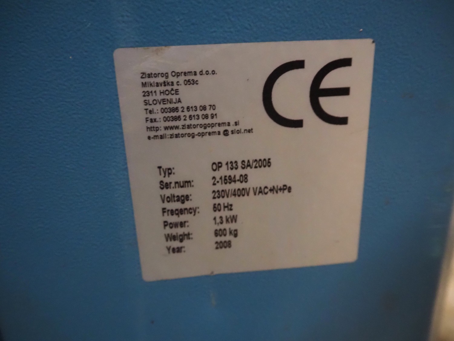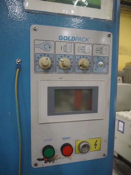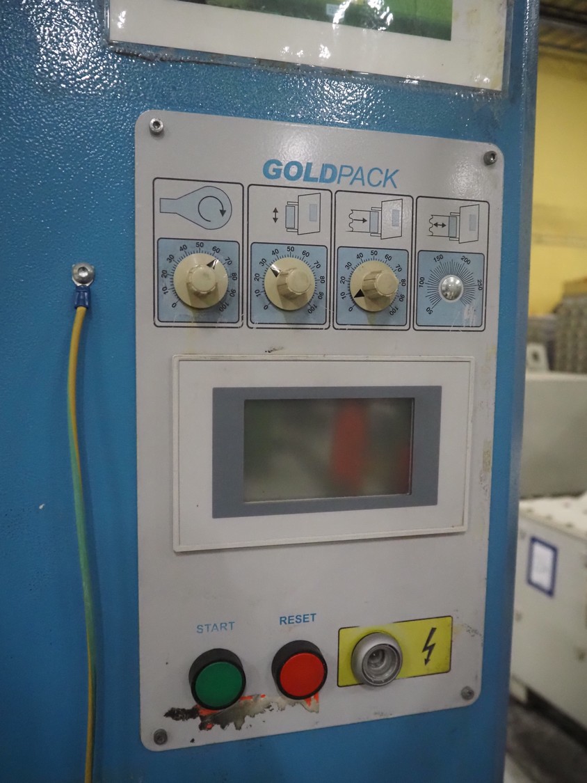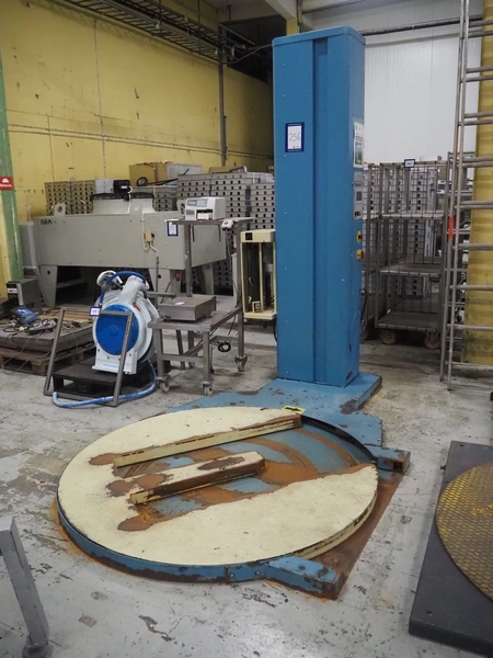 Goldpack Packaging Systems pallet wrapper, type: OP 133 SA/2005, serial number: 2-1594-08, year of construction: 2008, 230 V, 50 Hz, 1.3 kW, weight: 600 kg, diameter platform: 1650 mm, total dimensions: 3000 mm x 1700 mm x 2500 mm.