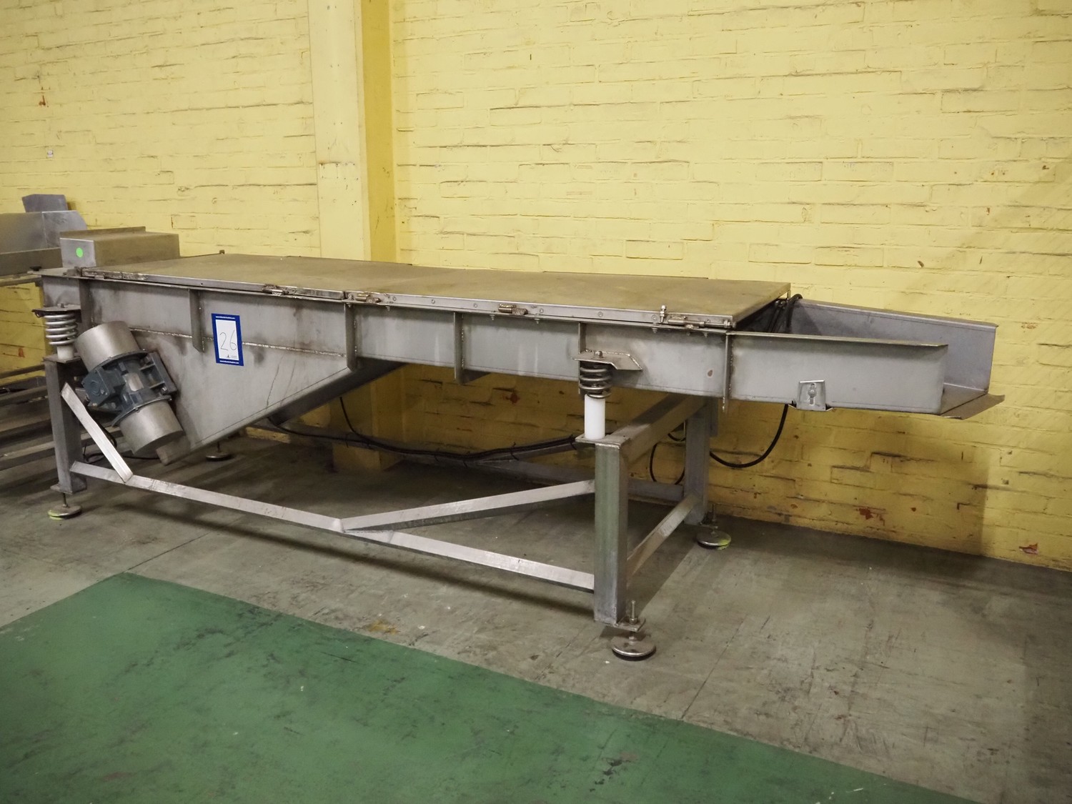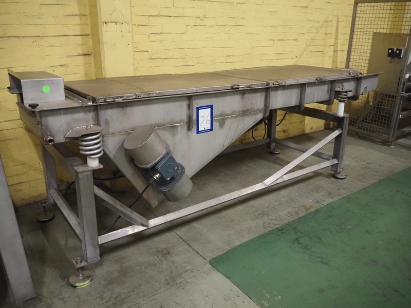 S/s vibrating gutter, gutter width: 750 mm, total dimensions: 3750 mm x 1300 mm x 1240 mm.