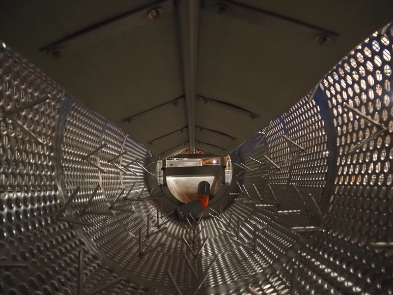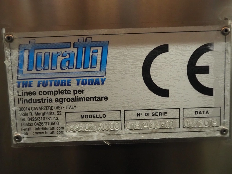 Turatti grape destammer, model: 1668.02.60.00, serial number: 018/422.01, year of construction: 05/2019, diameter holes: 20 mm, length drum: 2850 mm, total dimensions: 4100 mm x 1850 mm x 2400 mm.