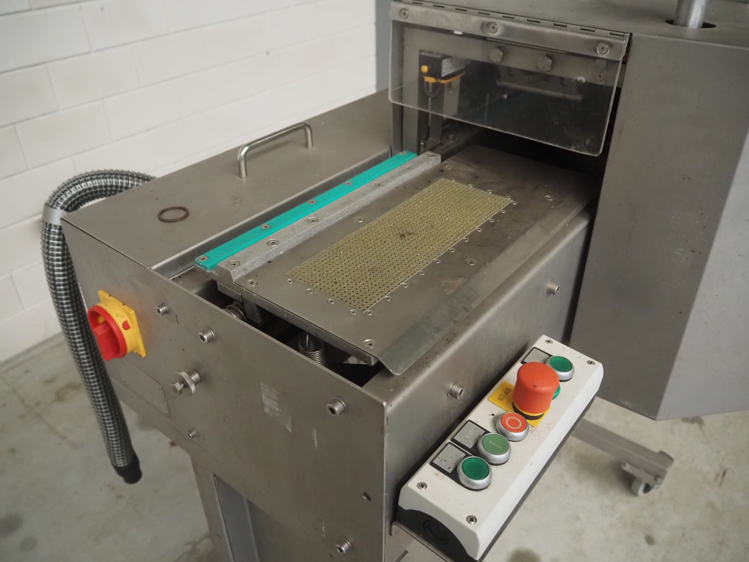 AGK Kronawitter GmbH mobile fish filleting machine, clearance: 200 mm x 50 mm, total dimensions: 1850 mm x 780 mm x 1400 mm.