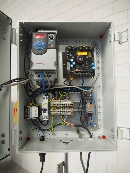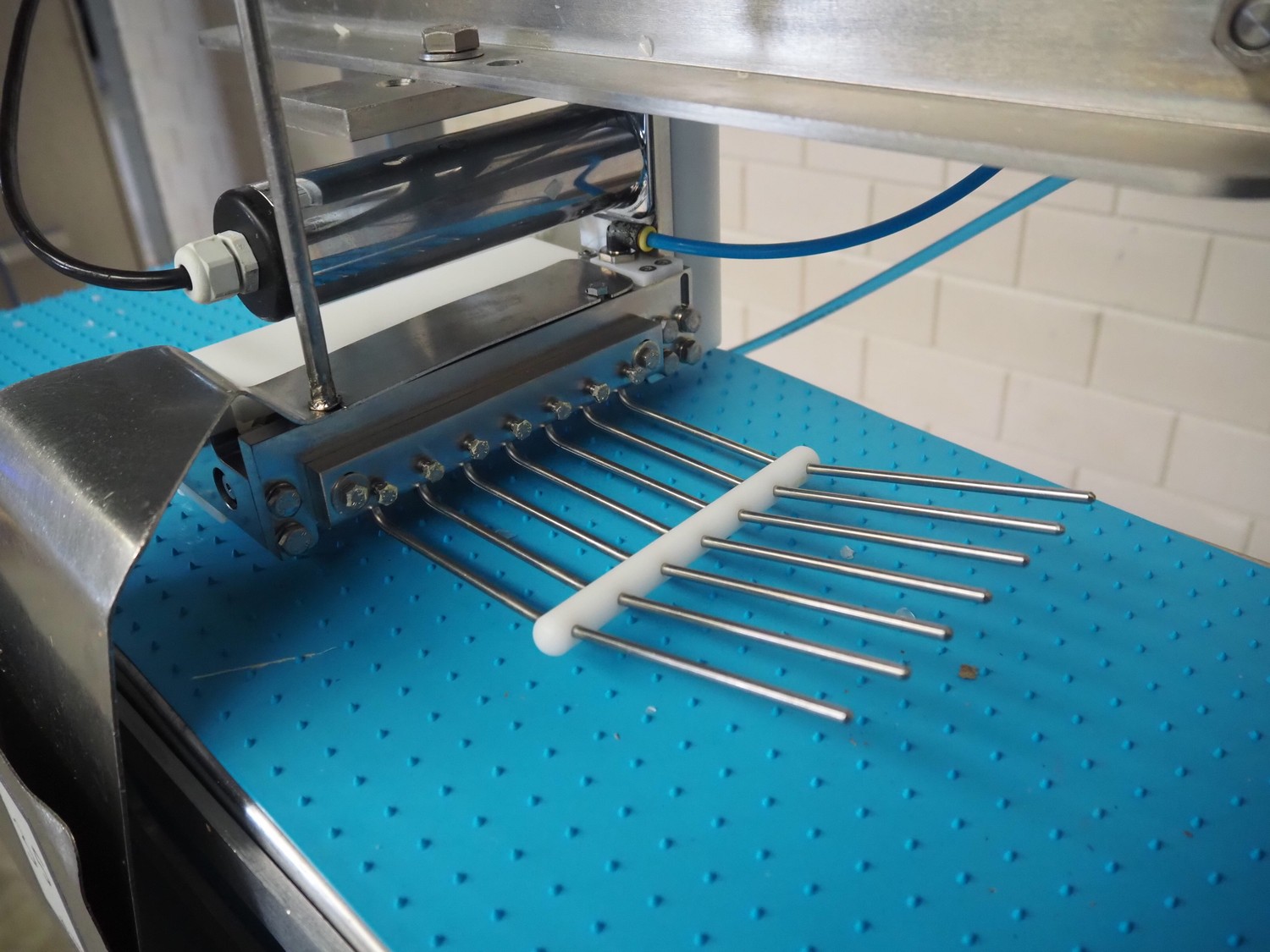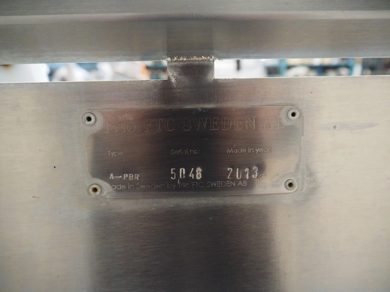 Trio FTC Sweden AB single lane pinbone remover, type: A-PBR, serial number: 5048, year of construction: 2013, plastic belt, belt width: 310 mm, total dimensions: 1250 mm x 700 mm x 1600 mm.
