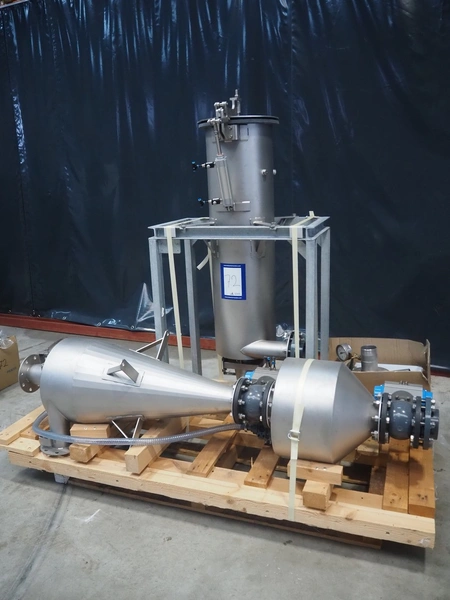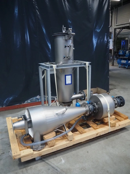 Marel cyclone, dimensions: (1x) Ø 500 mm x 2200 mm, (1x) 900 mm x 500 mm x 1700 mm.