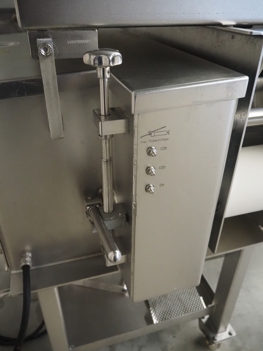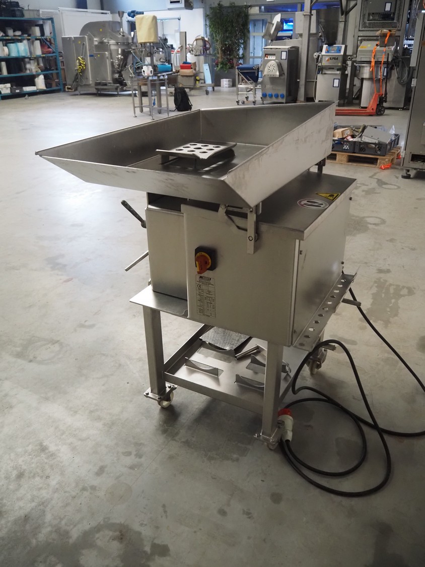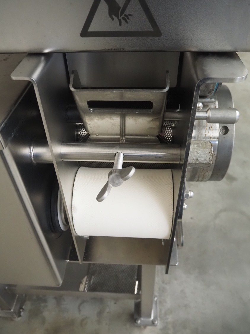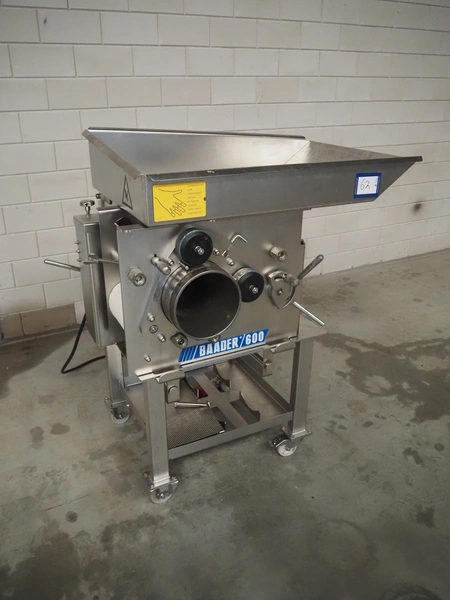Baader mobile separator, type: 600-501, serial number: 120002407/10, year of construction: 2017, 400 V, 3 Ph, 50 Hz, 4.0 A, 1.5 kW, drum diameter: 205 mm, perforations: 3 mm, total dimensions: 1030 mm x 900 mm x 1160 mm.