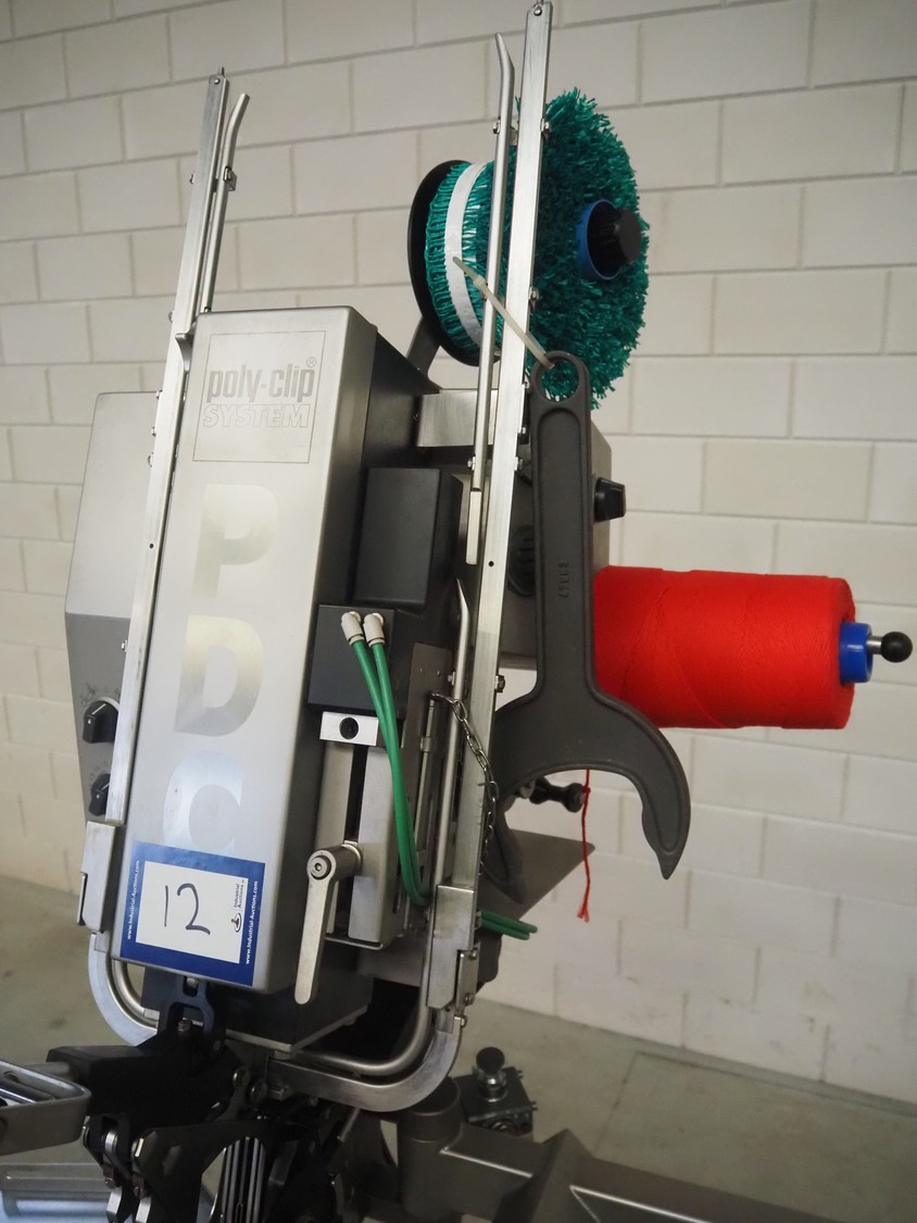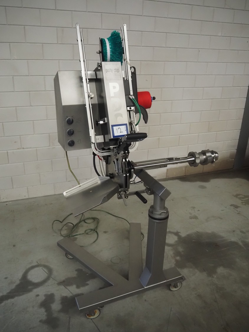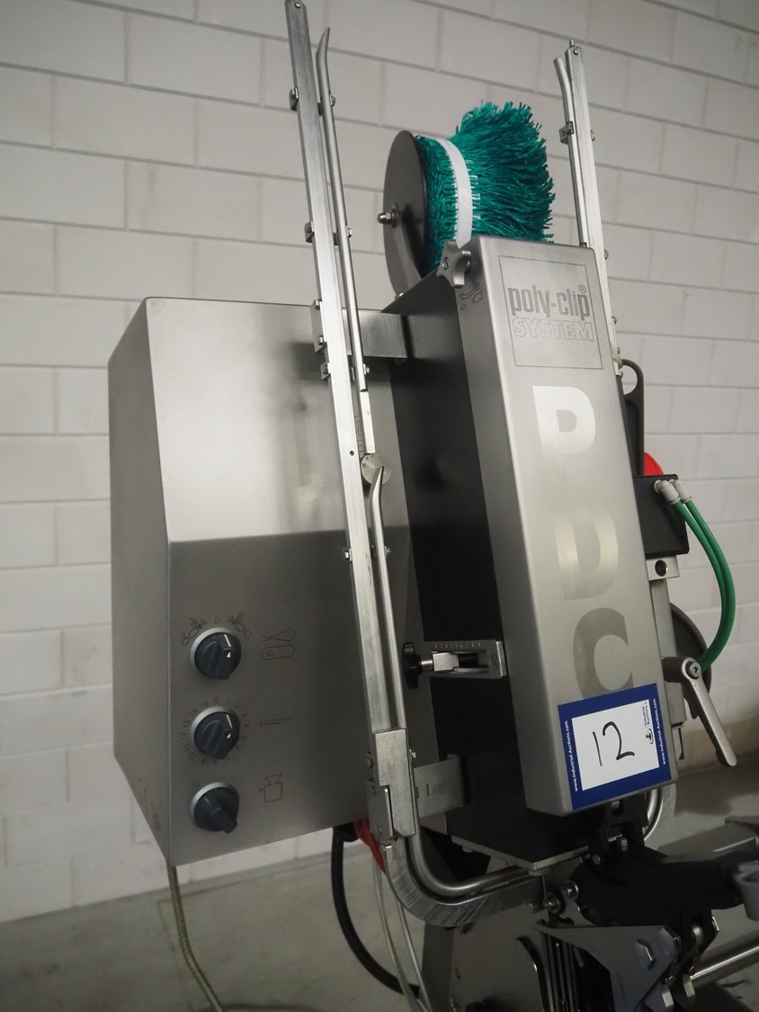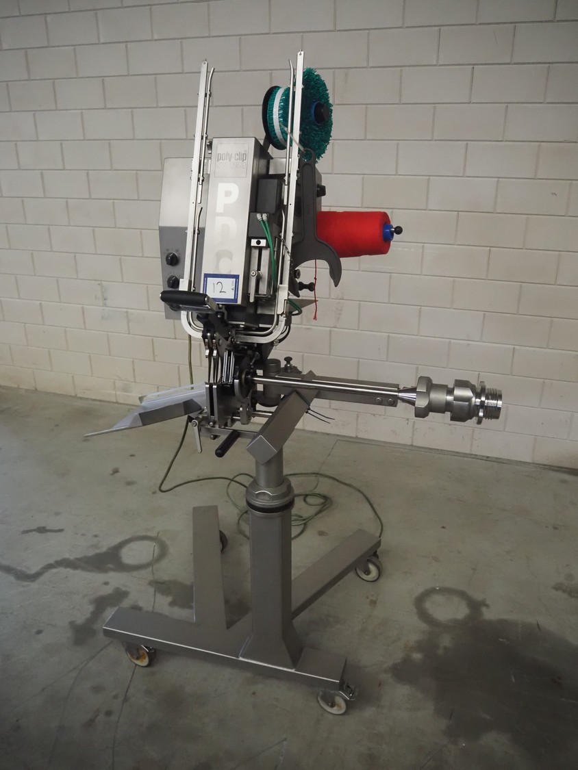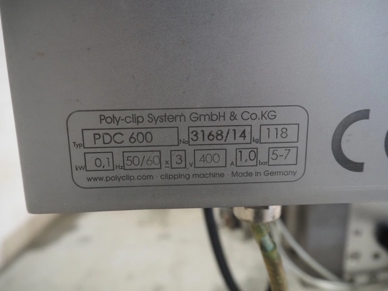 Poly-Clip Systems GmbH & Co.KG mobile double clipper, type: PDC 600, number: 3168/14, 400 V, 3 Ph, 50/60 Hz, 1.0 A, 0.1 kW, 5/7 bar, dimensions: 1100 mm x 750 mm x 1780 mm.